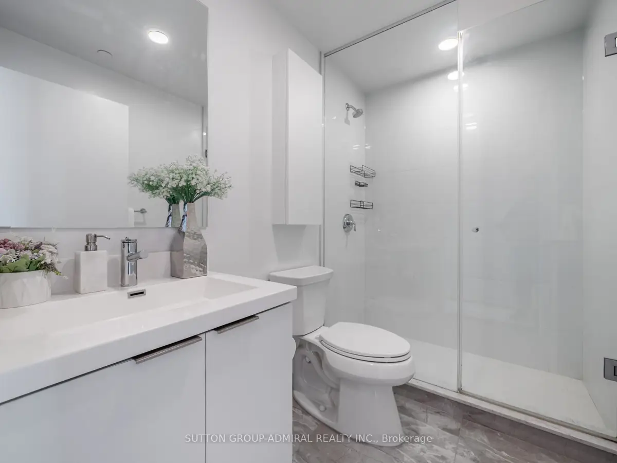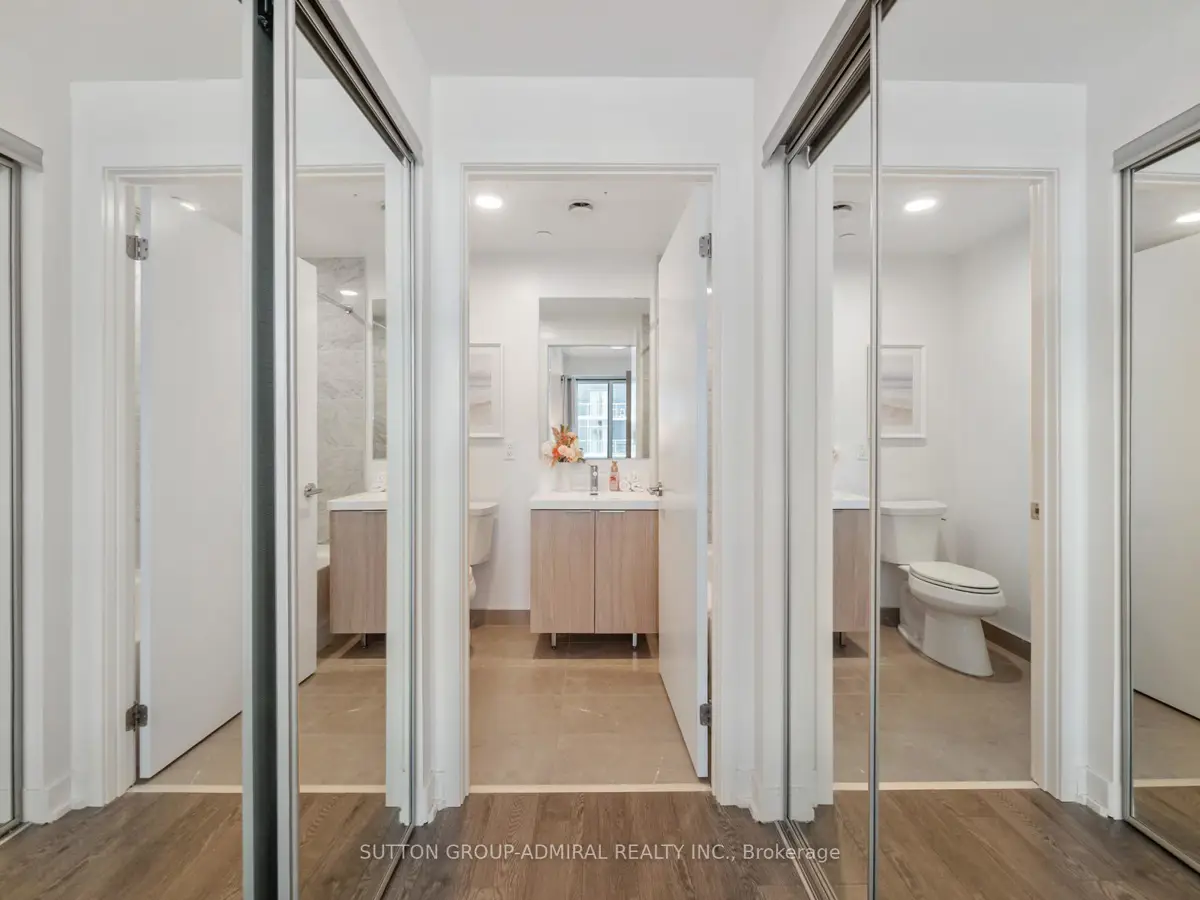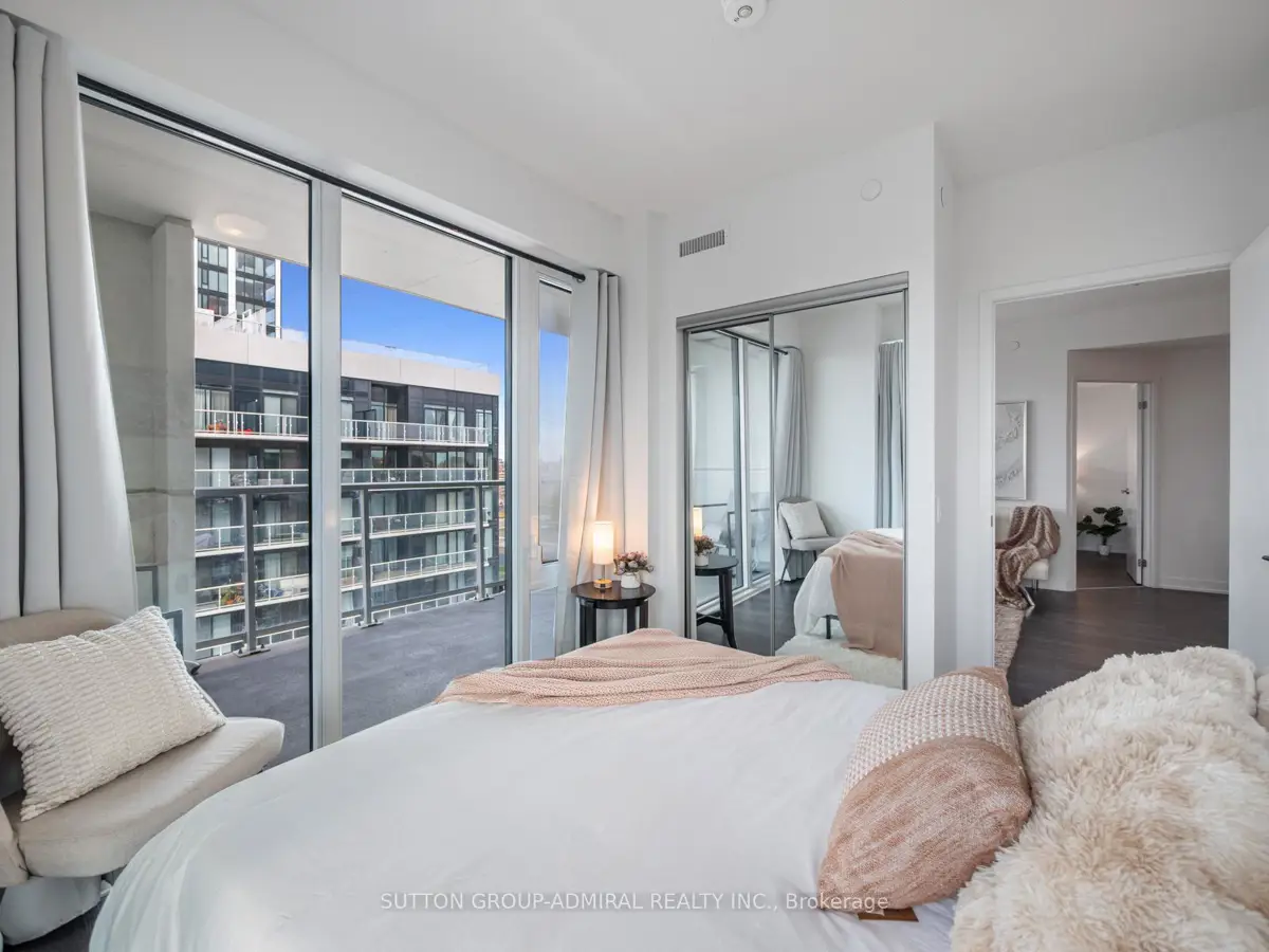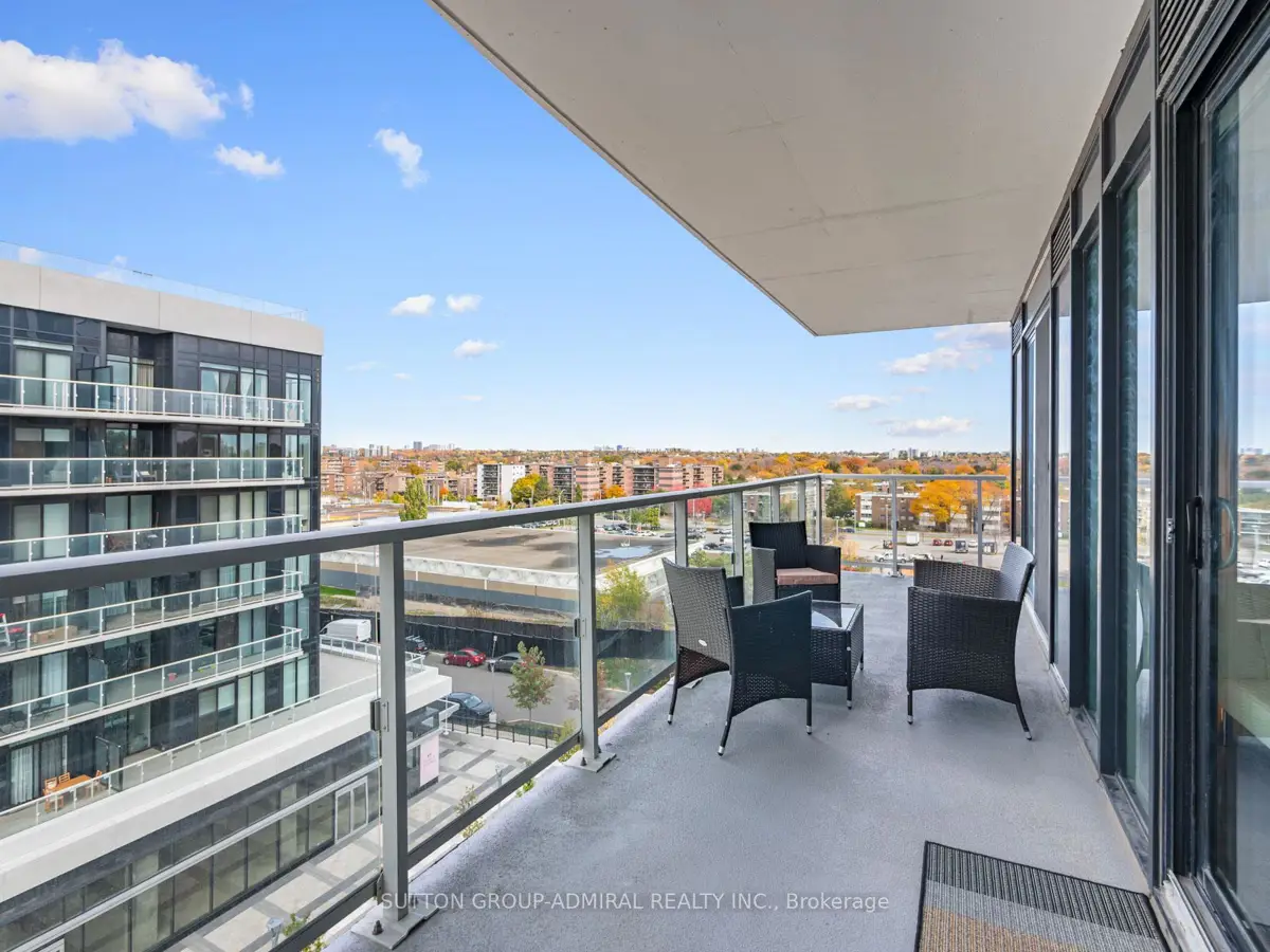 Welcome to Rodeo Drive Condos, located in the heart of the Shops at Don Mills-Toronto's premier open-air lifestyle destination. This corner unit offers a rare combination of modern elegance and convenience, featuring 2 bedrooms + den, 2 bathrooms, and two private balconies. The extra-large wraparound balcony spans the width of the suite, offering unobstructed panoramic city views, including the CN Tower and gorgeous sunsets. The second bedroom enjoys its own private balcony for a quiet retreat.Inside, this home is upgraded from the original builder finishes, showcasing Miele stainless steel appliances (built-in oven, cooktop, and fridge), marble countertops in both bathrooms, and laminate wood flooring throughout, including the bedrooms. The open-concept floor plan, floor-to-ceiling windows, and 9-foot ceilings create a bright, airy space ideal for entertaining or relaxing.Residents enjoy exceptional building amenities including a 24-hour concierge, fitness centre, outdoor pool, and beautifully designed social spaces. Free visitor parking and spacious resident parking spots add everyday convenience.The location is unbeatable-steps to Shops at Don Mills, with its mix of high-end restaurants, cafes, Metro grocery, LCBO, banks, boutiques, and free EV charging. This is one of midtown Toronto's most walkable neighbourhoods, offering an ideal blend of community feel and city energy. Just minutes to Highways 401, DVP, and 404, and with excellent TTC service nearby, commuting is easy. The Eglinton Crosstown LRT and subway connections at Fairview Mall and Lawrence East provide quick links across the city. A short 15-20-minute drive to downtown makes this location perfect for professionals and urban explorers alike.