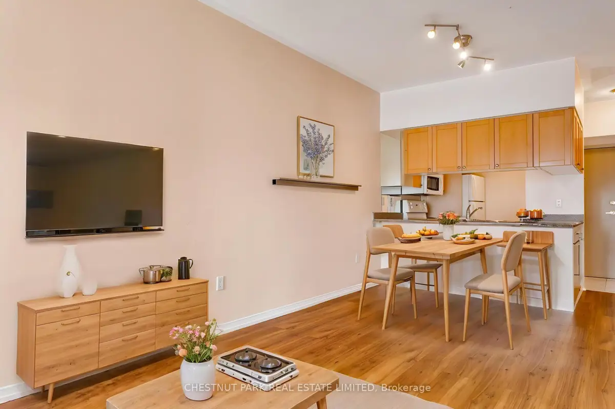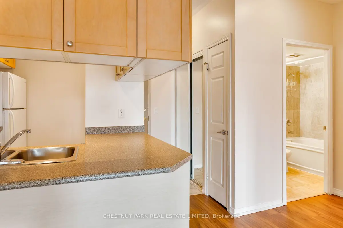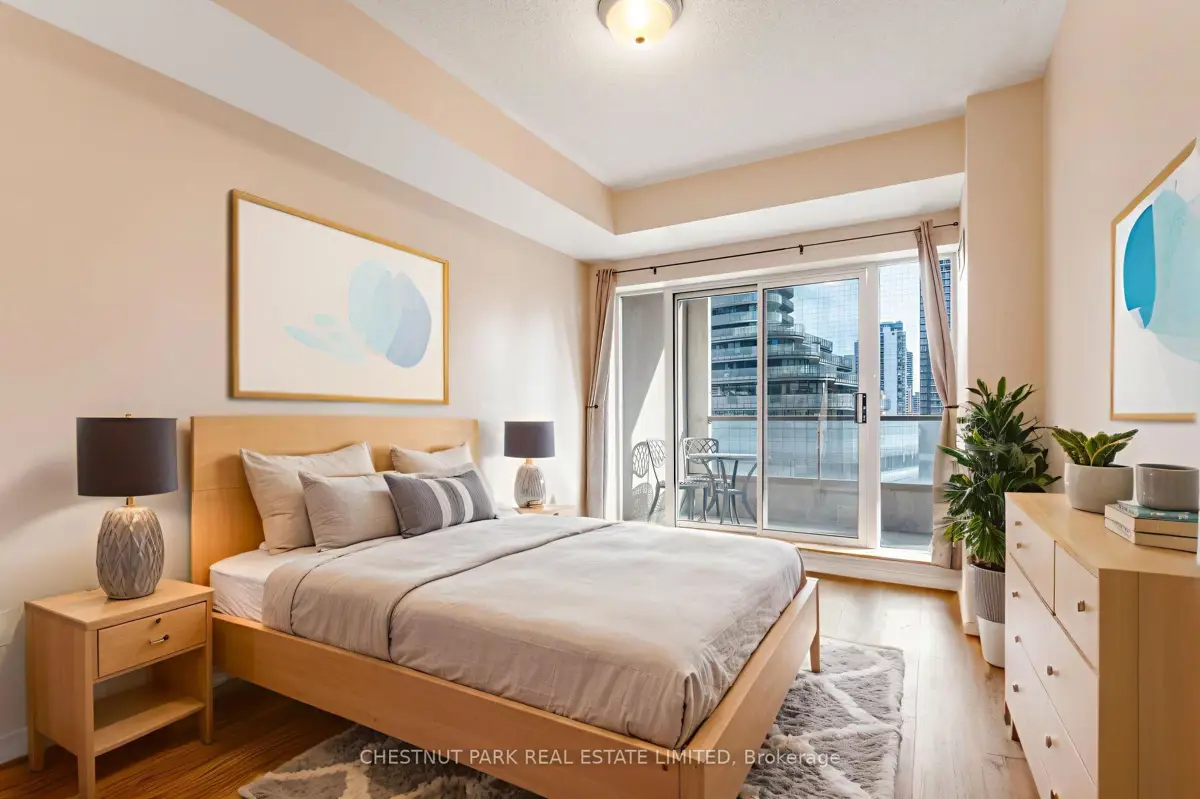 Welcome home to this 571 square foot, 1 bedroom, 1 bathroom condominium in the heart of the Bay Street corridor. Featuring one of the best floor plans in the building, this unit makes fantastic use of the available space welcoming you inside with an open concept layout that includes a well-proportioned living/dining room with a walkout to the balcony, all of which is open to the kitchen with plenty of storage. The spacious bedroom also features its own balcony walkout and includes a large double closet with easy access to the 4 piece bathroom and ensuite laundry. The large balcony overlooks Dr. Lillian McGregor Park offering beautiful greenspace. 1 car parking and 1 storage locker are also included and hydro, heat and water are included in the maintenance fees. The building offers fabulous amenities including a concierge, gym, media room, sauna and rooftop deck. Walk out your front door to every amenity imaginable with transit, shopping, dining and entertainment at your doorstep. Easy access to the Financial District, major hospitals, universities and so much more.
