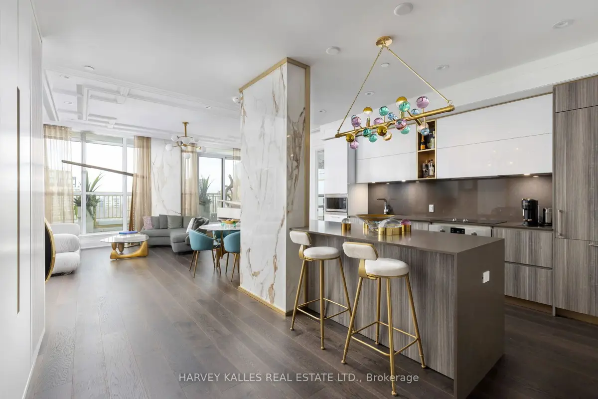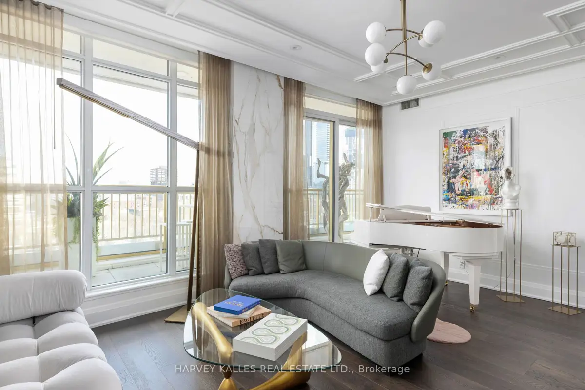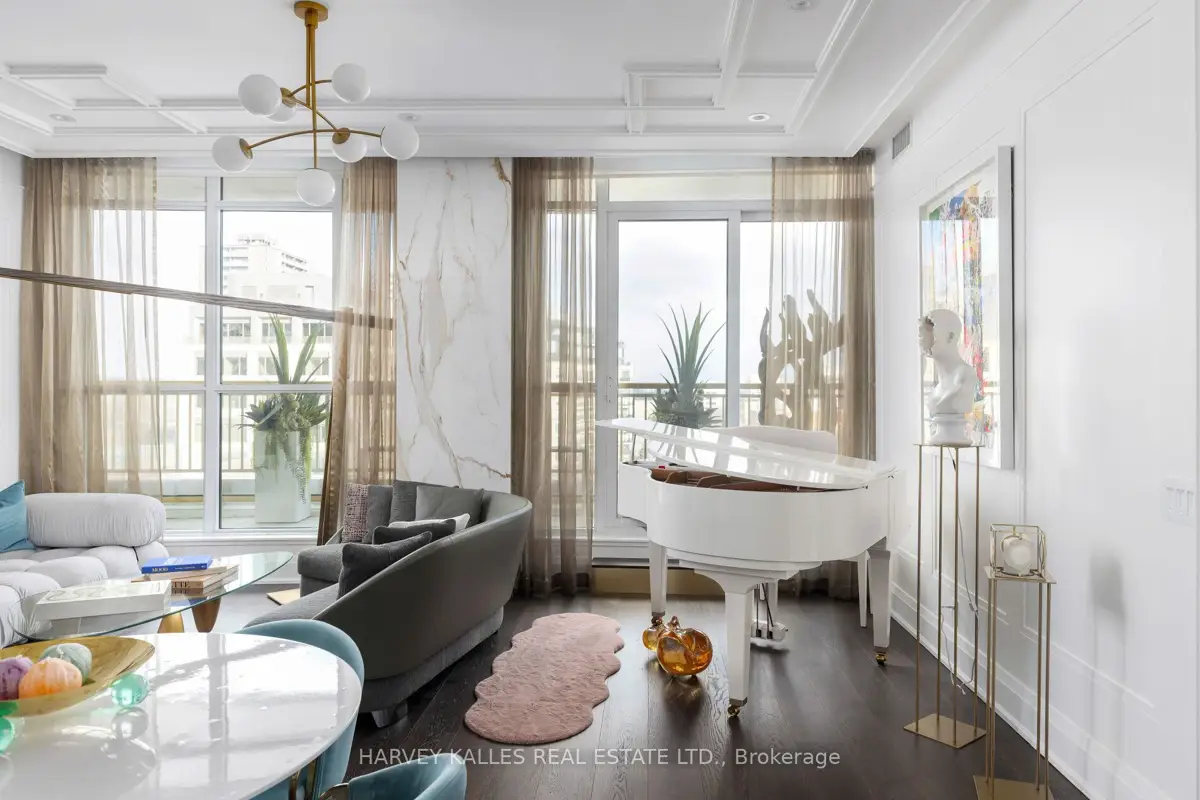 Experience the epitome of luxury living in the heart of Yorkville. This stunning turnkey sub-penthouse offers a new standard of elegance with soaring 10-foot ceilings and an expansive, open-concept living space ready for you to move right in. Available with all luxury furnishings and curated artwork, this home is designed for the discerning buyer who appreciates the finer things. Enjoy breathtaking, unobstructed panoramic views from the balcony, perfect for unwinding or entertaining. The split-bedroom layout features exquisite European-style kitchen and bathroom finishes, including Pietra stone countertops and matching backsplashes for a seamless, sophisticated look. With 24-hour concierge service, you're just steps away from Yorkville's world-class cafes, restaurants, patios, and boutiques. Take advantage of the buildings top-tier amenities, including a state-of-the-art fitness center, BBQ terrace, party lounge, and guest suite everything you need for a lifestyle of unparalleled comfort and convenience. EXTRAS: All furniture and art available for purchase (excluding piano). Multiple upgrades throughout ($150,000). Motorized Window Shades. Fine millwork - built-in bookcase. Smart System.