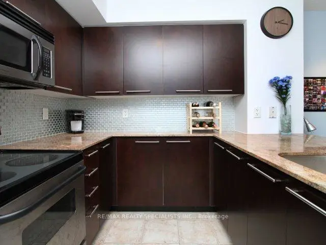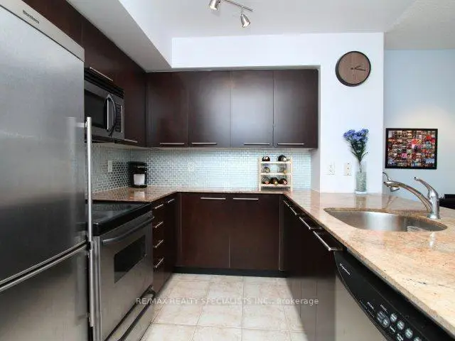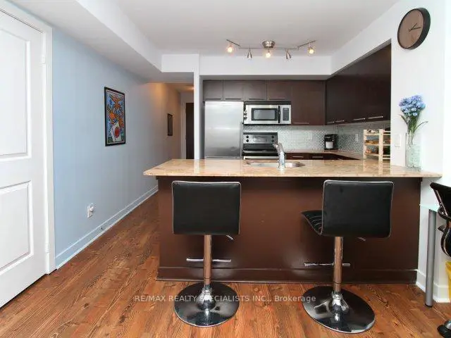 Immaculate one-bedroom suite in sought-after Liberty Village with gorgeous lake views! This bright and spacious suite boasts an open-concept floor plan with laminate floors throughout and a walkout to the oversized balcony from both the living/dining area and the primary bedroom. The kitchen features granite countertops, stainless steel appliances, a glass backsplash, and a breakfast bar. Ideally located close to all amenities, including shopping, public transit, entertainment, and more.