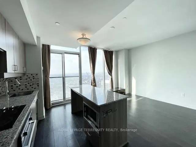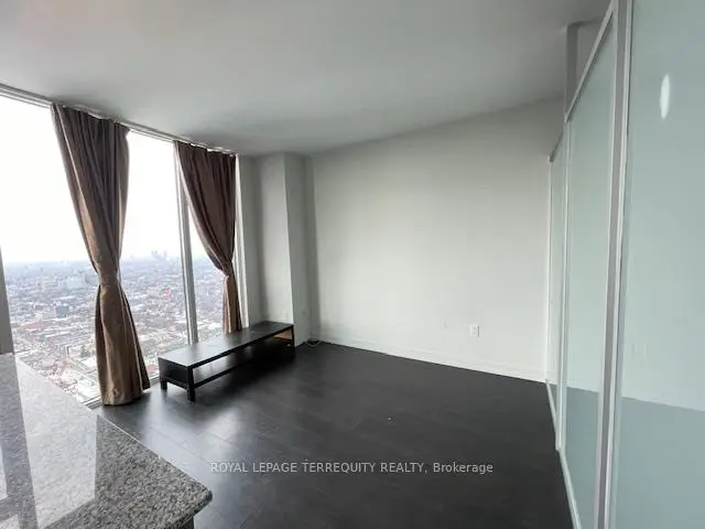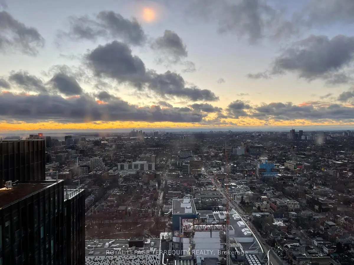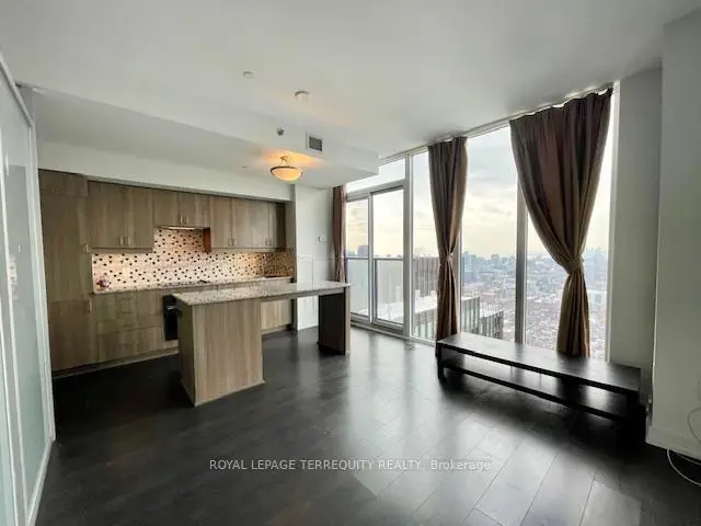 Stunning penthouse suite in the heart of Downtown Toronto with breathtaking unobstructed south west view. 740 Sq. Ft. 1 Bedroom + Den per builder, but den is nearly identical to bedroom and can be used as a second bedroom. 9 Foot ceiling, granite countertop and kitchen island. Expansive floor to ceiling windows. Heat pump replaced Aug 2024. Easy access to subway. Steps to everything! Building amenities include: fitness centre, 24hr concierge, bicycle storage and more. Non-smoking building.