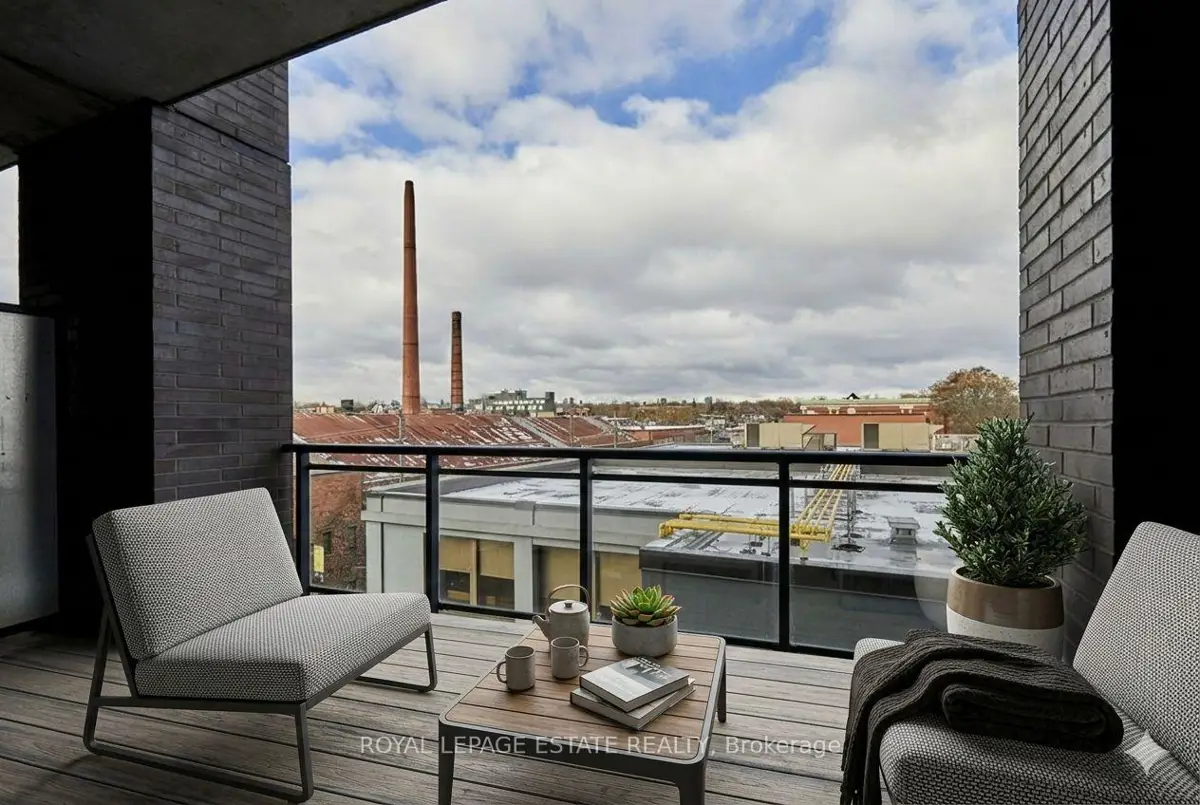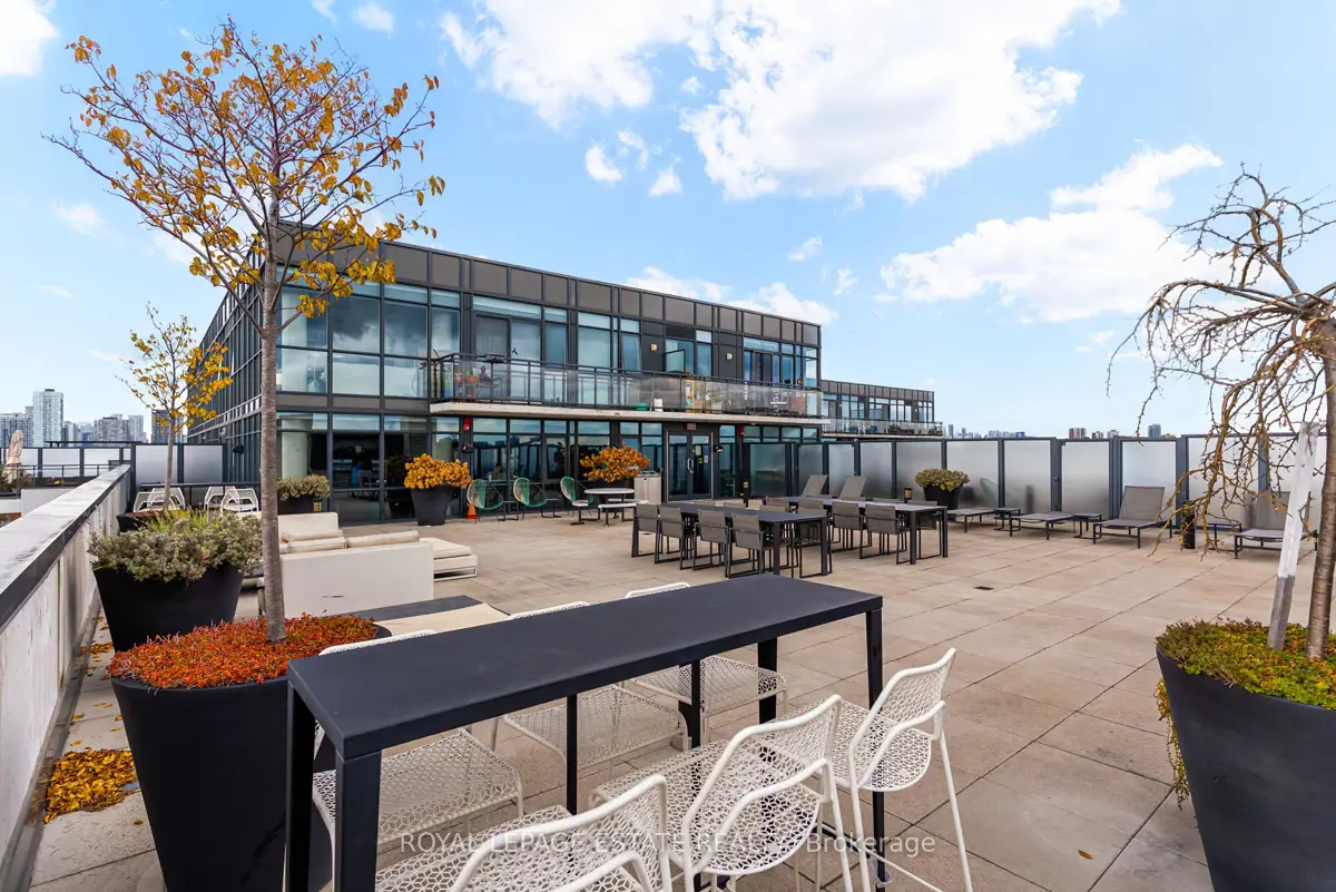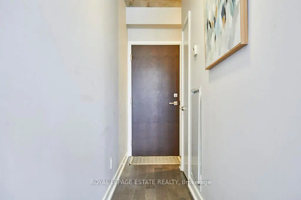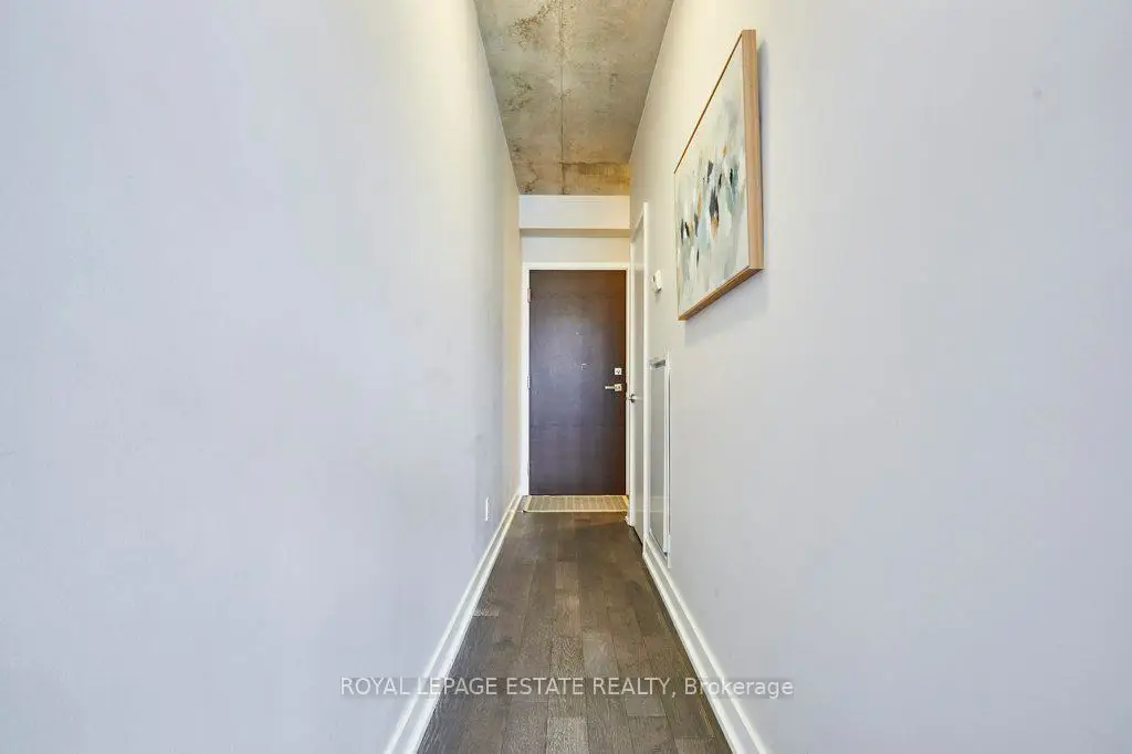 Welcome to The Carlaw - an impeccably designed condo-loft that offers a bright, efficient footprint and the perfect entry point into Leslieville. This suite features 9-foot exposed concrete ceilings, floor-to-ceiling windows, and engineered hardwood throughout an open-concept layout optimized for modern living. The sleek kitchen has integrated appliances, quartz countertops, and under-cabinet lighting, while practical details like a proper entry hall closet and a separate laundry room with extra storage enhance the home's daily functionality. Step outside to your private, covered balcony - equipped with a Gas BBQ hookup-offering year-round usability and a quiet escape. Residents enjoy premium amenities including a 24-hour concierge, a fully equipped gym, and a rooftop terrace with breathtaking city skyline sunsets. With Piano Piano and Crow's Theatre at your doorstep, and the best shops and cafes of Riverside and Leslieville are just a short stroll away, this location offers a completely walkable lifestyle in one of Toronto's most coveted pockets. This property is priced for immediate action, this suite is the Leslieville entry point you've been waiting for!