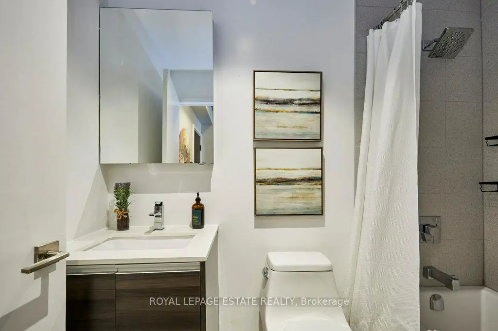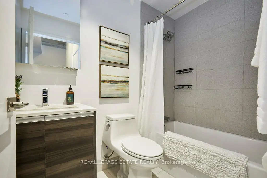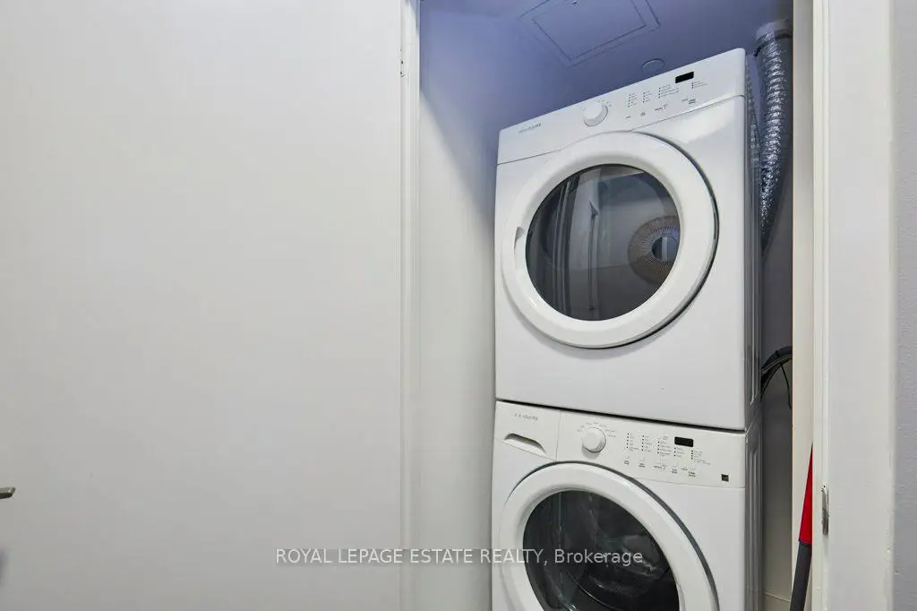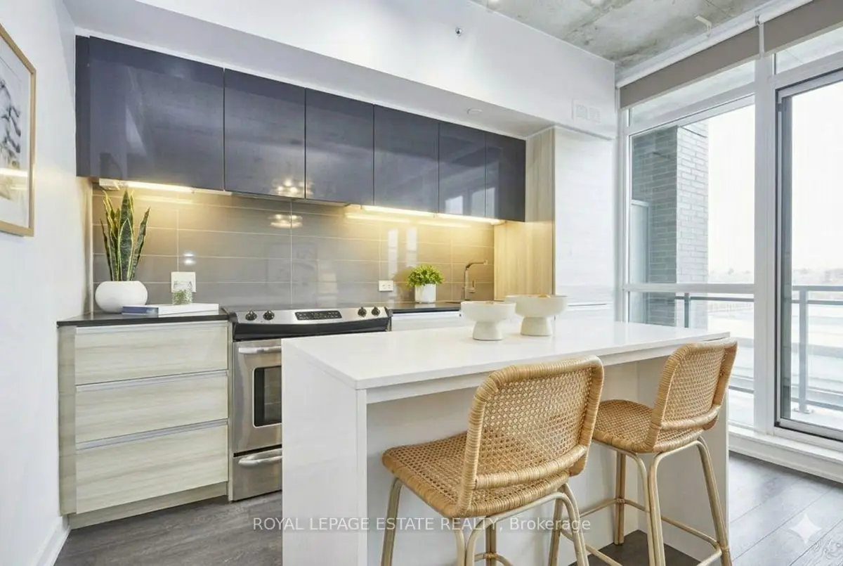 Welcome to The Carlaw - an impeccably designed condo-loft that offers a bright, efficient footprint and the perfect entry point into Leslieville. This suite features 9-foot exposed concrete ceilings, floor-to-ceiling windows, and engineered hardwood throughout an open-concept layout optimized for modern living. The sleek kitchen has integrated appliances, quartz countertops, and under-cabinet lighting, while practical details like a proper entry hall closet and a separate laundry room with extra storage enhance the home's daily functionality. Step outside to your private, covered balcony - equipped with a Gas BBQ hookup-offering year-round usability and a quiet escape. Residents enjoy premium amenities including a 24-hour concierge, a fully equipped gym, and a rooftop terrace with breathtaking city skyline sunsets. With Piano Piano and Crow's Theatre at your doorstep, and the best shops and cafes of Riverside and Leslieville are just a short stroll away, this location offers a completely walkable lifestyle in one of Toronto's most coveted pockets. This property is priced for immediate action, this suite is the Leslieville entry point you've been waiting for!