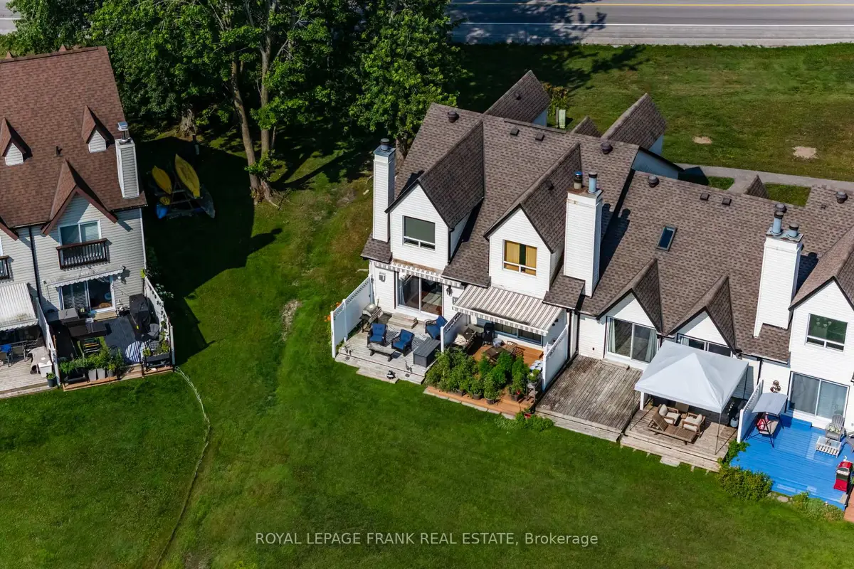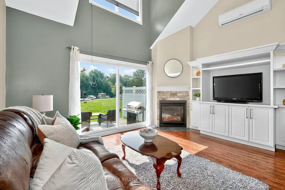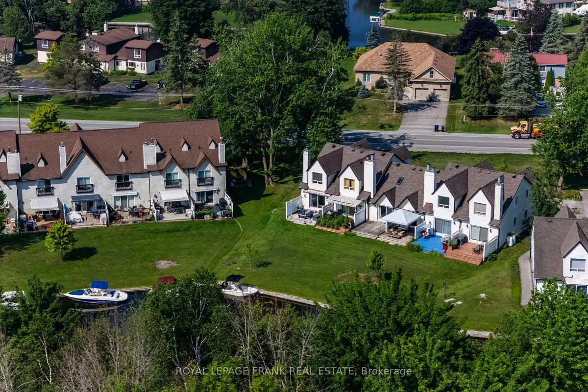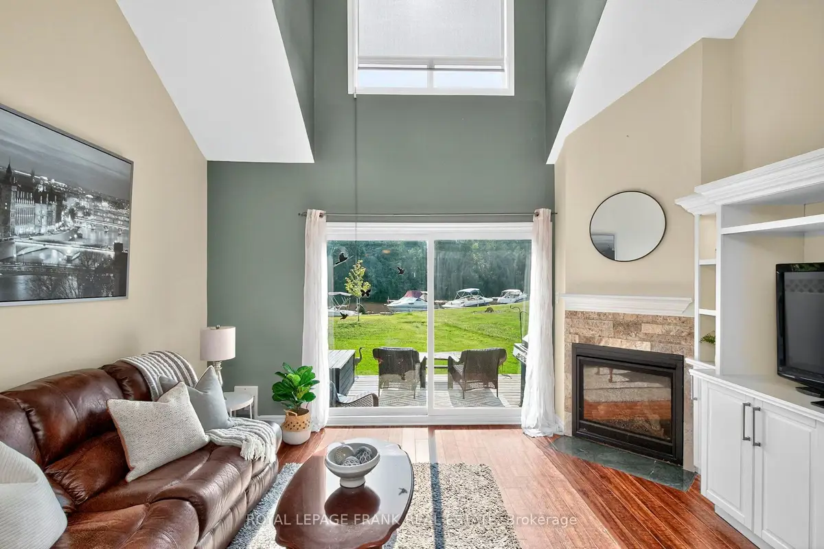 Discover this beautifully renovated Rarely offered end-unit 2-bedroom, 2-bath waterfront townhome in the heart of Lagoon City, perfectly situated on the peaceful Gondola Lagoon with private boat mooring and direct access to Lake Simcoe and the Trent-Severn Waterway. This bright and airy home features a vaulted ceiling, and large patio doors that fill the space with natural light. The open-concept living, dining, and kitchen area offers a cozy gas fireplace, gas BBQ hookup, and a walkout to a private waterfront deck with Awning ideal for entertaining or relaxing as you watch the boats drift by. The remodeled main bathroom, fresh paint throughout, and spray-foamed crawlspace for improved energy efficiency add to the home's comfort. The spacious loft-style primary bedroom overlooks the water and mature trees, and features a 4-piece ensuite and an office/reading nook. Enjoy cooking in the modern kitchen with stainless steel appliances, including a wine cooler, and benefit from a dual system air conditioner for both heating and cooling, plus a whole-home water filtration system for added peace of mind. This rarely offered end-unit is part of the sought-after community, which features a professionally landscaped grounds, and direct access to two private sandy beaches.. Lagoon City also boasts a full-service marina, year-round clubhouse, tennis & pickleball courts, miles of walking and biking trails, and easy access to golf courses, leash-free dog park, and Casino Rama just a short drive away. With municipal services, high-speed internet, and only 1.5 hours from the GTA, this is the perfect full-time home, cottage retreat, or work-from-home escape. Start your new waterfront lifestyle today in this exceptional end-unit townhome a true gem in a one-of-a-kind community.