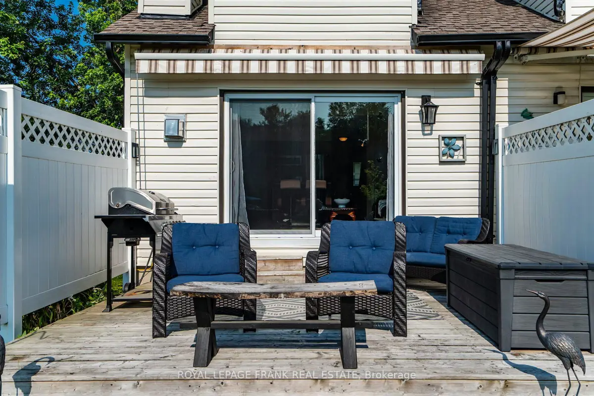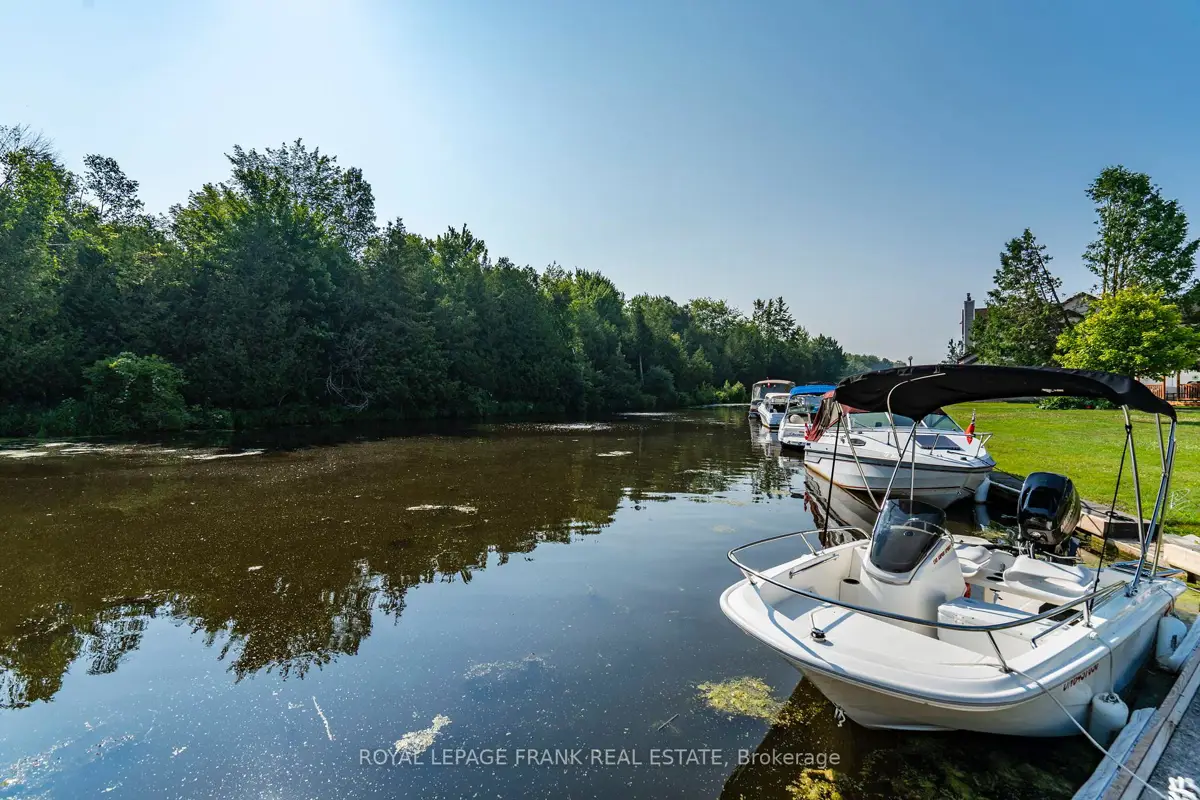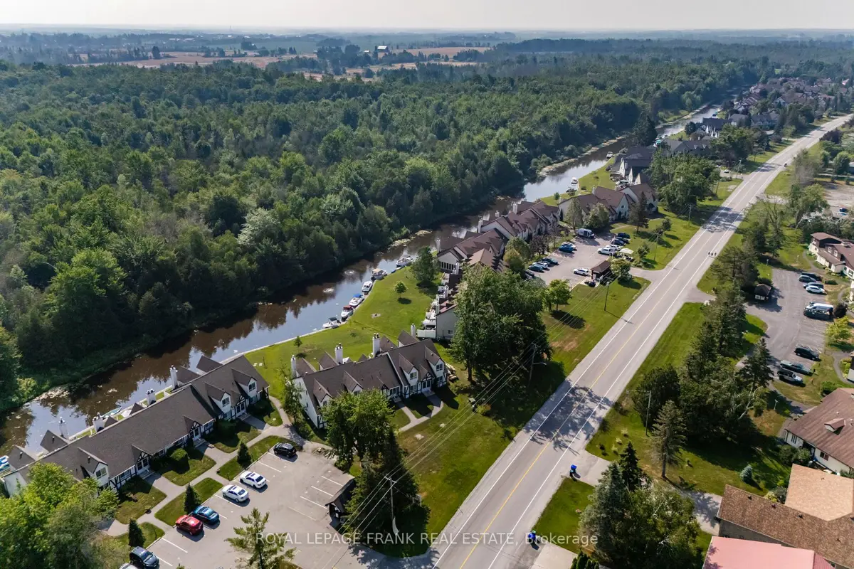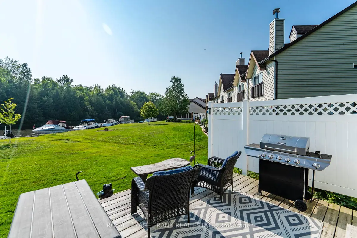 Discover this beautifully renovated Rarely offered end-unit 2-bedroom, 2-bath waterfront townhome in the heart of Lagoon City, perfectly situated on the peaceful Gondola Lagoon with private boat mooring and direct access to Lake Simcoe and the Trent-Severn Waterway. This bright and airy home features a vaulted ceiling, and large patio doors that fill the space with natural light. The open-concept living, dining, and kitchen area offers a cozy gas fireplace, gas BBQ hookup, and a walkout to a private waterfront deck with Awning ideal for entertaining or relaxing as you watch the boats drift by. The remodeled main bathroom, fresh paint throughout, and spray-foamed crawlspace for improved energy efficiency add to the home's comfort. The spacious loft-style primary bedroom overlooks the water and mature trees, and features a 4-piece ensuite and an office/reading nook. Enjoy cooking in the modern kitchen with stainless steel appliances, including a wine cooler, and benefit from a dual system air conditioner for both heating and cooling, plus a whole-home water filtration system for added peace of mind. This rarely offered end-unit is part of the sought-after community, which features a professionally landscaped grounds, and direct access to two private sandy beaches.. Lagoon City also boasts a full-service marina, year-round clubhouse, tennis & pickleball courts, miles of walking and biking trails, and easy access to golf courses, leash-free dog park, and Casino Rama just a short drive away. With municipal services, high-speed internet, and only 1.5 hours from the GTA, this is the perfect full-time home, cottage retreat, or work-from-home escape. Start your new waterfront lifestyle today in this exceptional end-unit townhome a true gem in a one-of-a-kind community.