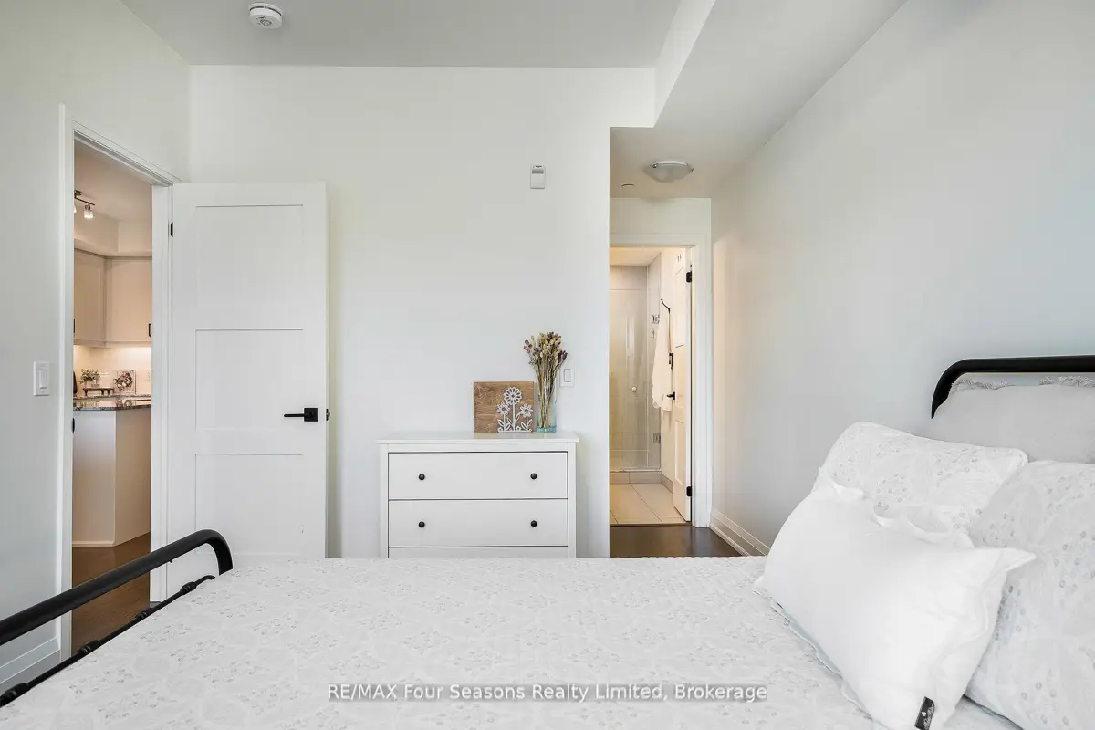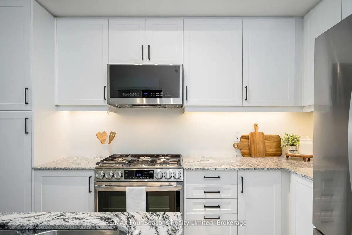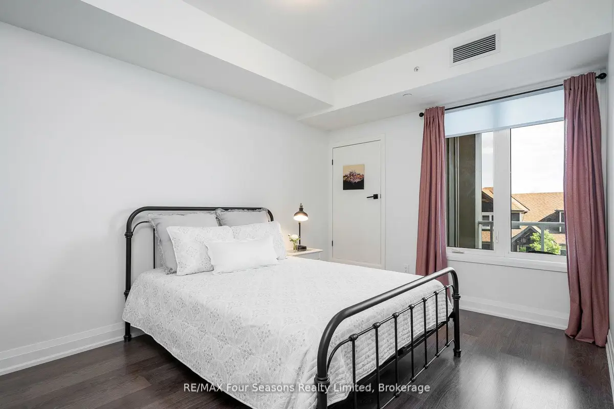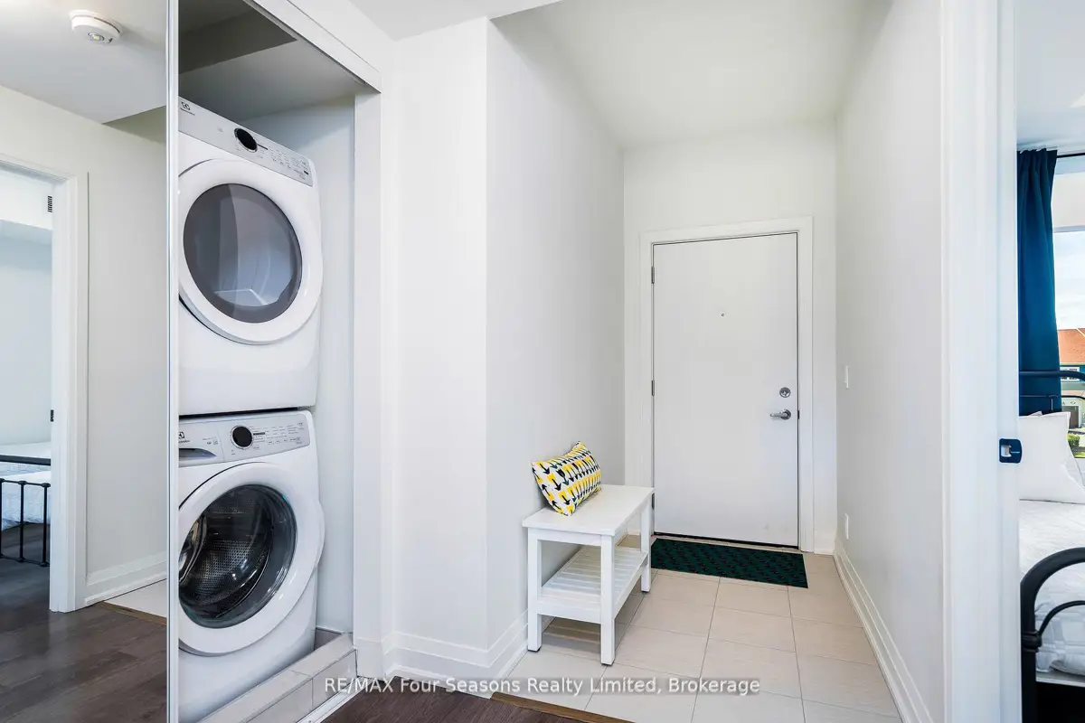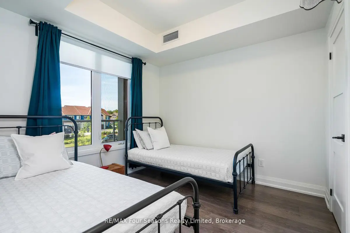 BRAND NEW CONDO AT THE VIEW Blue Fairways with UNDERGROUND PARKING! Move-in ready and just completed, this beautifully upgraded Condor floorplan offers over $20K in upgrades and stylish open-concept living. Enjoy a generous 17 x 8 covered balcony with sleek glass railings and a gas BBQ hookup perfect for entertaining or unwinding outdoors. Located in the sought-after View development within Cranberry Golf Course, this unit showcases high-end finishes including laminate and tile flooring, 9 ceilings, and granite countertops in both the kitchen and ensuite. The luxurious ensuite also features a modern glass walk-in shower. The gourmet kitchen is equipped with a gas range, stainless steel appliances, stone counters, and ample cabinetry ideal for cooking and hosting. Additional highlights include; Gas heating & central air, In-suite laundry closet, Large storage locker just outside your front door, and One assigned underground parking space. Enjoy a prime location with direct access to the Georgian Trail, and just steps to shops, restaurants, and cafes. Only 5 minutes to downtown Collingwood, ski hills, beaches, and golf courses all nearby perfect for year-round living or weekend escapes. Condo fees include garbage removal, and a brand new pool, fitness center, and playground exclusively for The View residents.