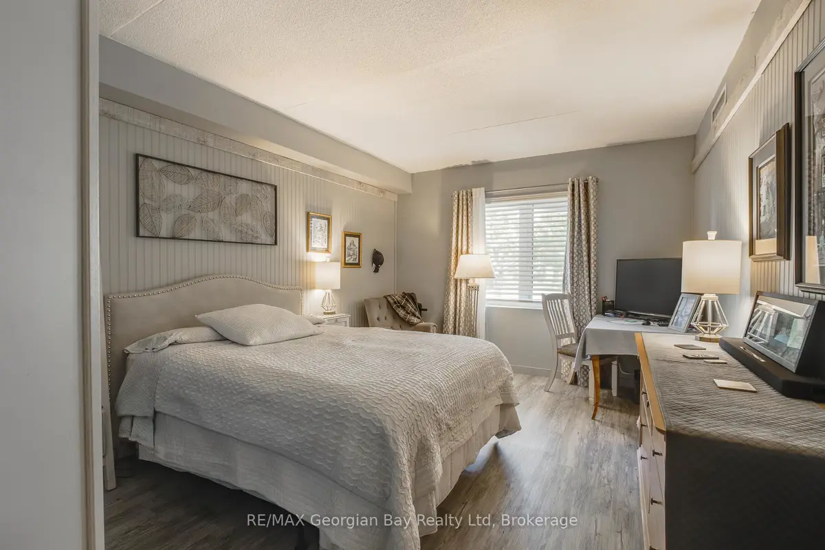 Private, Enjoyable Suite With Interesting Sight Lines, Garage Parking, Plus A Locker For Your Additional Storage Needs! Here you have full advantage of the quieter end of this well-maintained building, away from the hustle and bustle of the foyers, yet very close to your garage entrance and steps from an extra parking spot outside for guests. Your patio door has keyed-entry for seamless access to the outdoors, great for pets and your active lifestyle so you can come and go directly from your unit instead of relying on an elevator. And your covered patio is a sheltered place with plenty of surrounding greenery and a tranquil feel. You also have the use of a roof-top deck for larger gatherings and barbeques. A neutral decor allows you to personalize the space to suit you, and an efficient floor plan has great views to nature outside your windows. Be situated in White Sands across from Georgian Bay in a desirable Penetanguishene neighbourhood, and a hop-skip-and-jump from our vibrant downtown shops, restaurants, cultural centres... Walk, ride or ski along our beautiful waterfront, for outdoor fun all year around. Close to marinas, curling club, hospital, golf courses and all the other amenities our wonderful shoreline community has to offer you. Minutes to Midland, commuting distance to Barrie, Wasaga Beach, Orillia, and 90 minutes to the Toronto area. Whether this is your first home or a downsize, here is a rare opportunity for you to enjoy care-free condo living at its best! Get it before it's gone!