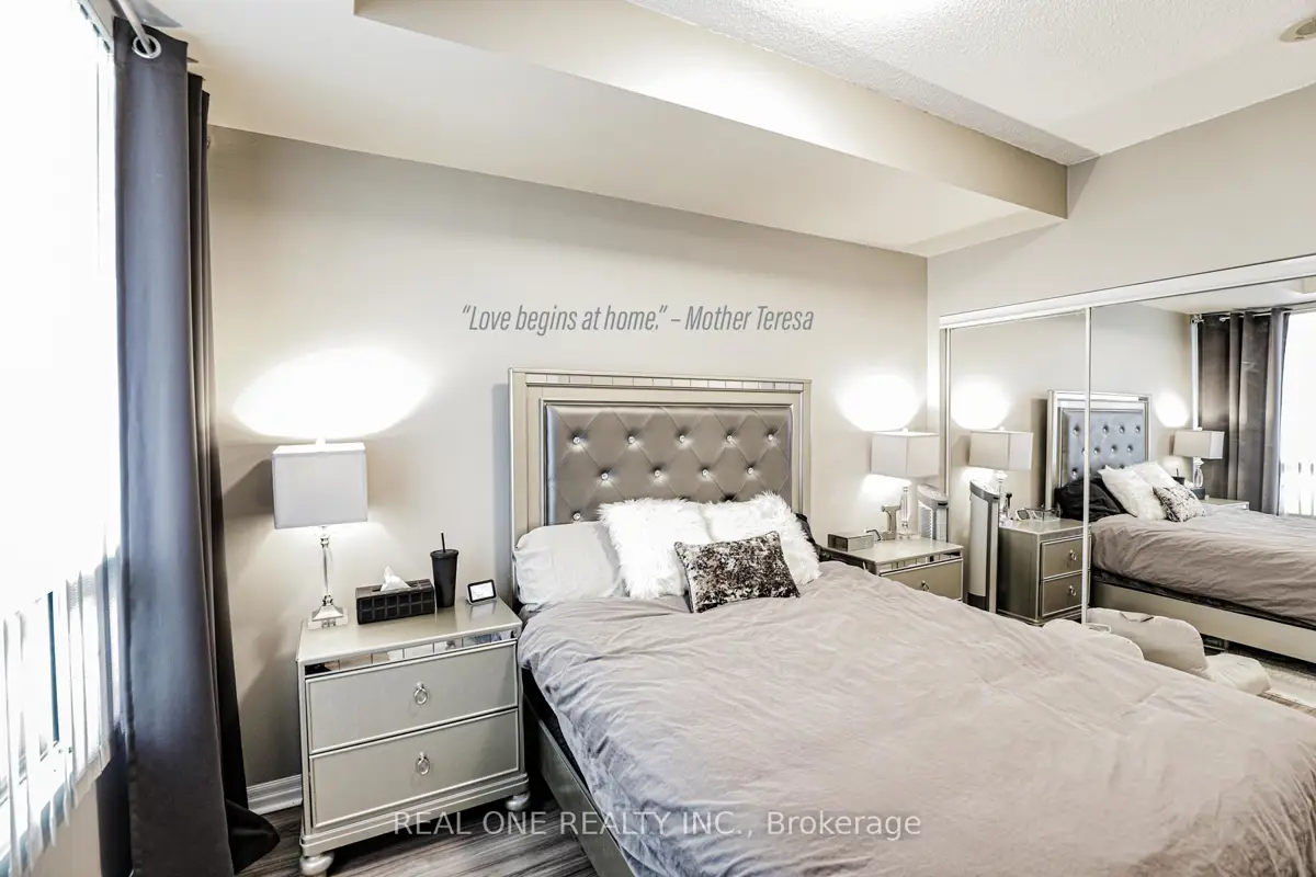 Experience elevated urban living in this expansive suite, featuring a rare king-sized primary bedroom plus a versatile den and two full bathrooms. Floor-to-ceiling windows lead to a large private balcony, offering breathtaking, unobstructed sunset views every evening. The chef-inspired kitchen boasts premium granite countertops, perfect for entertaining. Convenience is unmatched with underground parking situated steps from the entrance. Enjoy world-class amenities including 24/7 security, a pool, gym, and social rooms-all located minutes from Square One, major highways, and Rockwood Shopping Mall.
