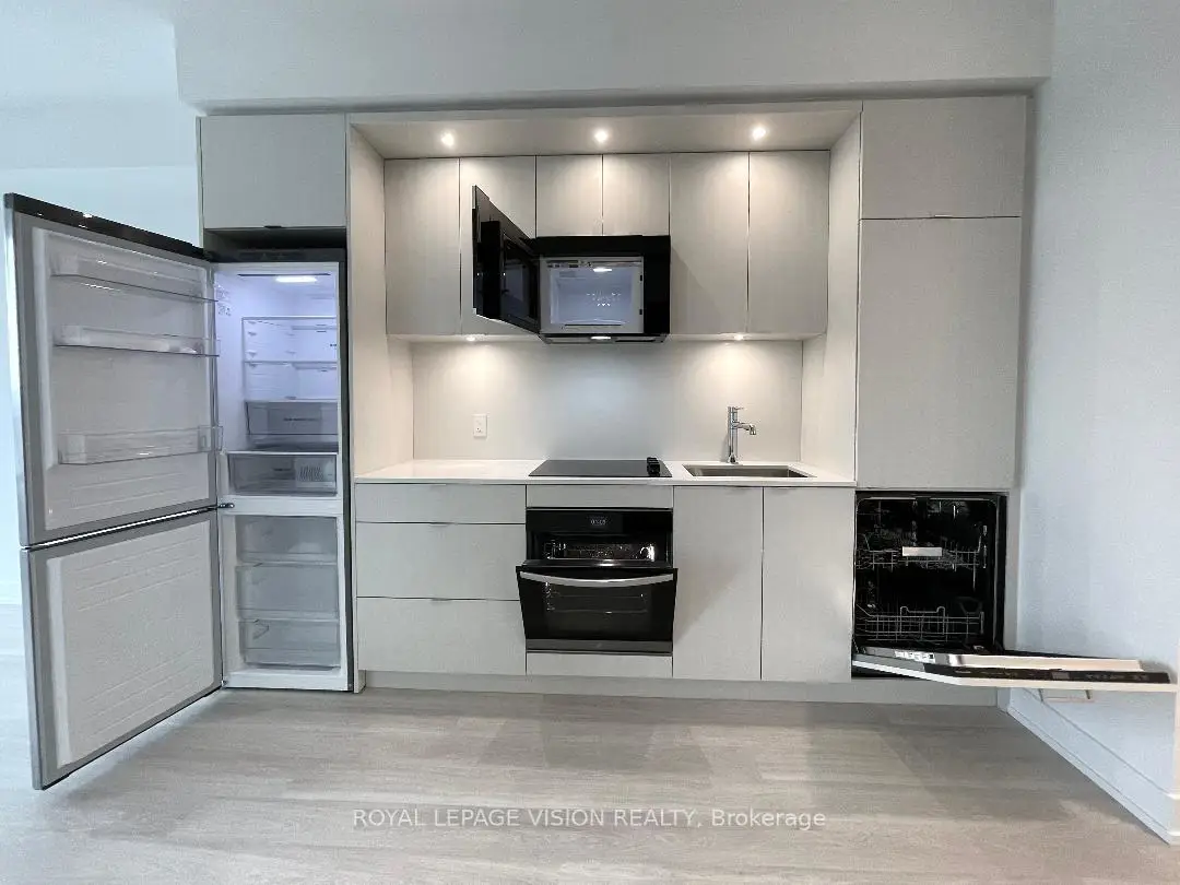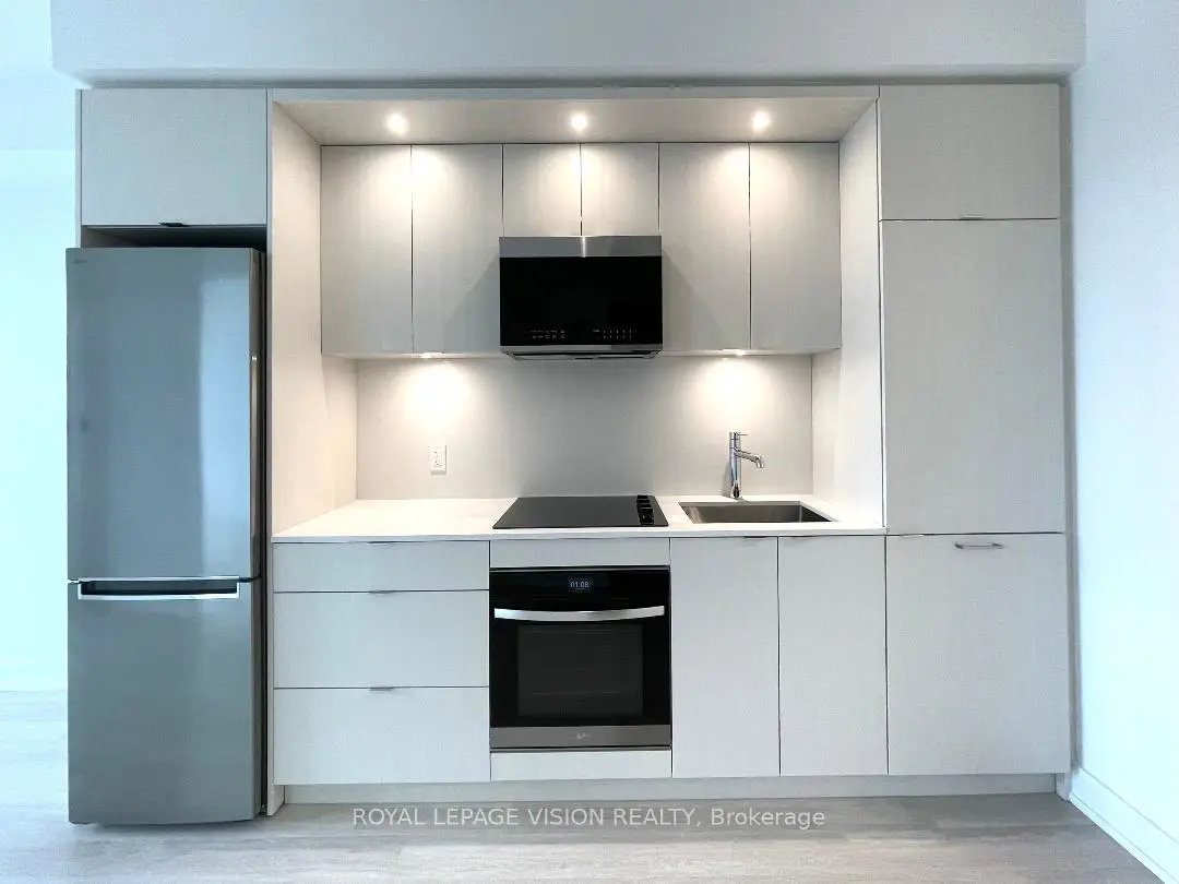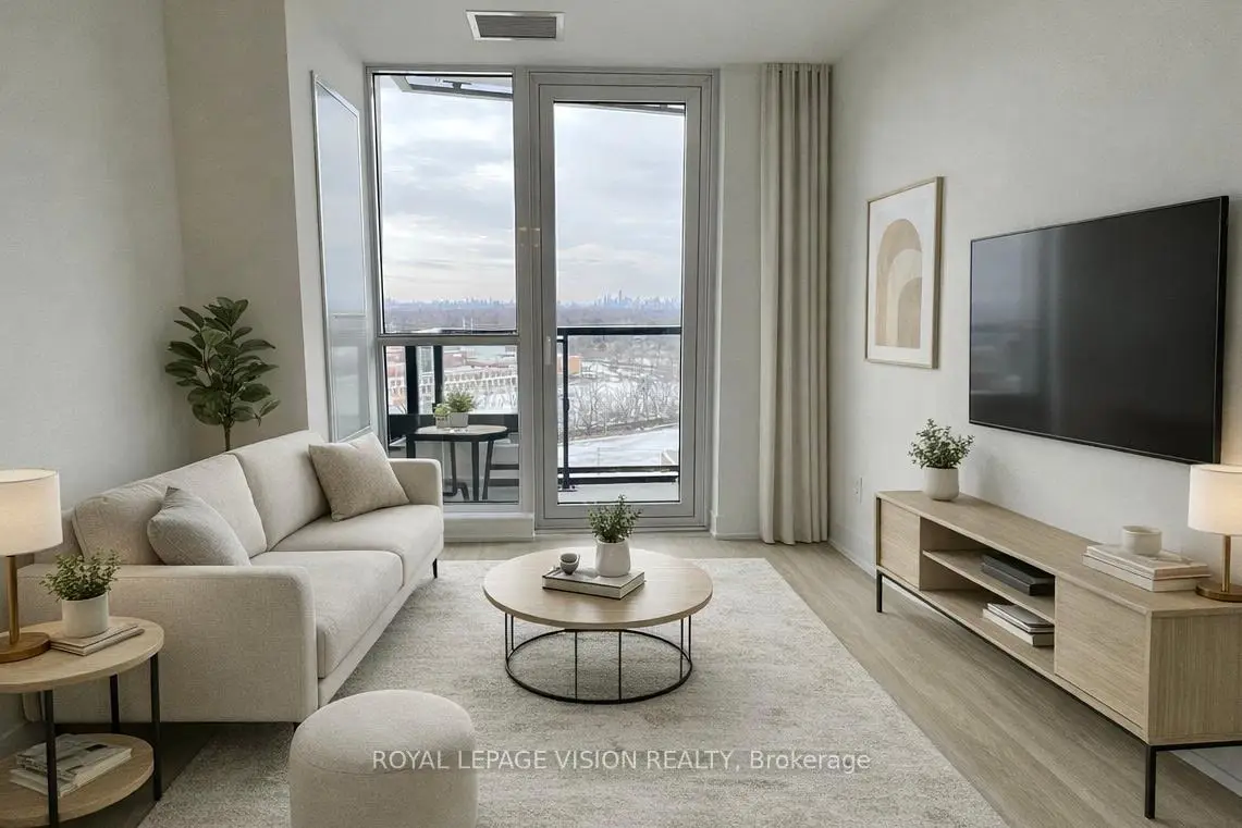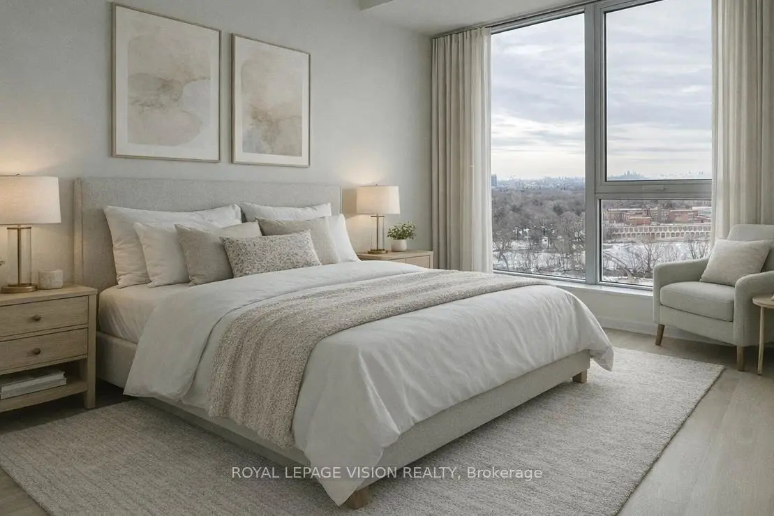 Welcome to Tridel's Westerly 2 Condos in the vibrant west end of Toronto. This bright and modern 1-bedroom condominium offers a smart, efficient layout ideal for professionals or couples seeking comfort and convenience. Featuring contemporary finishes, an open-concept living and dining area, and a sleek kitchen with modern appliances and a stone countertop. The spacious bedroom includes ample closet space, while large windows bring in plenty of natural light throughout the unit. Enjoy access to premium building amenities and the convenience of living just steps to transit, shopping, dining, and everyday essentials. With easy access to major highways and nearby parks, this location offers the perfect balance of urban living and neighbourhood charm. A fantastic opportunity to lease a stylish unit in one of Toronto's desirable west-end communities. *Digital Staging Used, may not be to scale.