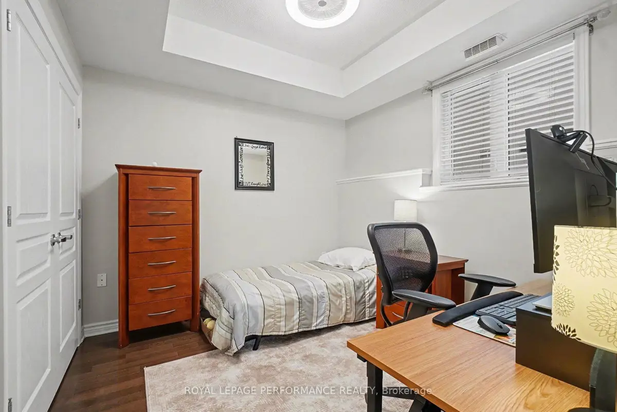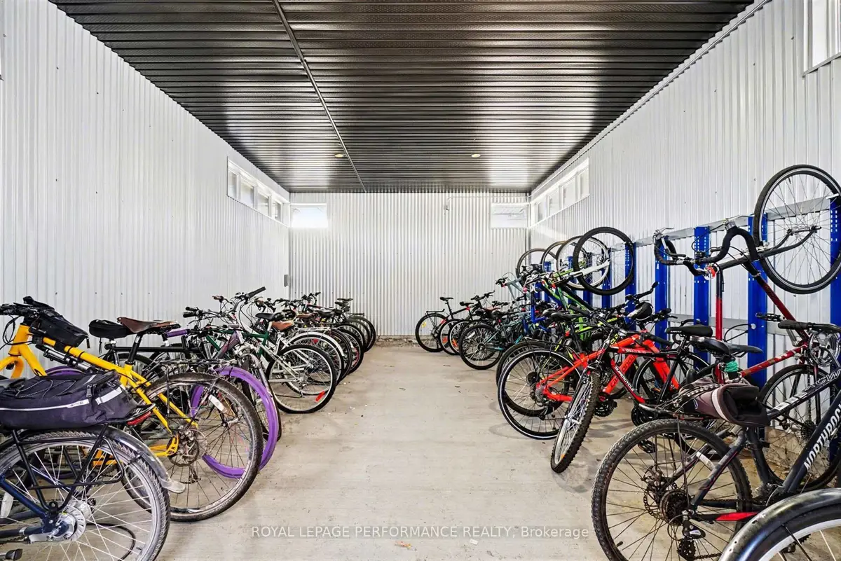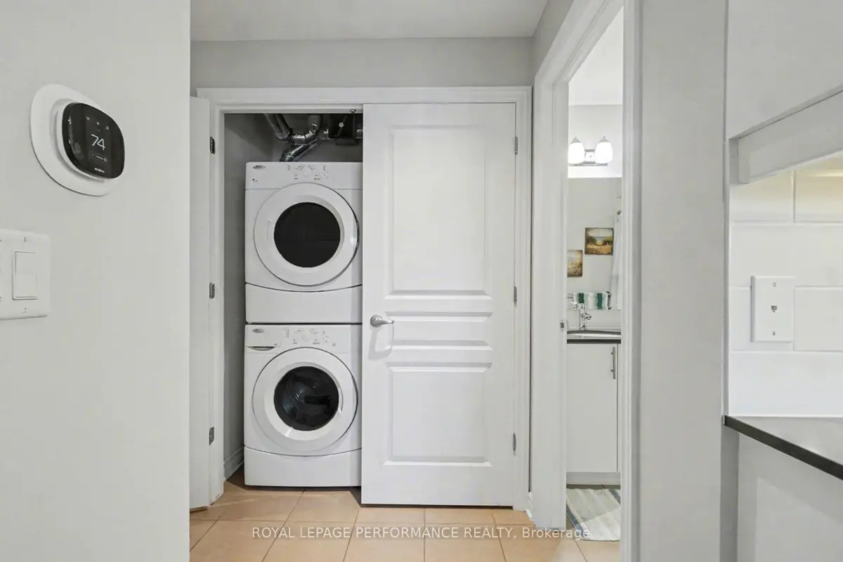 Perfectly Located Condo! Just steps away from the O-Train Cyrville Station, this exceptional unit features 2 bedrooms and 2 bathrooms, and is ready for you to move in. The bright, open-concept layout is accentuated by high ceilings, creating a spacious atmosphere. The kitchen is a highlight, showcasing quartz countertops, a breakfast bar, and stainless steel appliances. Elegant hardwood flooring flows seamlessly through the living and dining spaces, extending into both bedrooms. This condo offers the convenience of a 3-piece ensuite with an oversized shower and in-unit laundry. Step through the patio doors to discover a covered, ground-level private interlock terrace that overlooks a park, with no front neighbors. Furthermore, this home includes one parking space, one storage locker, and bike storage for added convenience.
