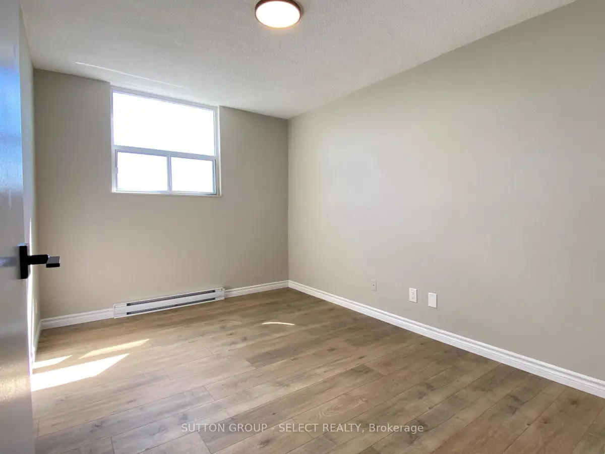 Professionally renovated, 1 bedroom unit on the 8th floor with sunny south views, one underground parking space and a big covered balcony. Air conditioner sleeve in the main room. Super convenient all-in-one condo fee of $591/mth which includes heat, hydro, water (hot & cold) & one underground parking space. Underground parking garage has a free car wash area too. Meticulously maintained condo complex with newer windows, patio doors, & exterior concrete refurbishment. Minutes to HWY 401 & Victoria Hospital. Property tax is $1073/yr.