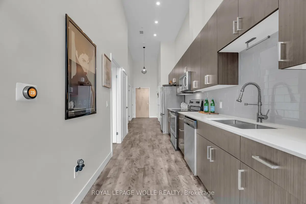 Step into loft-style living in the heart of downtown Kitchener with this stunning 900+ sq. ft. condo designed for comfort, style, and convenience.From the moment you walk in, you'll be impressed by the soaring 13-foot ceilings and dramatic floor-to-ceiling windows that flood the space with natural light, creating a bright, open atmosphere that feels both modern and inviting. The thoughtful layout offers wider hallways and awheelchair-accessible washroom, providing added comfort and ease of movement. Storage is exceptional, featuring four closets, including a spacious new walk-in closet that makes everyday living more organized and comfortable. Step outside and enjoy the vibrant energy of downtown Kitchener, with restaurants, parks, cafés, and year-round festivals just moments away. Commuting is effortless with quick access to the LRT, GO Train, and the future regional transit hub, making this location ideal for professionals and urban explorers alike. Convenience continues throughout the building. The fitness room and theatre room are located on the same floor as the unit, while an impressive co-working space offers private rooms, workstations, a kitchen, and a large meeting room-perfect for working from home or hosting collaborative meetings. When it's time to unwind, enjoy the rooftop patio with BBQs, ideal for relaxing evenings or entertaining friends. The unit includes one underground parking space, with EV charging available in the garage for added convenience. Even better, the condo fee covers internet, heating, water, andmore, making monthly expenses simple and predictable. Stylish, spacious, and perfectly located-this is urban living at its best.