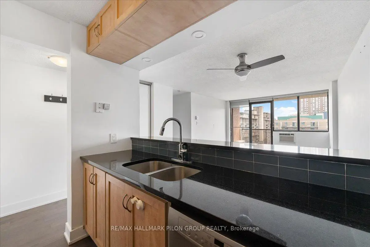 A lovely two bedroom, two bathroom condo located in the heart of downtown Ottawa. This condo has been beautifully upgraded with stunning hardwood floors throughout. The renovated kitchen has granite countertops, stainless steel appliances and a modern glass tile backsplash. The bright living room and dining room is a great space for entertaining. The master bedroom features a walk-through closet that leads you to the upgraded ensuite bathroom. The second bedroom has plenty of closet space and right across the hall is a gorgeous full bathroom. This condo also features a large balcony with lovely views. One underground parking space is also included. It is walking distance to all major amenities, transit, restaurants and nightlife. Come see for yourself before it's too late!