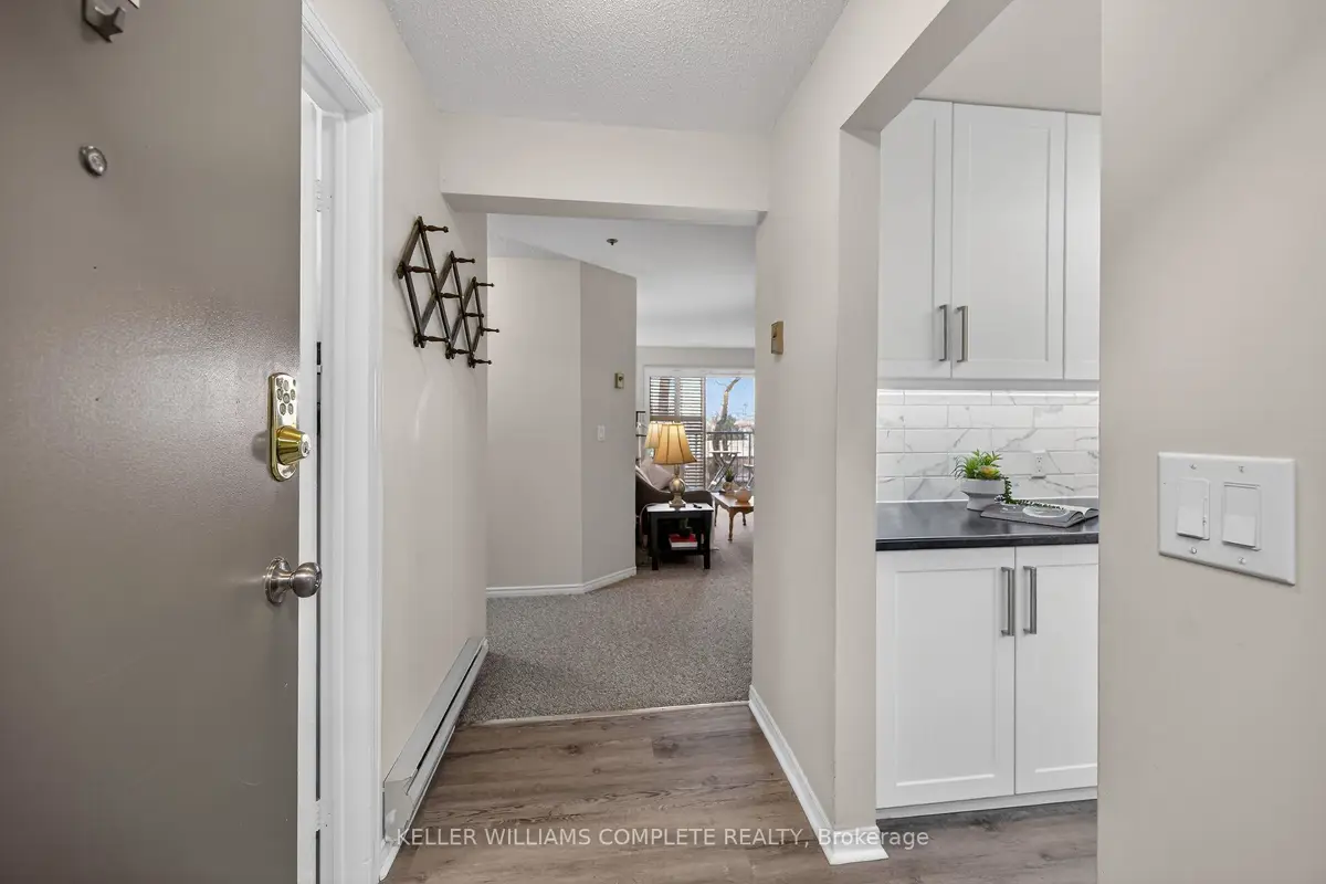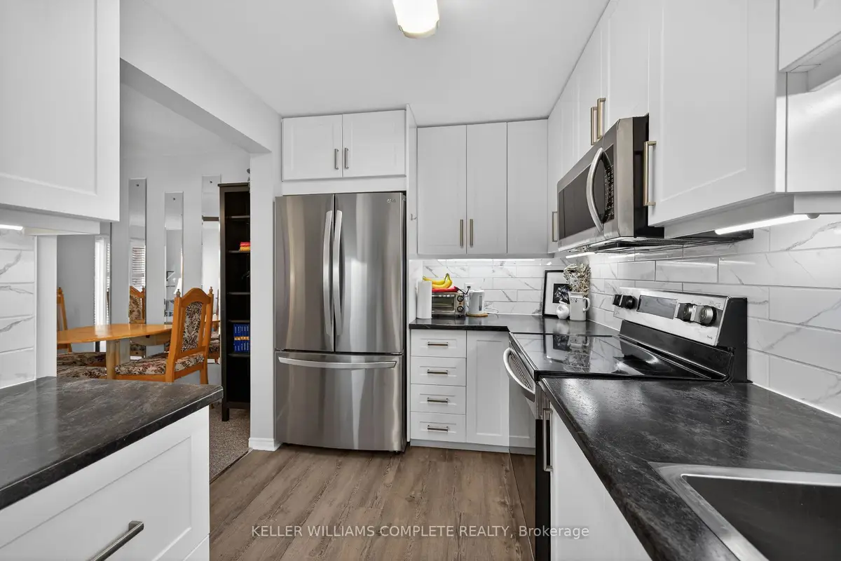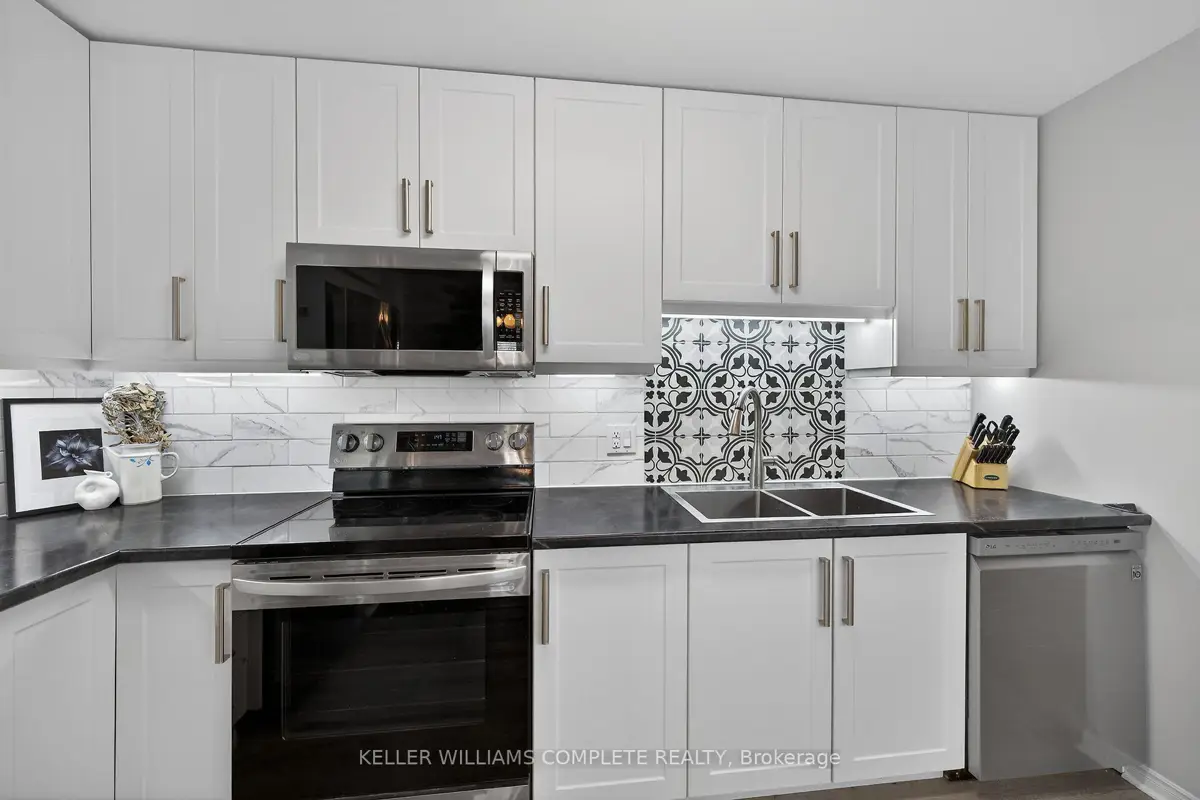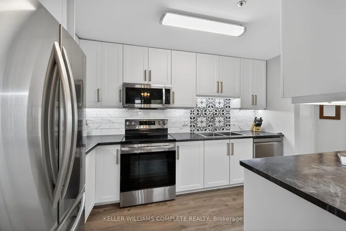 Gorgeous move in ready 2-bedroom unit! This unit could be "the one" as it has an updated kitchen with a tile backsplash, modern stainless-steel appliances. The bathroom is spacious and was also updated a few years ago. Unlike most other condo's, this one was a full laundry room in the unit with modern cabinets (for extra storage) and updated washer and dryer. Got King Size beds? Not a problem as the bedrooms here are quite roomy and with good closet space. The building has a locked foyer, an elevator, underground parking, common locked storage for bikes, 1 assigned parking space per unit, additional parking can be rented. Location couldn't be better! Walking distance to downtown, churches, great schools, parks, hiking trails, shopping, dining, entertainment & minutes to the QEW & future Go Station at Casablanca Blvd.