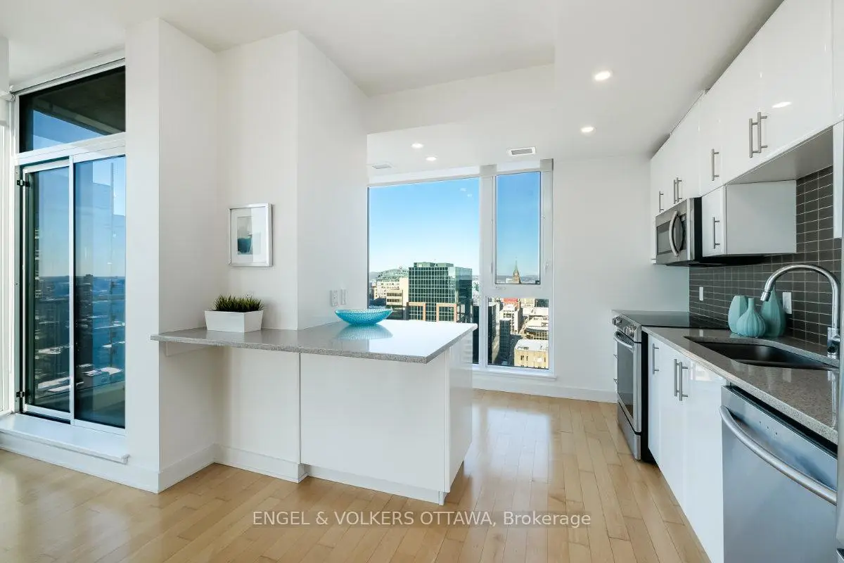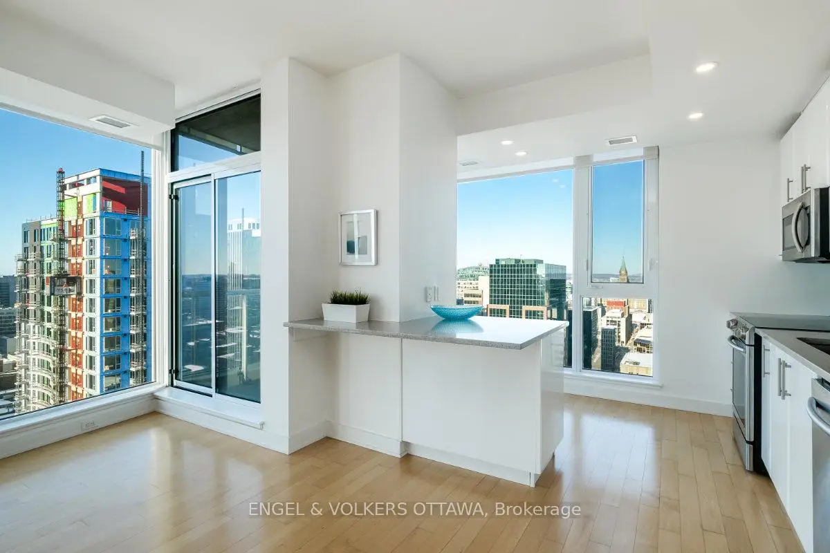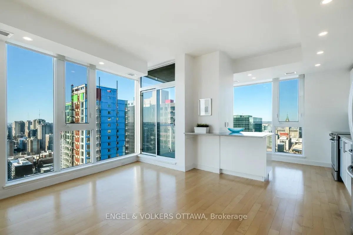 Welcome to unit 2401, a stunning 2 bedroom, 2 bath corner unit offering some of the most coveted views in Ottawa. Floor-to-ceiling windows frame unobstructed views of the parliament Peace Tower and Ottawa skyline. Thoughtfully designed for those who who refuse to compromise, this corner unit stands apart with an exceptional layout, hardwood floors , many upgrades and over 1100 SQ FT. The Grand model offers an open concept living and dining room which is expansive yet intimate, a rare combination at this elevation. Both bedrooms are well separated. Building amenities elevate everyday with an indoor pool, full equipped fitness centre and a rooftop lounge. The location is perfect with Farm Boy and Rexall pharmacy right out your door step. Elgin Street's dining and cafe scene is steps away. Easy walking distance to Parliament Hill, Rideau Centre, Rideau Canal and so much more. This is urban Ottawa living at its finest. Pictures are from previous listing.