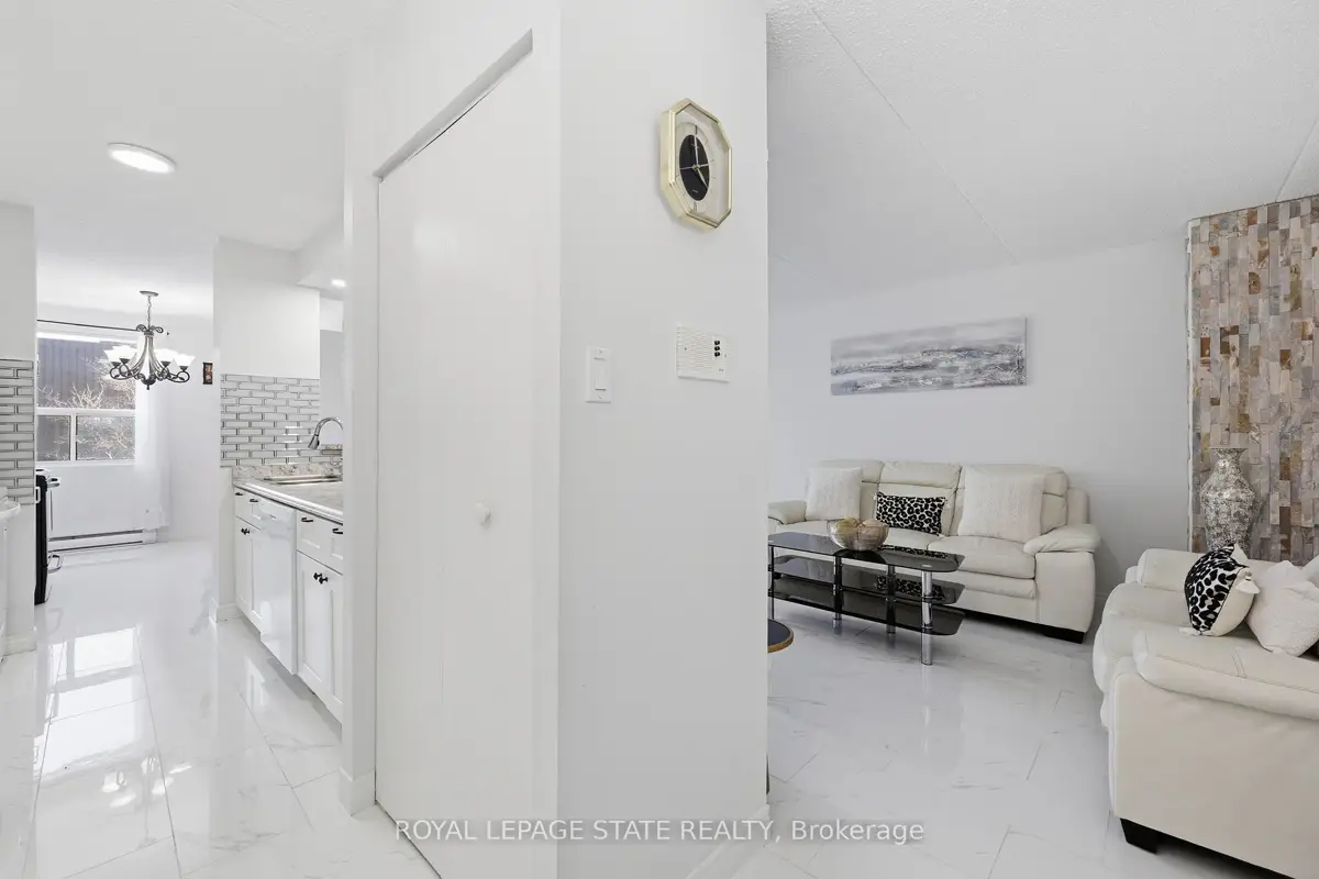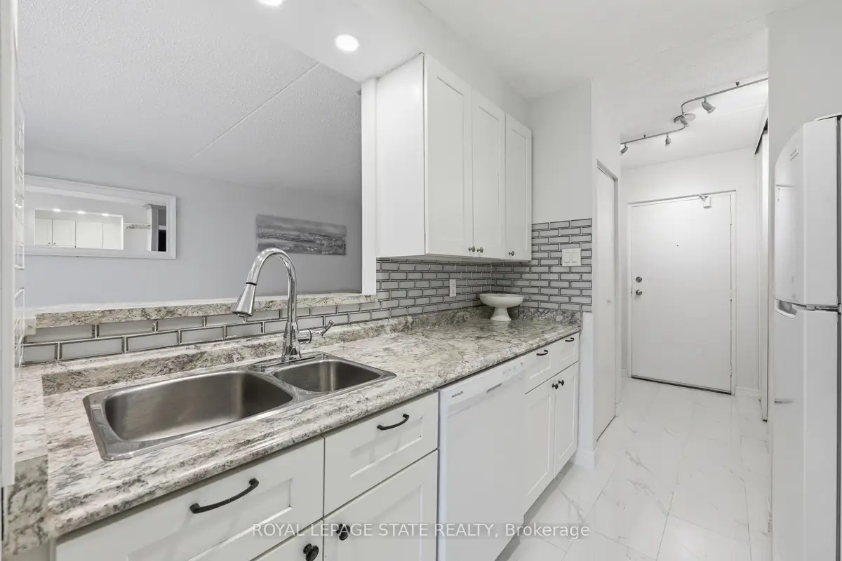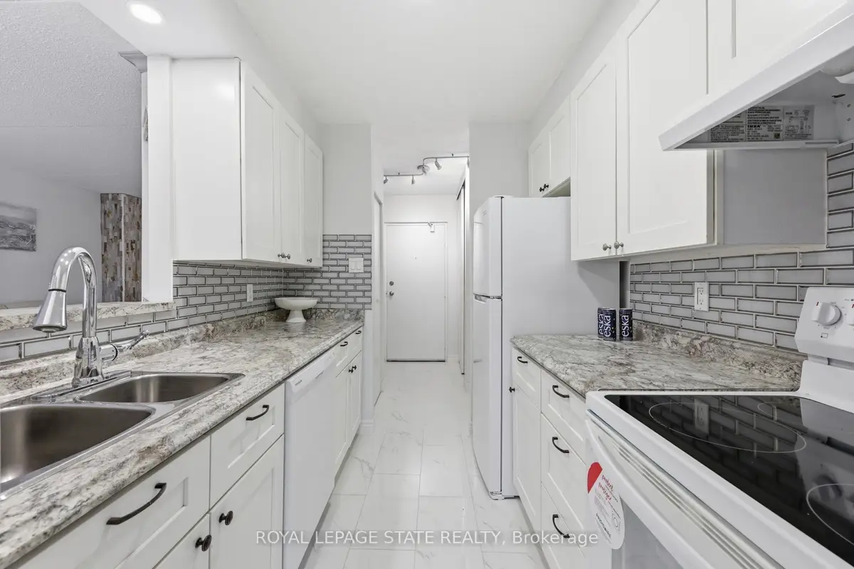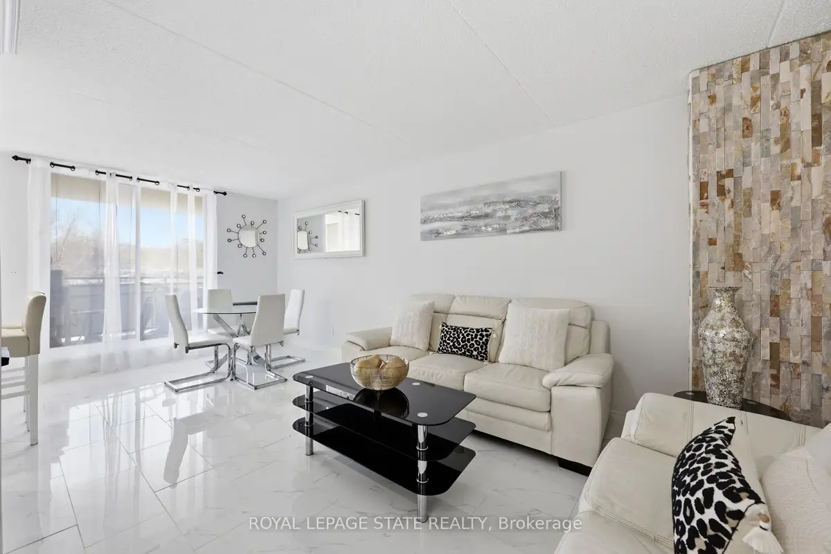 Welcome to 75 Silvercreek Parkway North, Unit 308, located in Guelph's West End.This bright, spacious, and updated corner unit is move-in ready. The two-bedroom, one-bathroom home features a fresh neutral paint palette and carpet-free living with luxurious vinyl plank and tile flooring throughout. The large living room leads to a private covered balcony with sliding doors, and large windows in every room provide ample natural light. The kitchen offers a sleek, contemporary design with pot lights, abundant cabinetry, a beautiful tile backsplash, and recently updated appliances (2024/2025). The kitchen flows seamlessly into the dining room, perfect for family dinners and entertaining.The primary bedroom includes a walk-in closet, and this unit offers plenty of storage throughout. For added convenience, the unit is located near the elevator and includes a dedicated parking spot close to the building entrance, along with ample visitor parking.Ideally situated near schools, parks, restaurants, the Hanlon Parkway, and the University of Guelph, this property is an excellent opportunity for first-time buyers, young families, investors or those looking to downsize.This is one unit not to be missed!