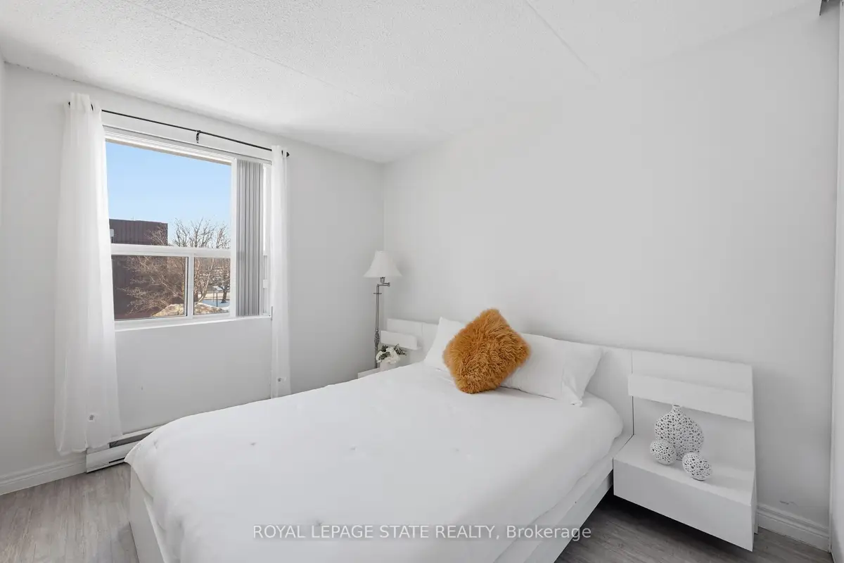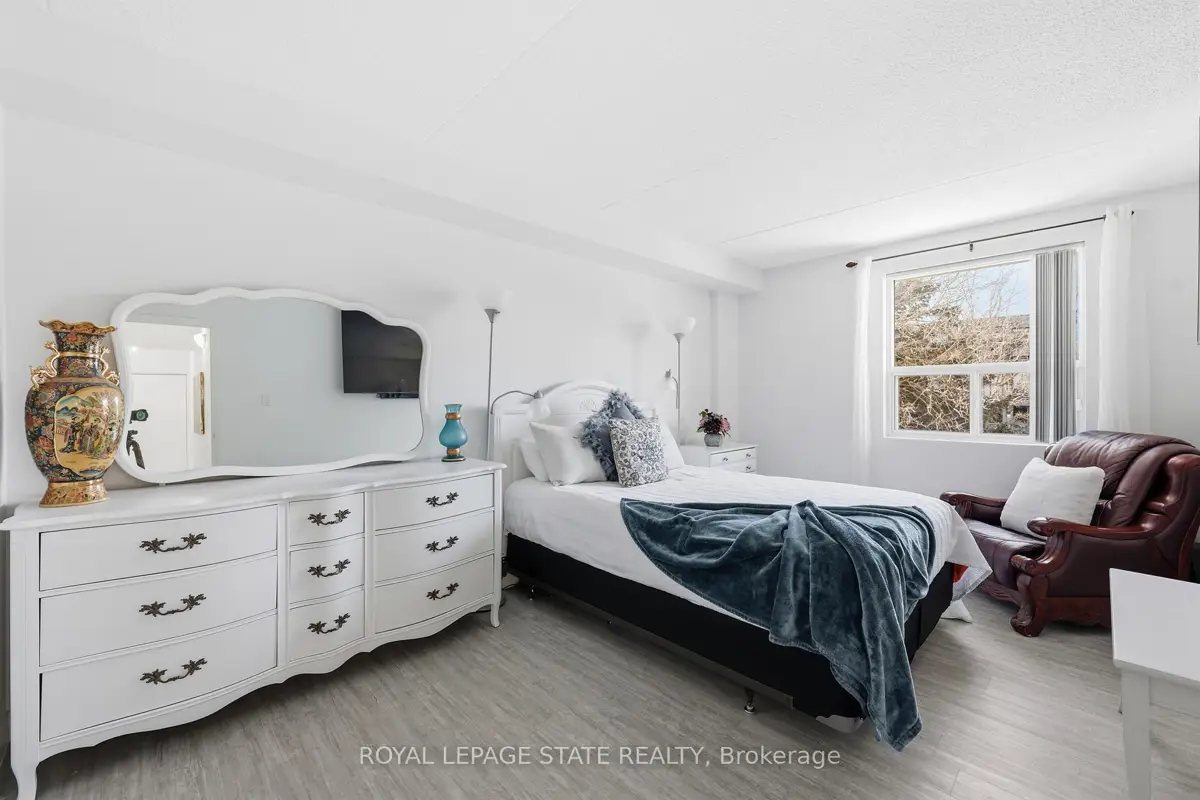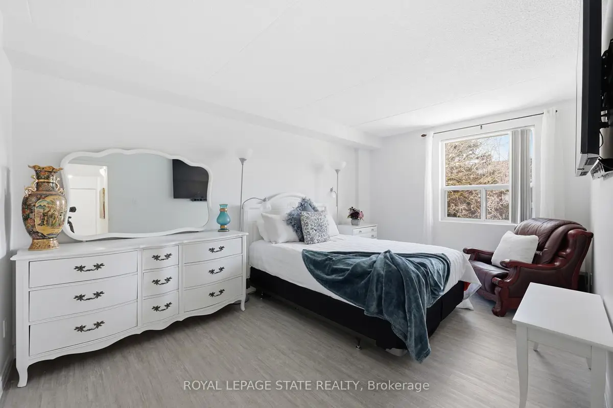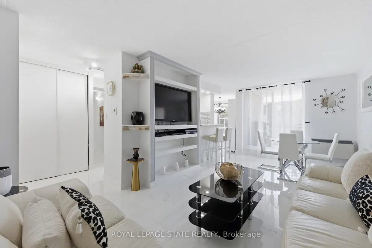 Welcome to 75 Silvercreek Parkway North, Unit 308, located in Guelph's West End.This bright, spacious, and updated corner unit is move-in ready. The two-bedroom, one-bathroom home features a fresh neutral paint palette and carpet-free living with luxurious vinyl plank and tile flooring throughout. The large living room leads to a private covered balcony with sliding doors, and large windows in every room provide ample natural light. The kitchen offers a sleek, contemporary design with pot lights, abundant cabinetry, a beautiful tile backsplash, and recently updated appliances (2024/2025). The kitchen flows seamlessly into the dining room, perfect for family dinners and entertaining.The primary bedroom includes a walk-in closet, and this unit offers plenty of storage throughout. For added convenience, the unit is located near the elevator and includes a dedicated parking spot close to the building entrance, along with ample visitor parking.Ideally situated near schools, parks, restaurants, the Hanlon Parkway, and the University of Guelph, this property is an excellent opportunity for first-time buyers, young families, investors or those looking to downsize.This is one unit not to be missed!