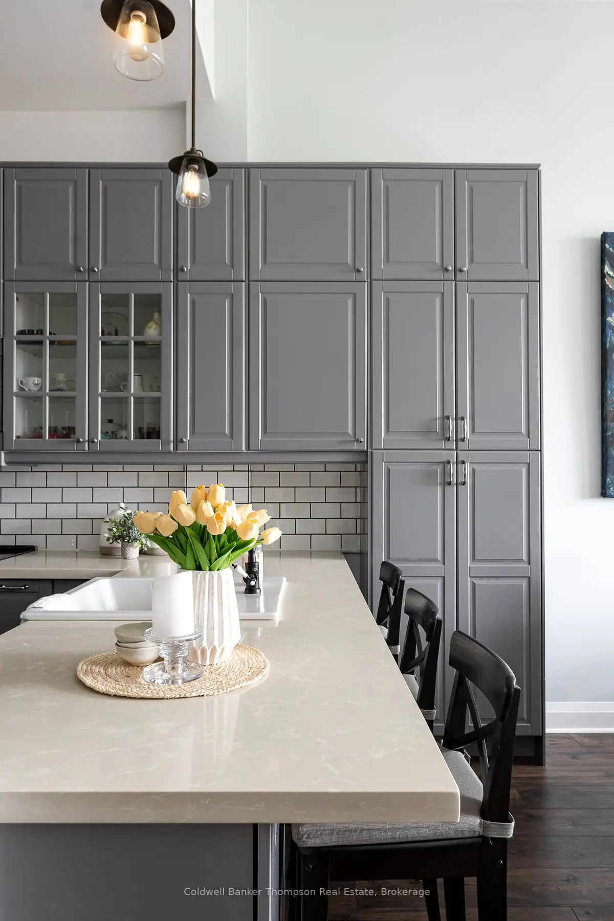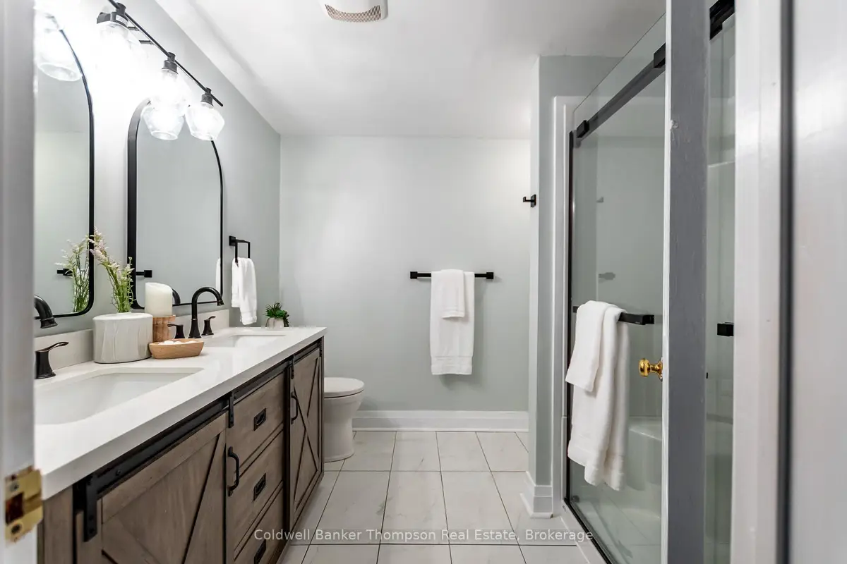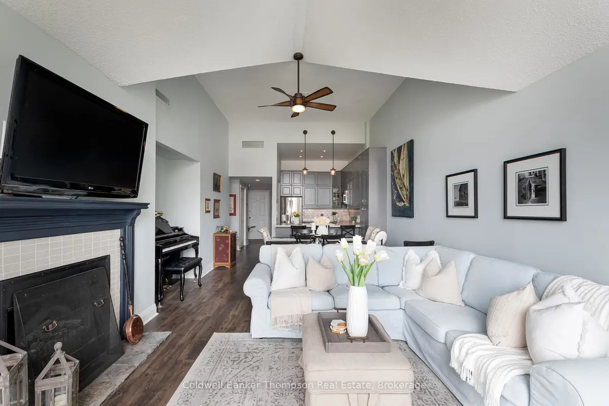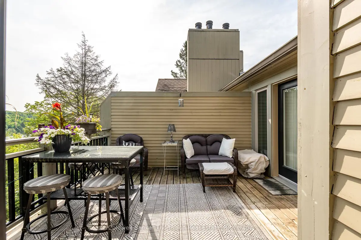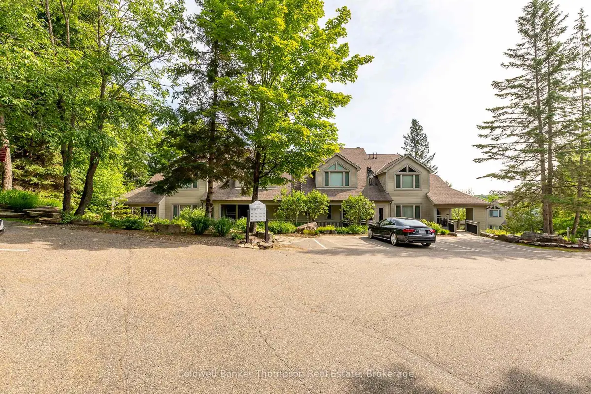 Welcome to this beautifully reimagined 2-bedroom, 2-bathroom condo that captures the essence of refined modern living. Inside you're greeted by gleaming hardwood floors that flow through most of the space, a warm invitation to explore this thoughtfully renovated gem. The kitchen is a masterpiece of design, featuring soaring ceilings that lend an airy feel, along with tall, extensive cabinetry for abundant storage. The details shine with stainless steel appliances, a dishwasher with a custom matching cupboard exterior, and sleek quartz countertops, offering both beauty and durability. A farmhouse bib-style sink and antique-inspired faucet hardware add a dash of vintage charm, balancing the contemporary aesthetic perfectly. The spacious, open-concept living area extends to a private balcony, accessible from both the living room and the primary bedroom suite, where you'll love relaxing with a coffee or taking in the peaceful surroundings. Each bedroom is designed with privacy and luxury in mind. The primary suite boasts ample closet space and direct access to the balcony, while the second guest bedroom offers a walk-in closet and a well-appointed 4-piece ensuite bathroom a perfect setup for visitors or as a secondary suite. Embrace the ease of condo living with every convenience within reach: renowned golf courses, thrilling ski hills, a local hospital, and plenty of shopping, dining, and other amenities just moments away. This unit is versatile, ideal for year-round living or as an off-water cottage retreat. Find yourself at home in a space where modern elegance, comfort, and convenience converge, making every day feel like a getaway.