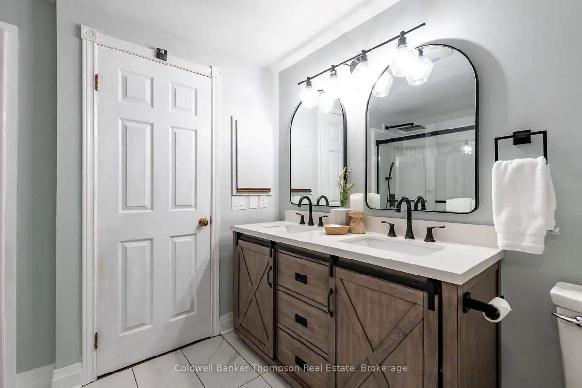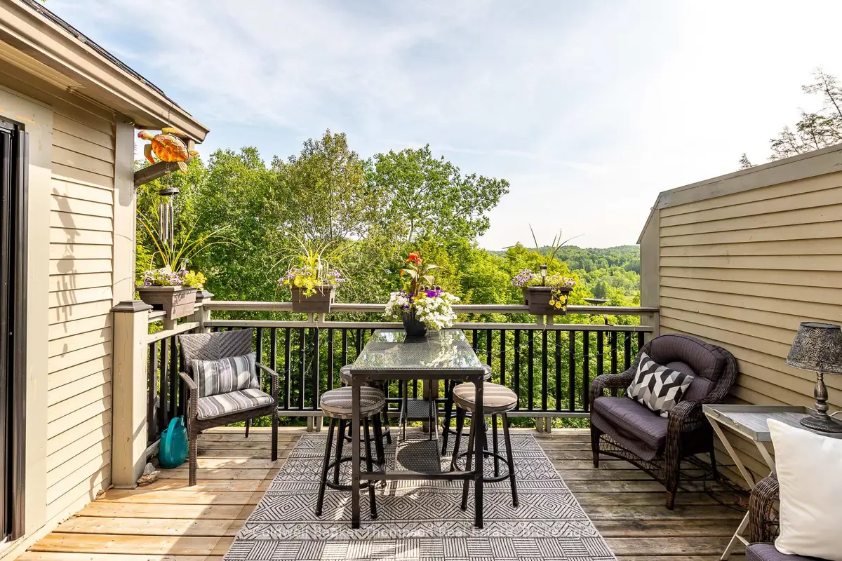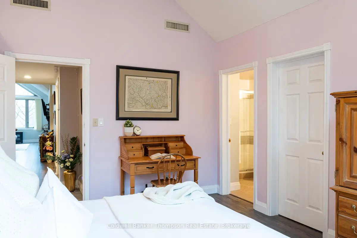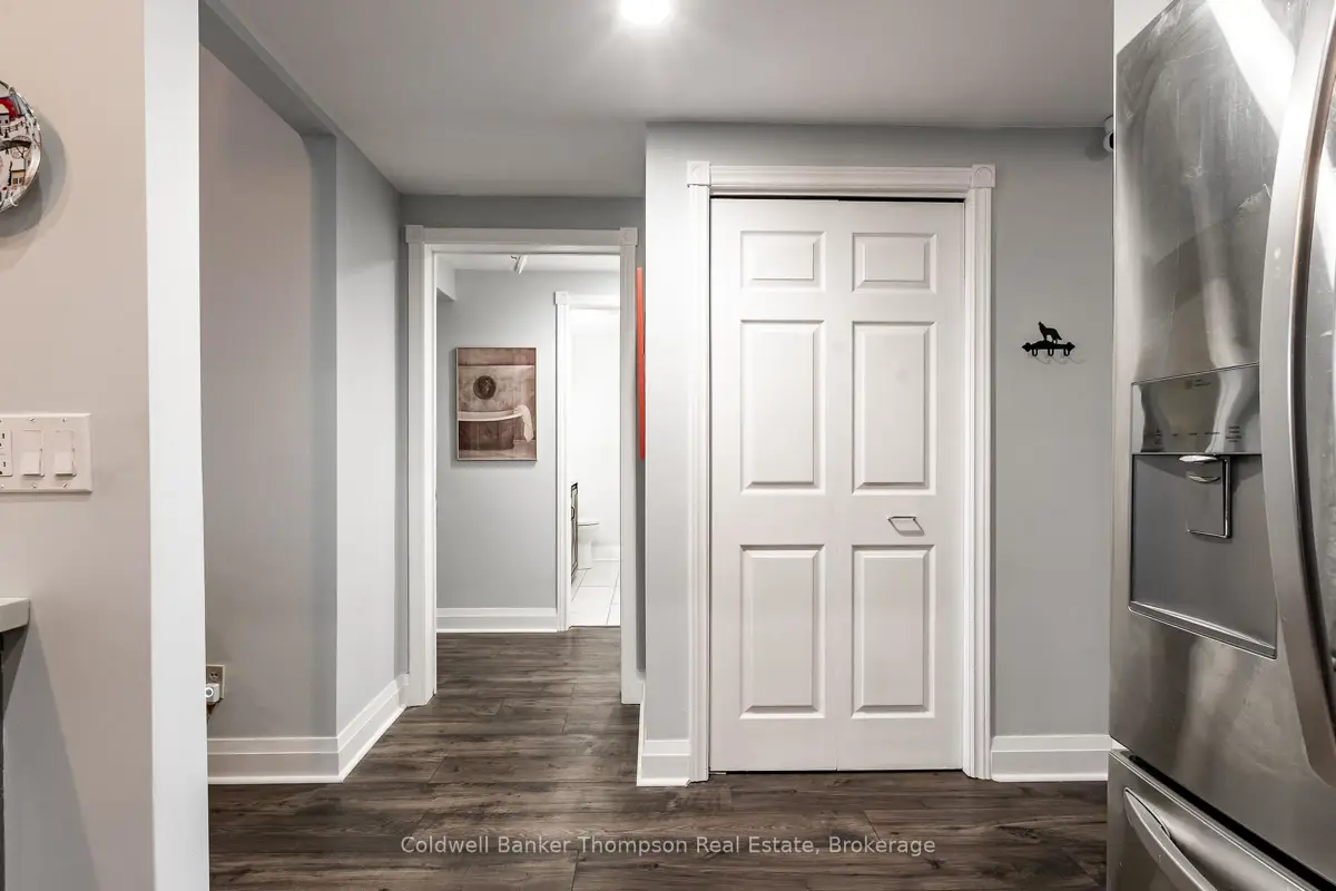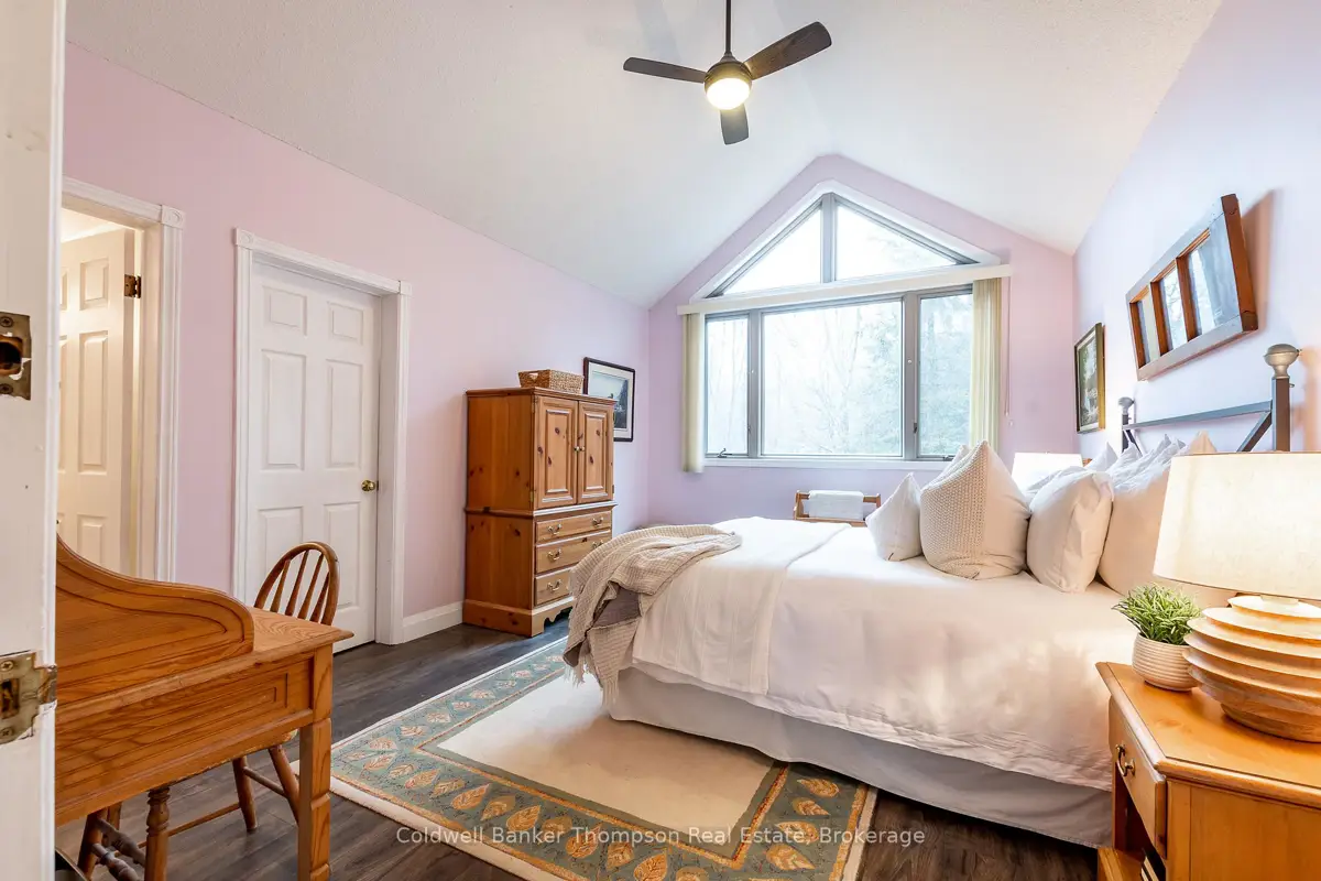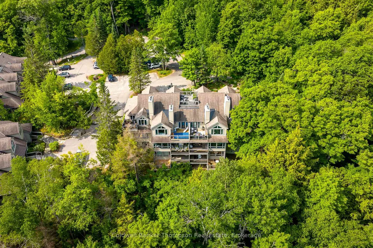 Welcome to this beautifully reimagined 2-bedroom, 2-bathroom condo that captures the essence of refined modern living. Inside you're greeted by gleaming hardwood floors that flow through most of the space, a warm invitation to explore this thoughtfully renovated gem. The kitchen is a masterpiece of design, featuring soaring ceilings that lend an airy feel, along with tall, extensive cabinetry for abundant storage. The details shine with stainless steel appliances, a dishwasher with a custom matching cupboard exterior, and sleek quartz countertops, offering both beauty and durability. A farmhouse bib-style sink and antique-inspired faucet hardware add a dash of vintage charm, balancing the contemporary aesthetic perfectly. The spacious, open-concept living area extends to a private balcony, accessible from both the living room and the primary bedroom suite, where you'll love relaxing with a coffee or taking in the peaceful surroundings. Each bedroom is designed with privacy and luxury in mind. The primary suite boasts ample closet space and direct access to the balcony, while the second guest bedroom offers a walk-in closet and a well-appointed 4-piece ensuite bathroom a perfect setup for visitors or as a secondary suite. Embrace the ease of condo living with every convenience within reach: renowned golf courses, thrilling ski hills, a local hospital, and plenty of shopping, dining, and other amenities just moments away. This unit is versatile, ideal for year-round living or as an off-water cottage retreat. Find yourself at home in a space where modern elegance, comfort, and convenience converge, making every day feel like a getaway.