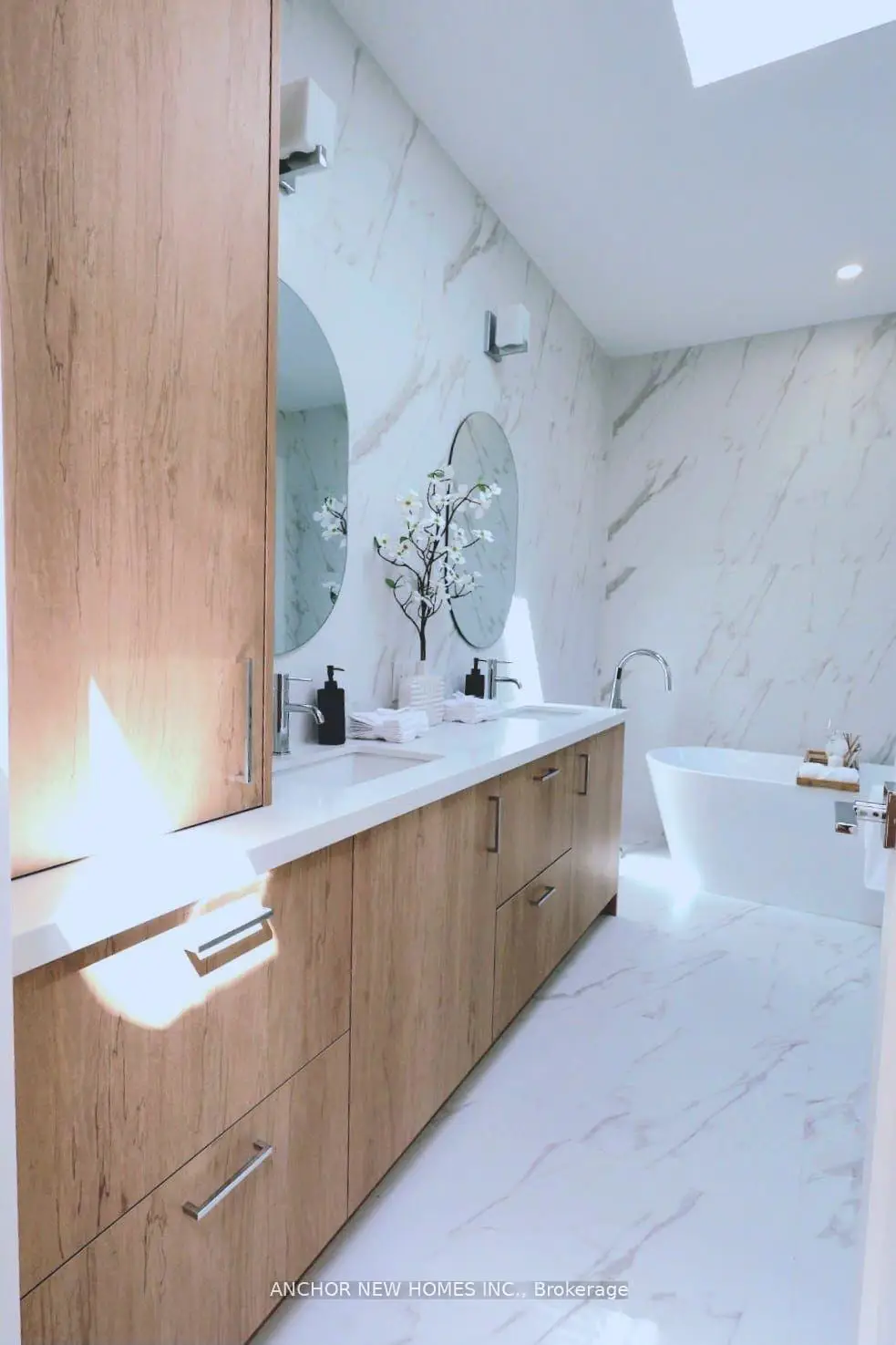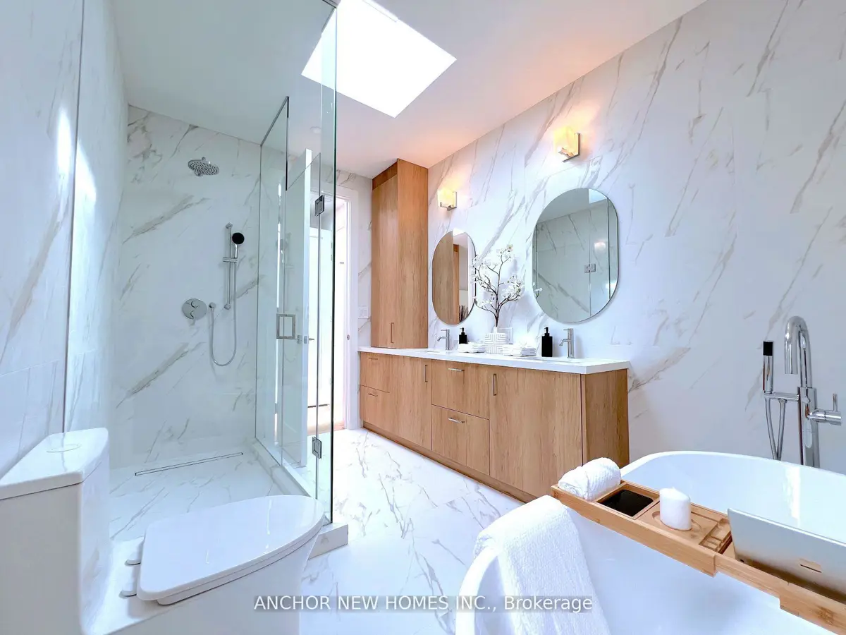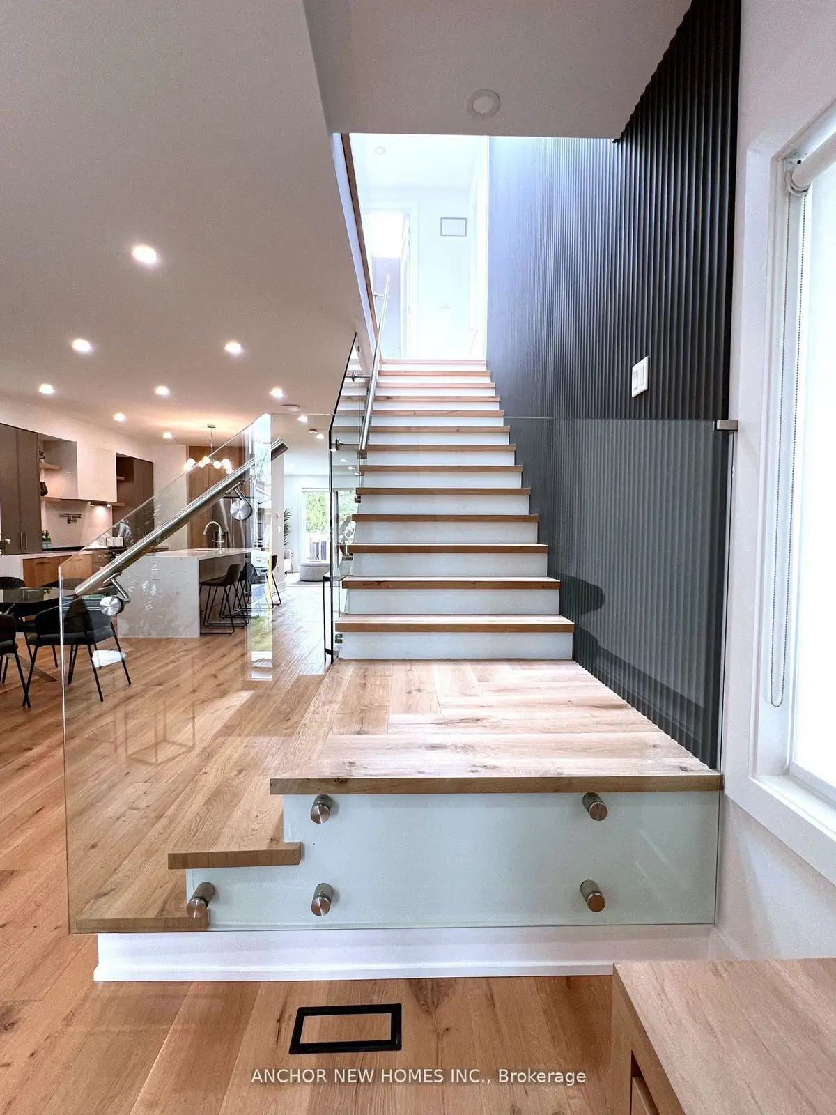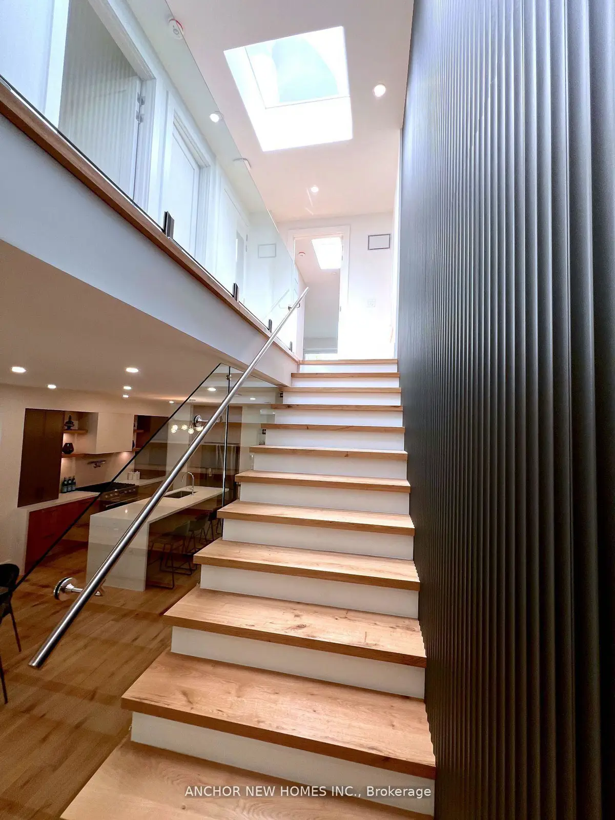 Welcome to this beautifully designed modern detached home with a legal basement suite, offering over. 3,200 sq.ft. of luxurious living space (incl. bsmt) in one of East York's desirable neighbourhoods! Set on a generous lot with private parking, this 3+1 bed, 4 bath home blends contemporary design with everyday functionality. The open-concept main floor showcases wide-plank engineered hardwood floors, pot lighting throughout, and a roughed-in surround sound system. A sophisticated smart home setup with 3 cameras & video doorbell provides modern convenience and peace of mind.The dining area flows into a chef's kitchen featuring s/s appliances, 6-burner gas stovetop with pot filler, waterfall quartz island, custom countertops & sleek cabinetry - perfect for entertaining. The family room offers a gas fireplace feature wall, large windows & walk-out to the backyard deck. The living room is enhanced by a beautifully designed staircase with striking custom wall paneling, creating a sophisticated focal point.The oak staircase with glass railing is accented by a floor-to-ceiling feature wall & two skylights above, flooding the space with natural light. Upstairs, three additional skylights create an airy, sun-filled atmosphere. The serene primary suite features custom closets, acoustic wood paneling, skylight w/ roof access & a spa-inspired 5-pc ensuite with soaker tub & double vanity. A stylish 2nd bath & laundry area complete this level.The legal basement suite offers high ceilings, large windows, a modern kitchen w/ s/s appliances & breakfast bar, sep. entrance, in-suite laundry & dedicated hydro meter - ideal for rental income or extended family. Outside features a private backyard w/ deck, BBQ hookup & shed, plus potential for a future garden suite (City services in place). Near parks, schools, shops, TTC/GO, DVP & downtown. A contemporary East York gem blending luxury, functionality & timeless design - ready to be yours!