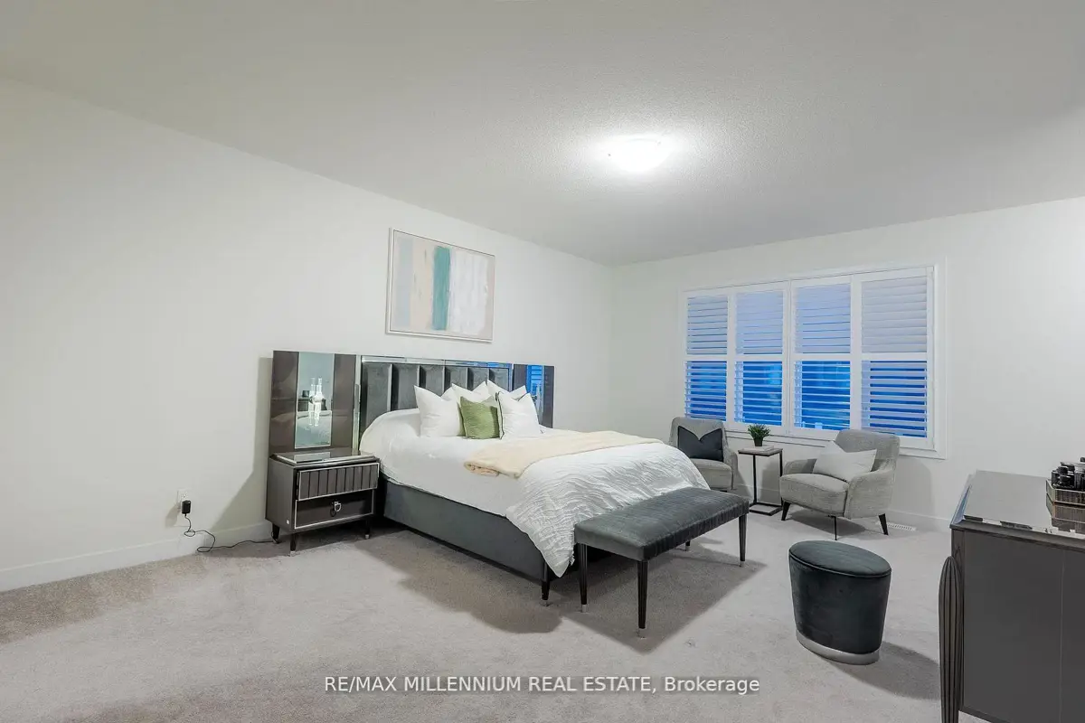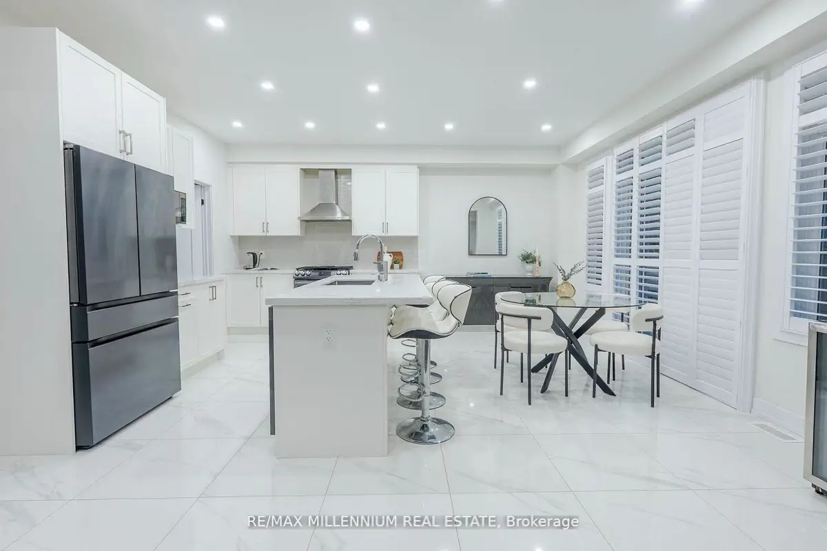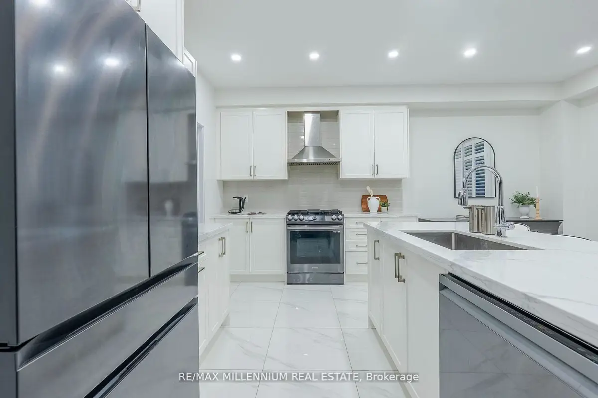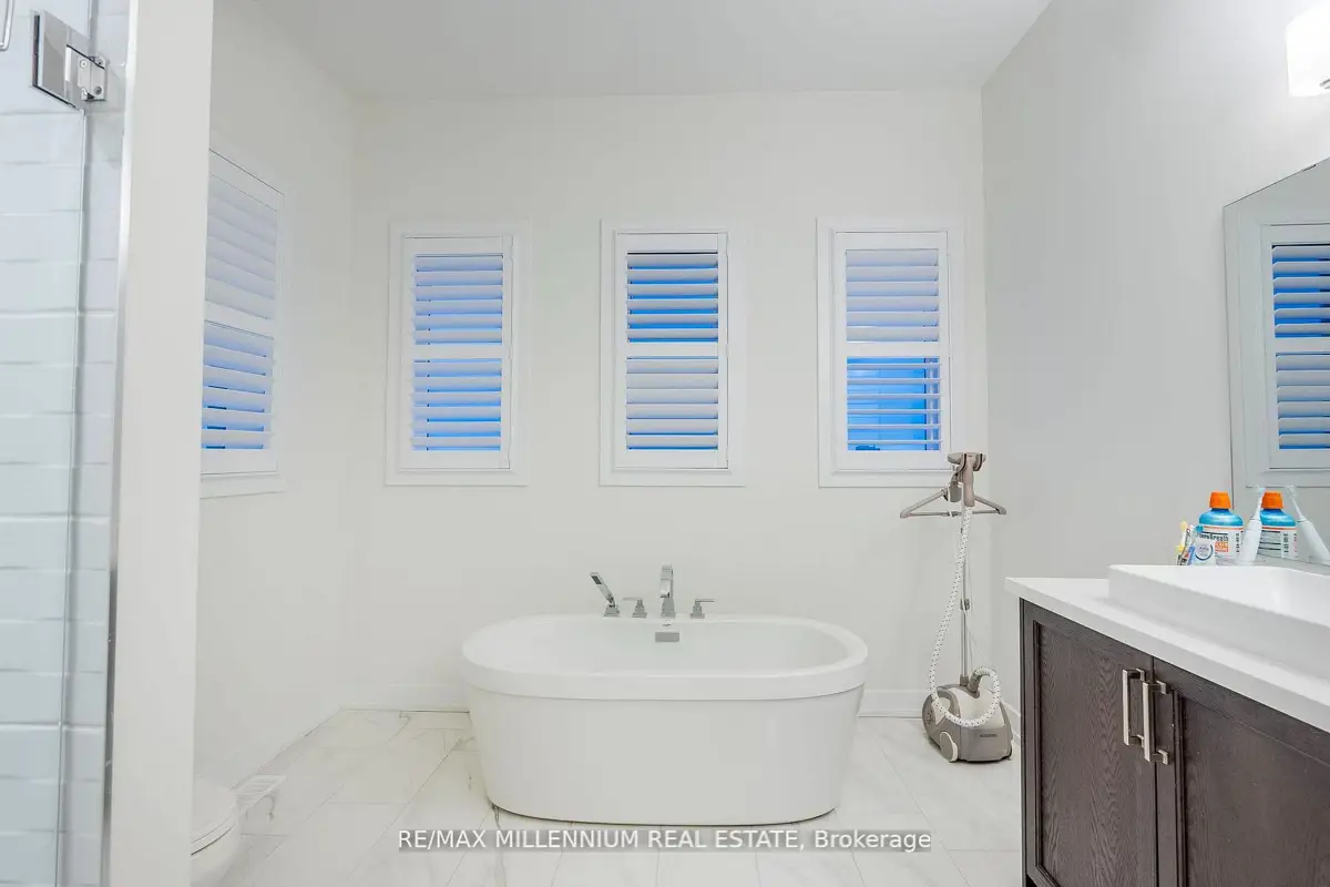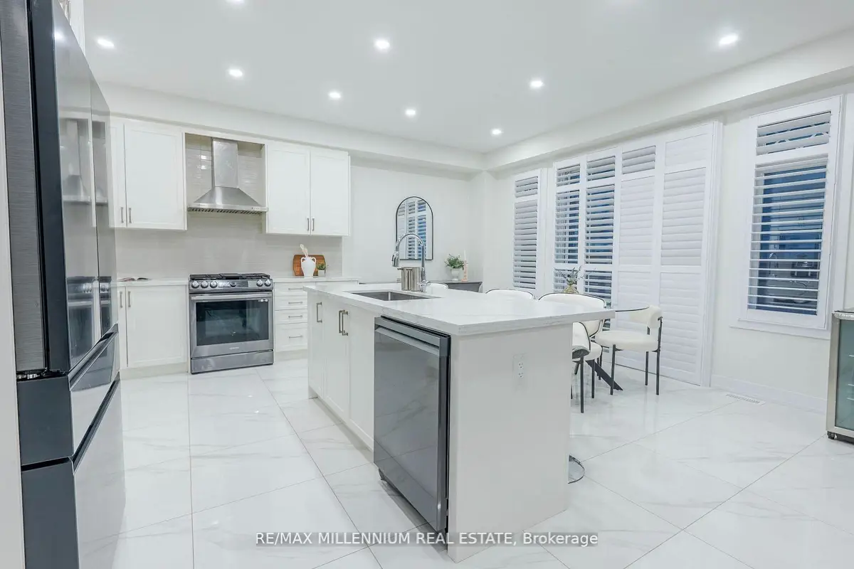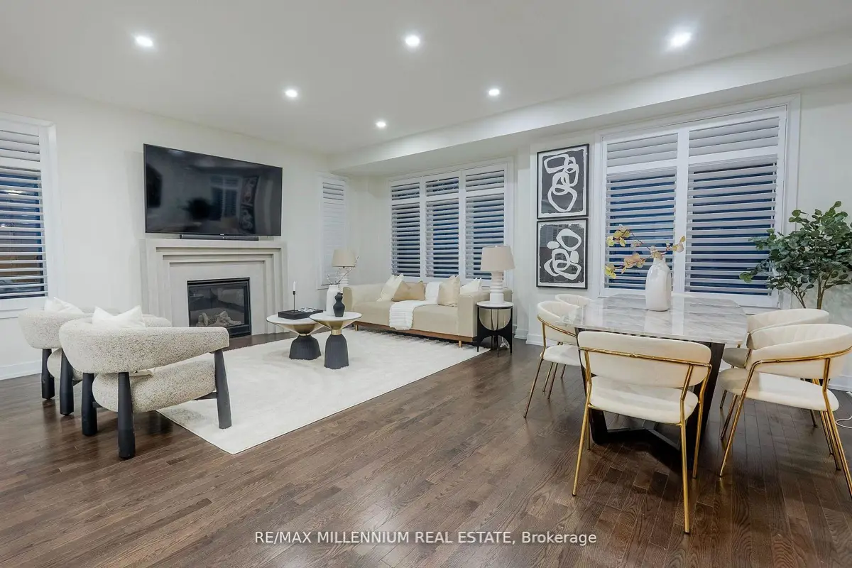 Welcome to this stunning 4-bedroom, 4-bathroom residence situated on a premium corner lot with an impressive 57.94 ft frontage, offering unobstructed, breathtaking views. This exceptional home showcases high-end finishes throughout and is designed for both elegance and everyday comfort. The open-concept main floor features soaring ceilings, rich hardwood flooring, and a gas fireplace that anchors the space with warmth and style. The gorgeous eat-in kitchen is a true showpiece, complete with an elegant backsplash, brand new stainless steel appliances, and a bright breakfast area finished with marble flooring. The breakfast area offers direct walkout access to the fully fenced backyard, perfect for entertaining or family enjoyment.Upstairs, the luxurious primary retreat impresses with a spa-like 5-piece ensuite, two closets, including a large walk-in closet, offering ample storage and comfort. Each of the remaining generously sized bedrooms features its own private ensuite, providing convenience and privacy for family and guests alike. Additional highlights include parking for up to 6 vehicles, a double-car garage, and an abundance of natural light thanks to the home's elevated position and corner-lot exposure. Ideally located just 1 minute to Highway 407 and 5 minutes to Costco, major big-box stores, restaurants, and banks. Close to school bus routes, public transit, and only minutes' drive to Ontario Tech University-this home offers an unbeatable combination ofluxury, location, and lifestyle. A rare opportunity to own a refined home with spectacular views, generous frontage, and unmatched accessibility.