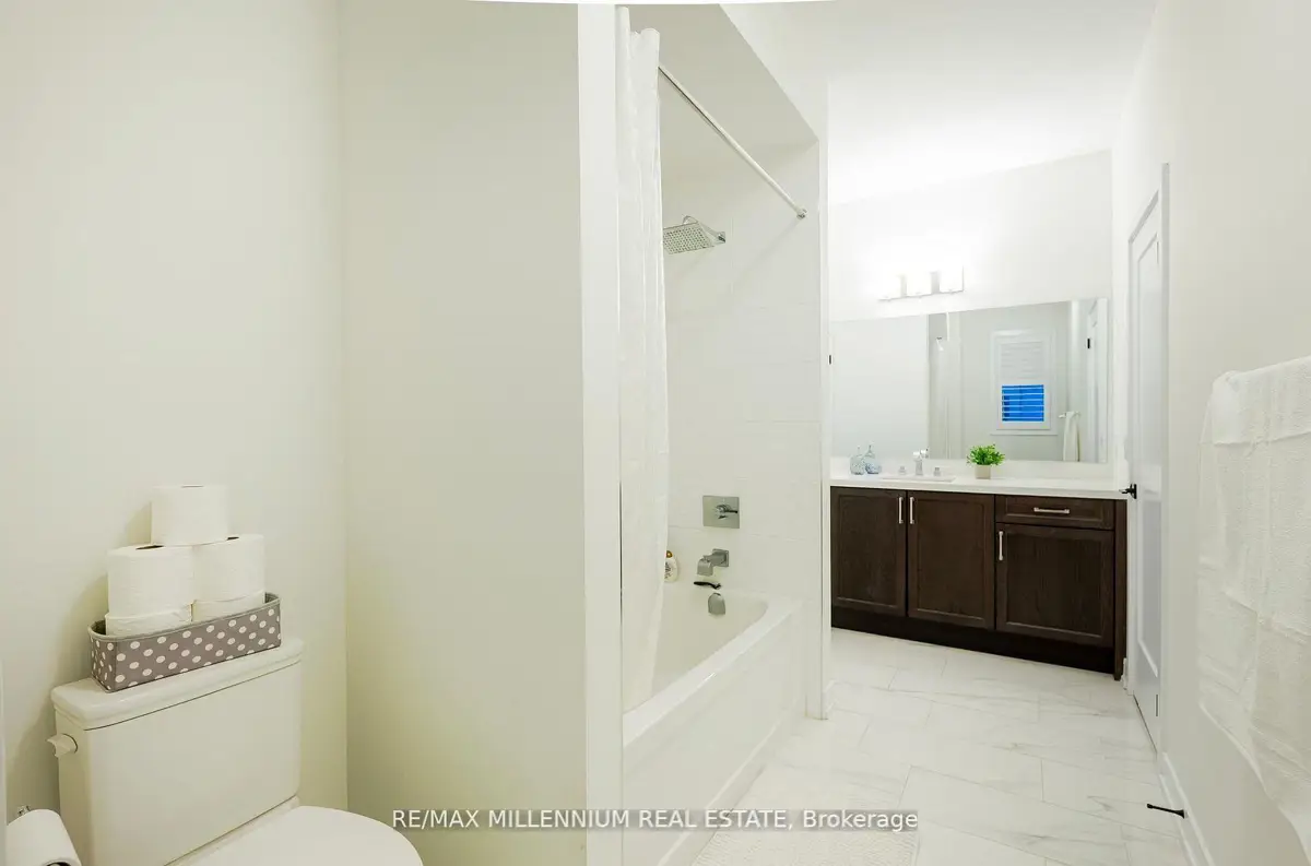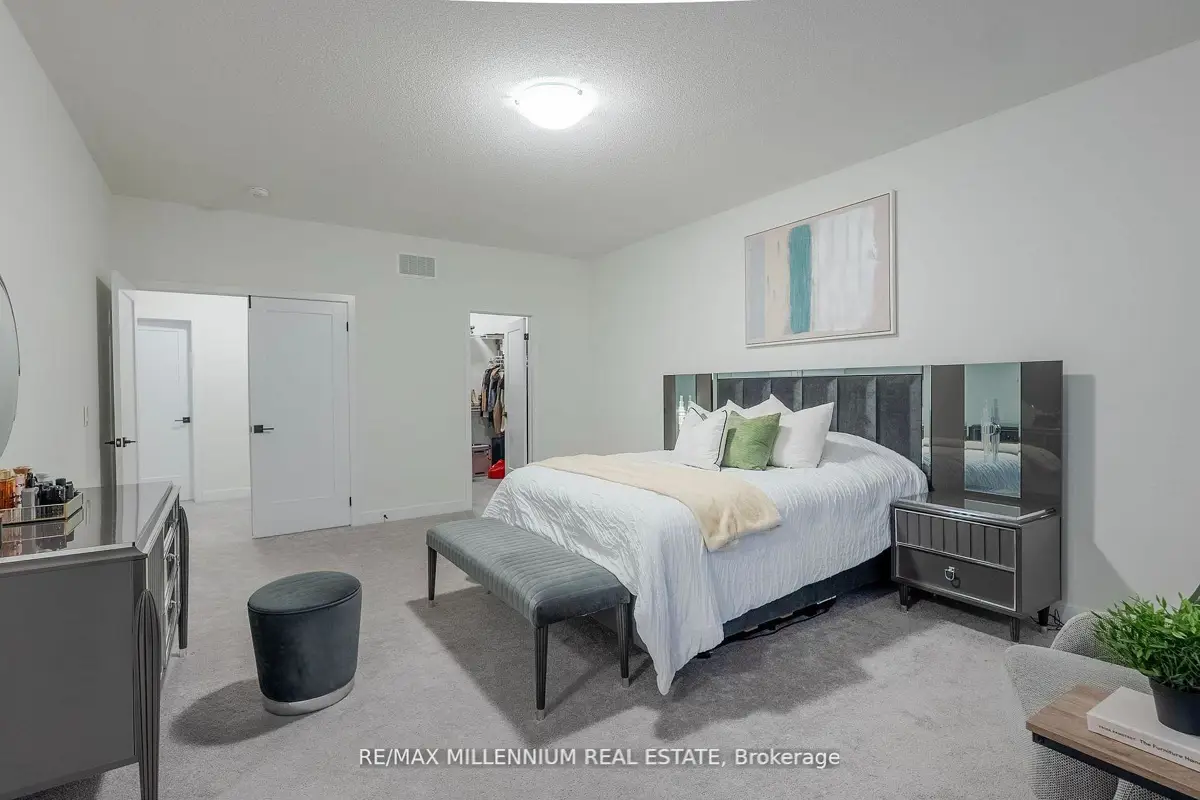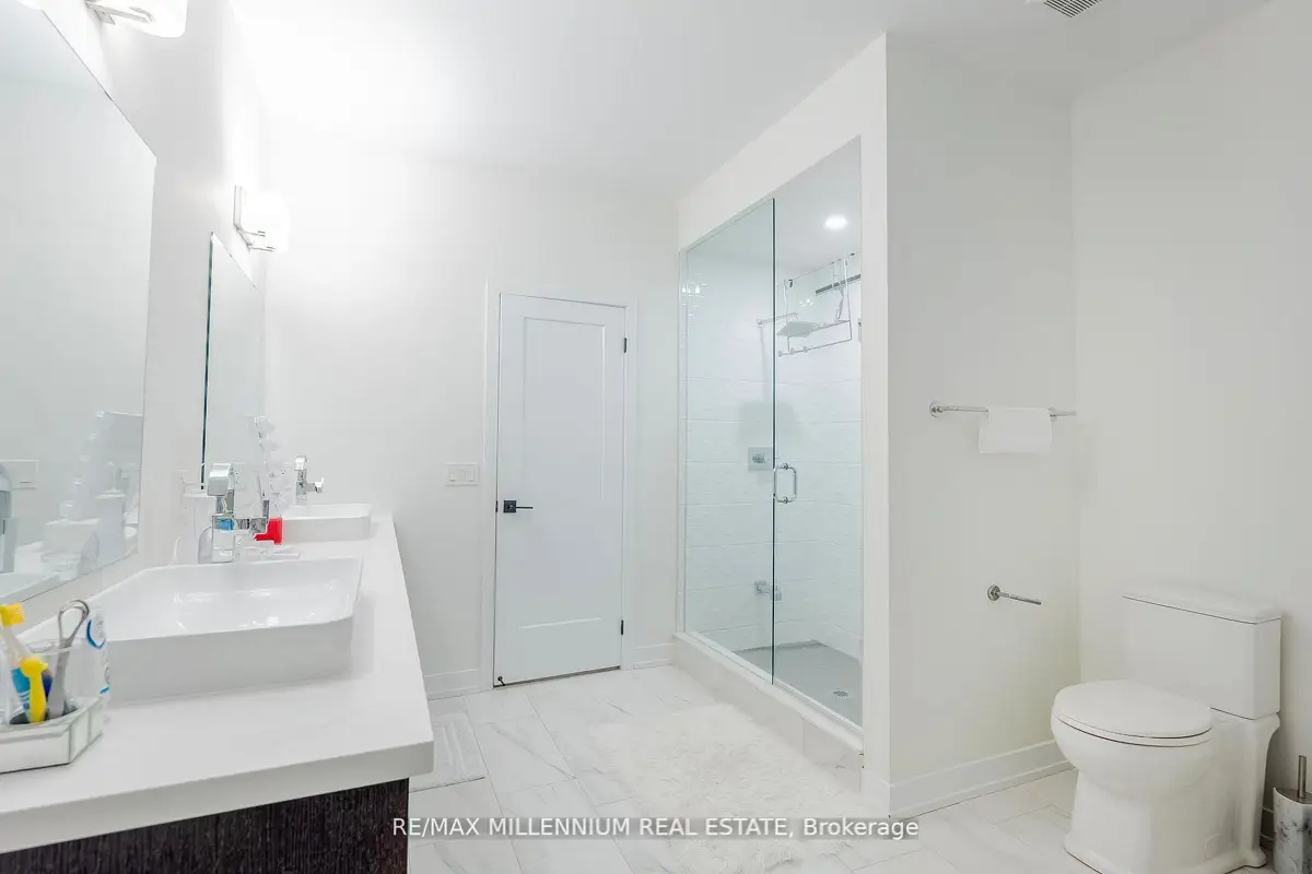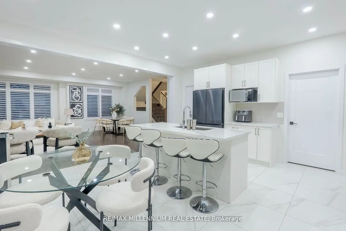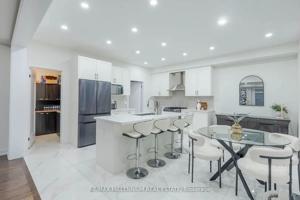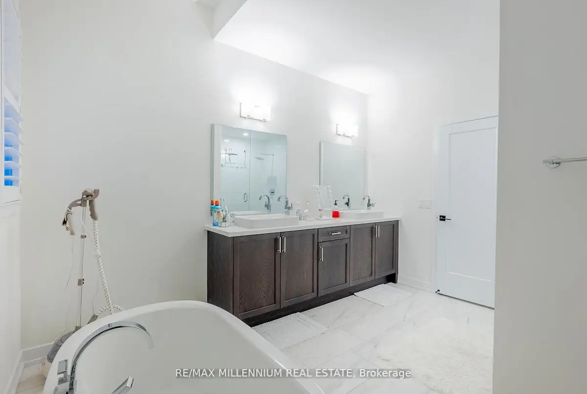 Welcome to this stunning 4-bedroom, 4-bathroom residence situated on a premium corner lot with an impressive 57.94 ft frontage, offering unobstructed, breathtaking views. This exceptional home showcases high-end finishes throughout and is designed for both elegance and everyday comfort. The open-concept main floor features soaring ceilings, rich hardwood flooring, and a gas fireplace that anchors the space with warmth and style. The gorgeous eat-in kitchen is a true showpiece, complete with an elegant backsplash, brand new stainless steel appliances, and a bright breakfast area finished with marble flooring. The breakfast area offers direct walkout access to the fully fenced backyard, perfect for entertaining or family enjoyment.Upstairs, the luxurious primary retreat impresses with a spa-like 5-piece ensuite, two closets, including a large walk-in closet, offering ample storage and comfort. Each of the remaining generously sized bedrooms features its own private ensuite, providing convenience and privacy for family and guests alike. Additional highlights include parking for up to 6 vehicles, a double-car garage, and an abundance of natural light thanks to the home's elevated position and corner-lot exposure. Ideally located just 1 minute to Highway 407 and 5 minutes to Costco, major big-box stores, restaurants, and banks. Close to school bus routes, public transit, and only minutes' drive to Ontario Tech University-this home offers an unbeatable combination ofluxury, location, and lifestyle. A rare opportunity to own a refined home with spectacular views, generous frontage, and unmatched accessibility.