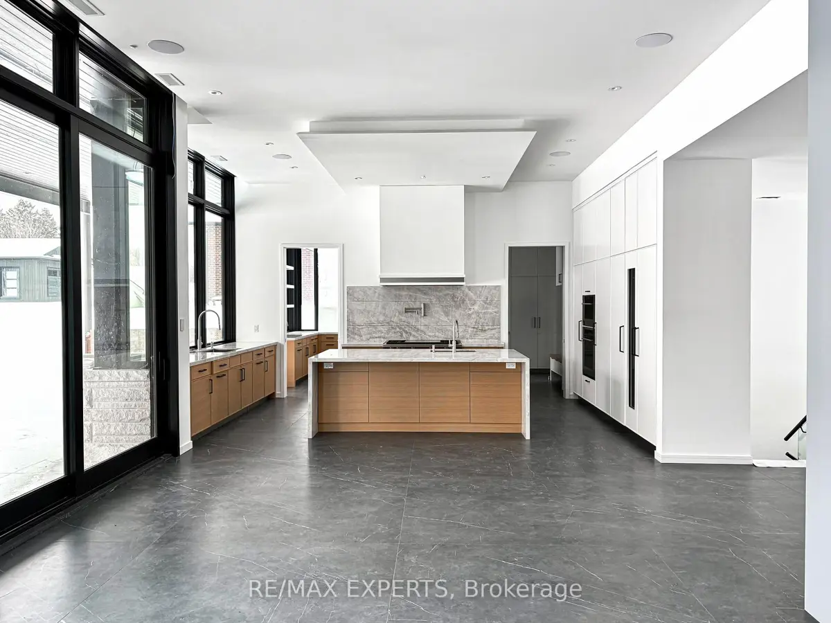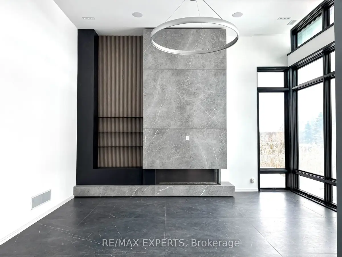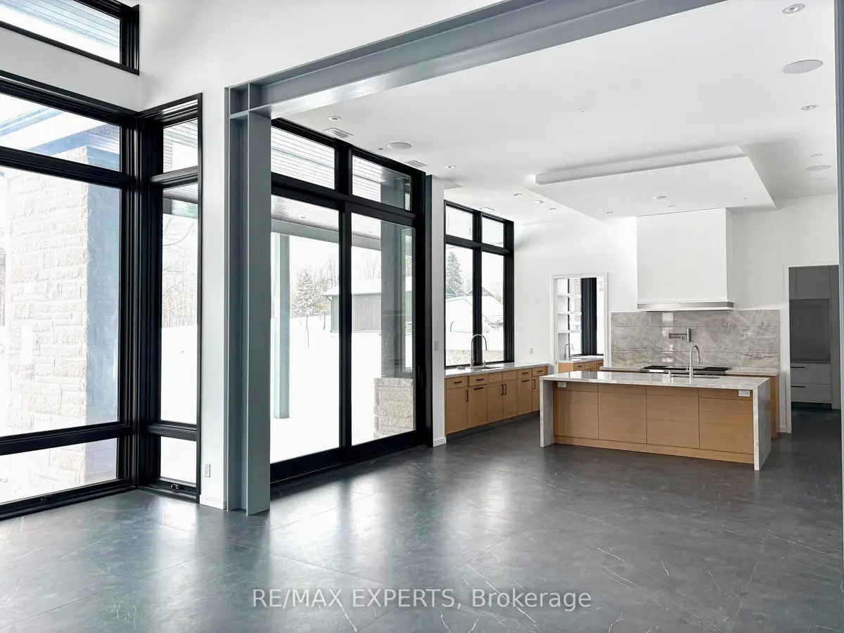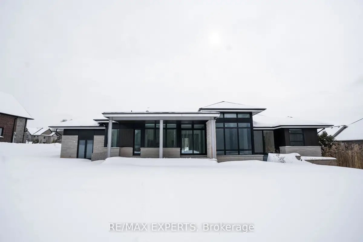 Welcome to 130 Dale Crescent, a modern bungalow set on a private 1.5-acre lot backing onto a protected forest. Large floor-to-ceiling windows, vaulted features, and heated tile surfaces create a bright, open, and calming atmosphere throughout the main living spaces.The kitchen offers high-end built-in appliances, quartz surfaces, custom cabinetry, and anisland designed for both cooking and gathering. A separate walk-out pantry adds freezer andcooling drawers for extra storage and prep. Warm hardwood, solid core doors, built-in speakers, and smart-home wiring complement the home's clean, contemporary feel. A spacious family room with a gas fireplace, exposed steel accents, and views into the forest creates an inviting place to unwind. A bright front office with southern exposure provides a comfortable work space.The bedroom layout provides privacy and comfort, including a generous primary suite with a 5-piece bath, walk-in closet, and a private walk-out. Additional bedrooms are positioned near their own bathrooms, offering flexibility for family or guests.The walk-up lower level adds nearly 3,000 sq. ft. of extra living space, featuring a recreation area, wet bar, gym space, bedroom with walk-in closet, and a bathroom designed to accommodate a steam shower - along with storage areas and a future theatre room space. A covered patio extends the living space outdoors with heating rough-ins, wiring for A/V, and abuilt-in BBQ area. A full-home generator, hydronic in-floor heating, and high-efficiency mechanical systems add ease and comfort year-round. All set in a quiet estate enclave just minutes to Hwy 400, nearby golf, local farm markets, and Bradford's everyday amenities.