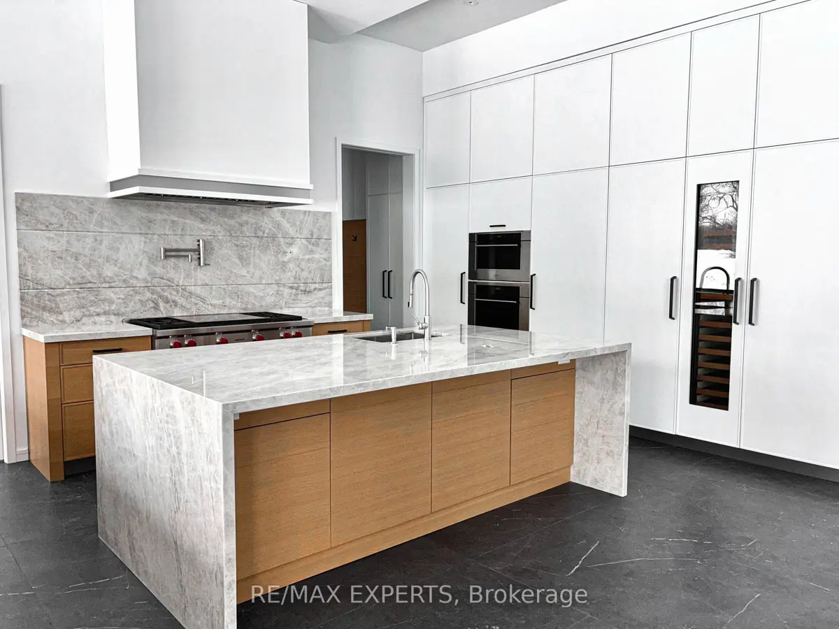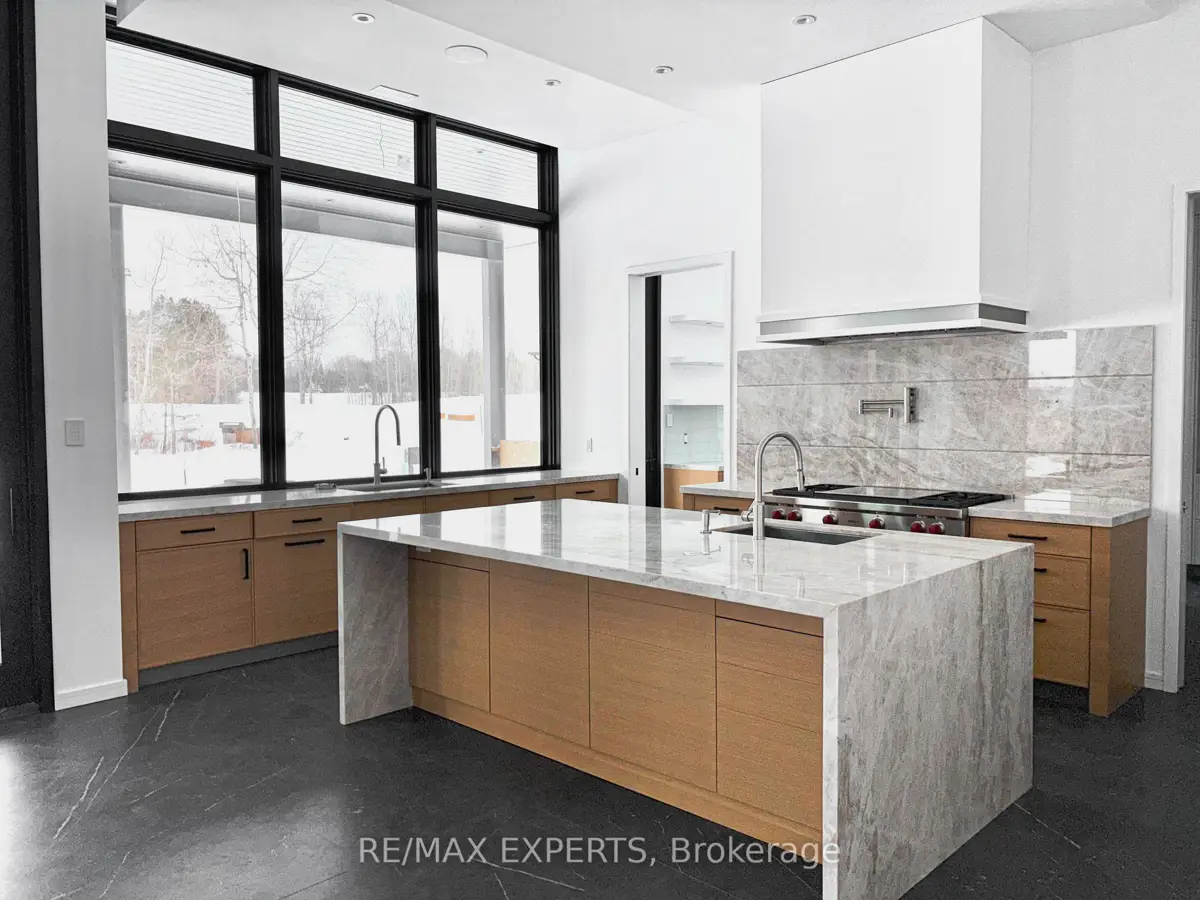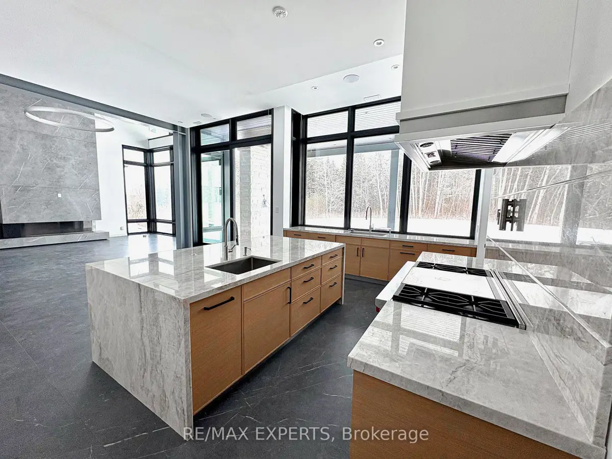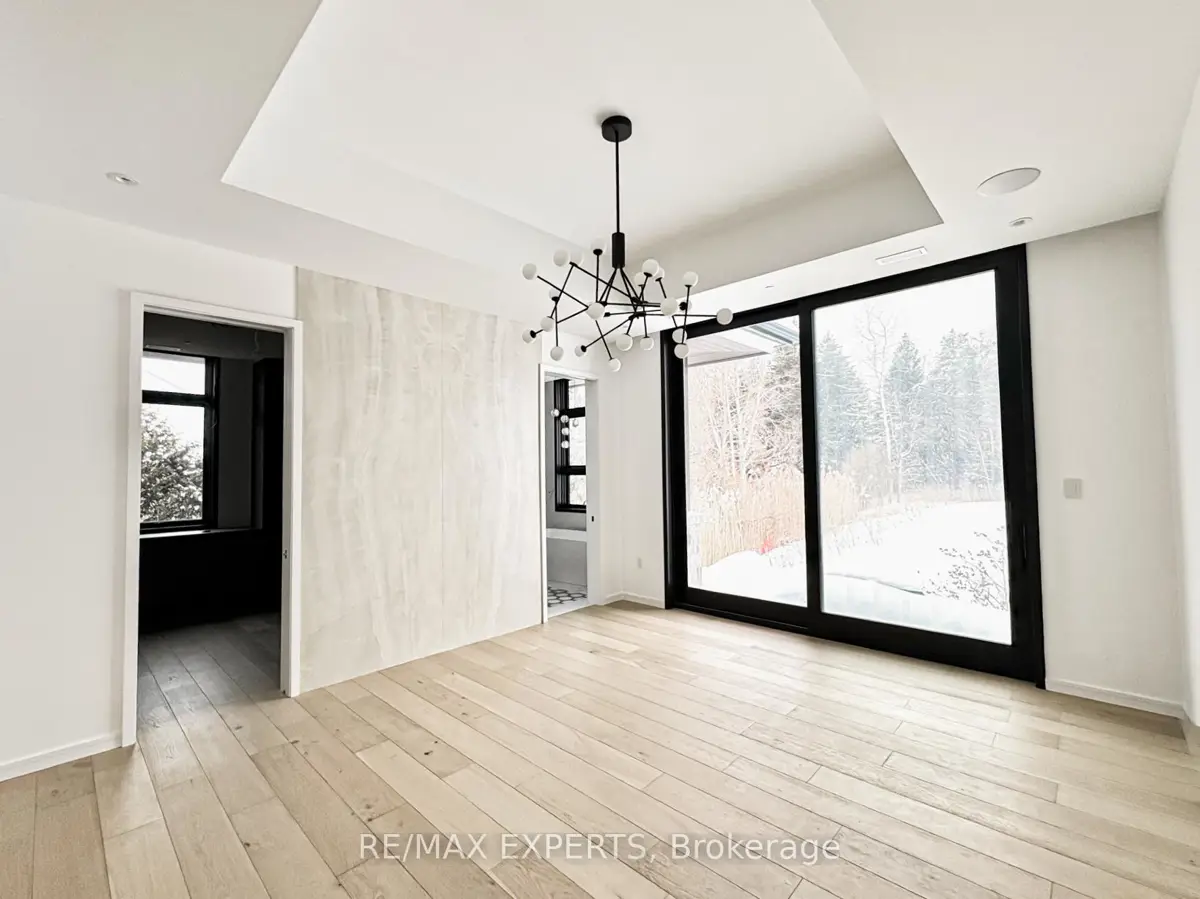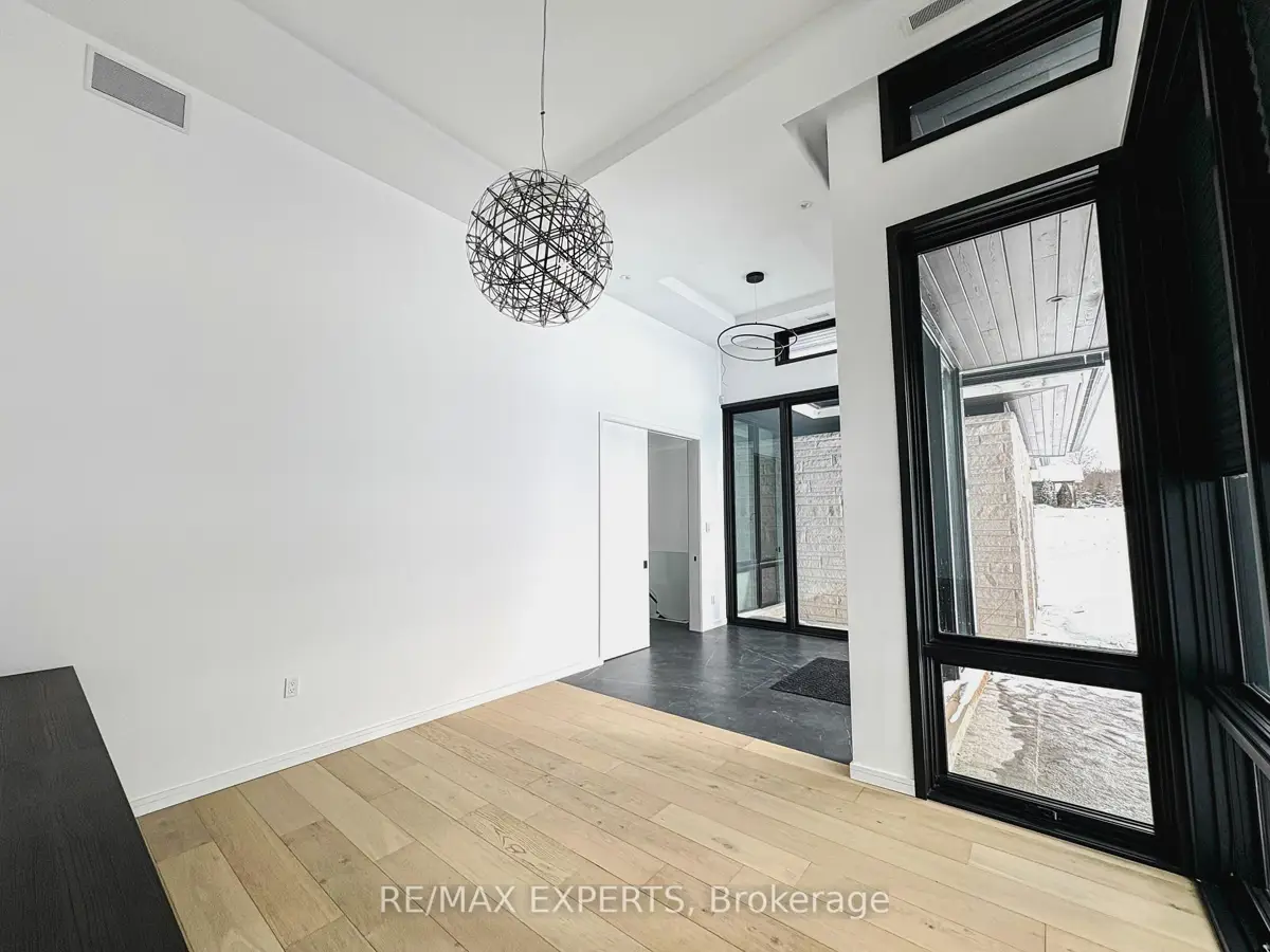 Welcome to 130 Dale Crescent, a modern bungalow set on a private 1.5-acre lot backing onto a protected forest. Large floor-to-ceiling windows, vaulted features, and heated tile surfaces create a bright, open, and calming atmosphere throughout the main living spaces.The kitchen offers high-end built-in appliances, quartz surfaces, custom cabinetry, and anisland designed for both cooking and gathering. A separate walk-out pantry adds freezer andcooling drawers for extra storage and prep. Warm hardwood, solid core doors, built-in speakers, and smart-home wiring complement the home's clean, contemporary feel. A spacious family room with a gas fireplace, exposed steel accents, and views into the forest creates an inviting place to unwind. A bright front office with southern exposure provides a comfortable work space.The bedroom layout provides privacy and comfort, including a generous primary suite with a 5-piece bath, walk-in closet, and a private walk-out. Additional bedrooms are positioned near their own bathrooms, offering flexibility for family or guests.The walk-up lower level adds nearly 3,000 sq. ft. of extra living space, featuring a recreation area, wet bar, gym space, bedroom with walk-in closet, and a bathroom designed to accommodate a steam shower - along with storage areas and a future theatre room space. A covered patio extends the living space outdoors with heating rough-ins, wiring for A/V, and abuilt-in BBQ area. A full-home generator, hydronic in-floor heating, and high-efficiency mechanical systems add ease and comfort year-round. All set in a quiet estate enclave just minutes to Hwy 400, nearby golf, local farm markets, and Bradford's everyday amenities.