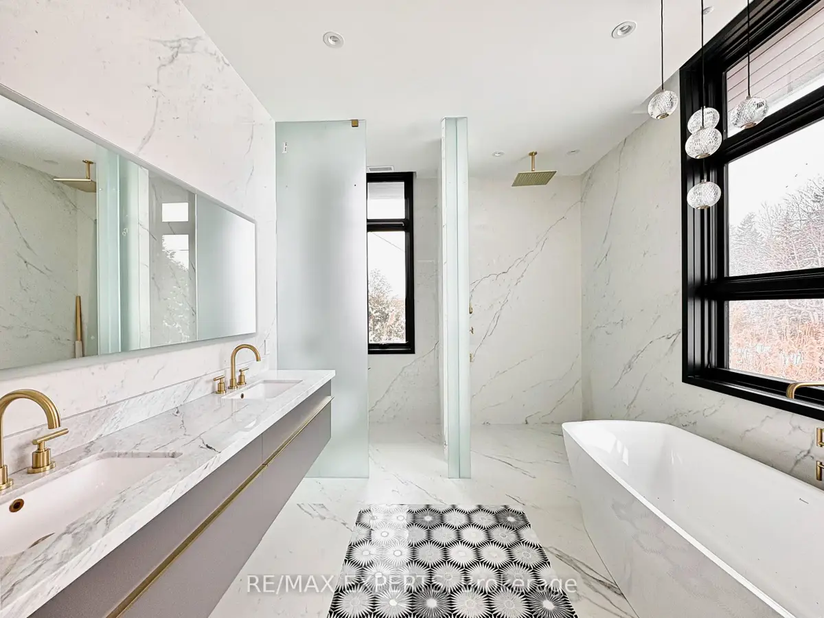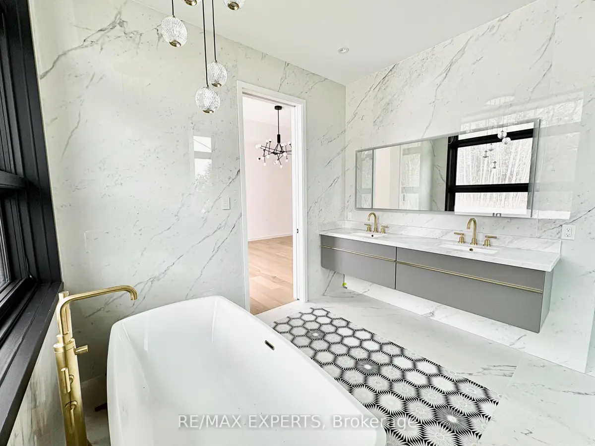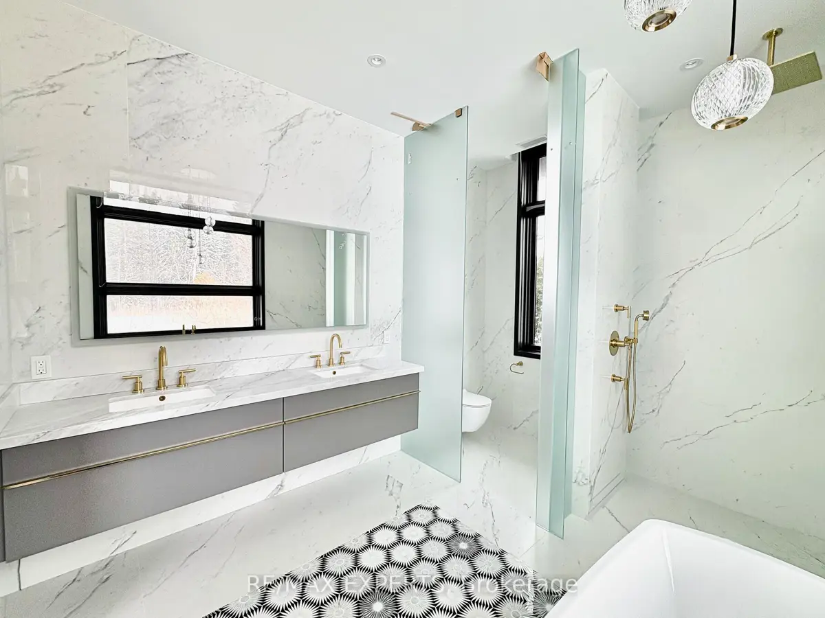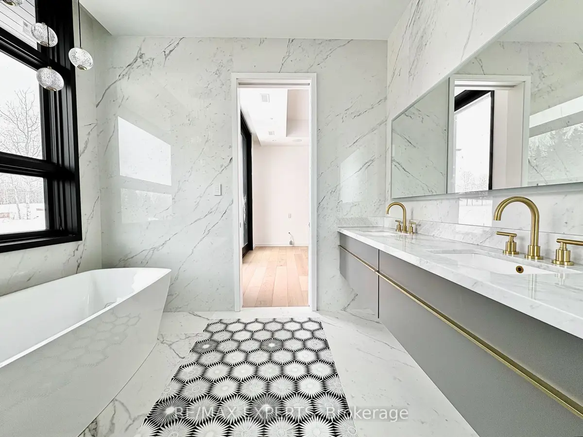 Welcome to 130 Dale Crescent, a modern bungalow set on a private 1.5-acre lot backing onto a protected forest. Large floor-to-ceiling windows, vaulted features, and heated tile surfaces create a bright, open, and calming atmosphere throughout the main living spaces.The kitchen offers high-end built-in appliances, quartz surfaces, custom cabinetry, and anisland designed for both cooking and gathering. A separate walk-out pantry adds freezer andcooling drawers for extra storage and prep. Warm hardwood, solid core doors, built-in speakers, and smart-home wiring complement the home's clean, contemporary feel. A spacious family room with a gas fireplace, exposed steel accents, and views into the forest creates an inviting place to unwind. A bright front office with southern exposure provides a comfortable work space.The bedroom layout provides privacy and comfort, including a generous primary suite with a 5-piece bath, walk-in closet, and a private walk-out. Additional bedrooms are positioned near their own bathrooms, offering flexibility for family or guests.The walk-up lower level adds nearly 3,000 sq. ft. of extra living space, featuring a recreation area, wet bar, gym space, bedroom with walk-in closet, and a bathroom designed to accommodate a steam shower - along with storage areas and a future theatre room space. A covered patio extends the living space outdoors with heating rough-ins, wiring for A/V, and abuilt-in BBQ area. A full-home generator, hydronic in-floor heating, and high-efficiency mechanical systems add ease and comfort year-round. All set in a quiet estate enclave just minutes to Hwy 400, nearby golf, local farm markets, and Bradford's everyday amenities.