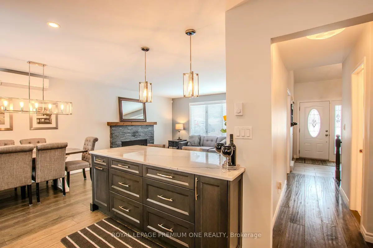 Welcome to this inviting family home in the sought-after North Ward, ideally situated on a quiet cul-de-sac close to Lightfoot Trail, transit, and the lake. Fully updated, this home features an open-concept main floor with a custom kitchen complete with under-cabinet lighting, quartz countertops, and hardwood floors. Freshly painted main floor rooms create a bright, refreshed feel throughout. The cozy living room with fireplace overlooks the kitchen and dining area, making it perfect for everyday living and entertaining. A convenient main floor bedroom offers flexibility as a primary or guest suite, and each level of the home includes a full bathroom. The second floor features two spacious bedrooms and a beautifully renovated 3-piece bathroom. All upper windows have been recently replaced. The fully finished basement provides additional living space, while the beautifully landscaped yard offers a walkout deck with a 5-year-old 4-6 person hot tub-perfect for relaxing or entertaining. Truly move-in ready.