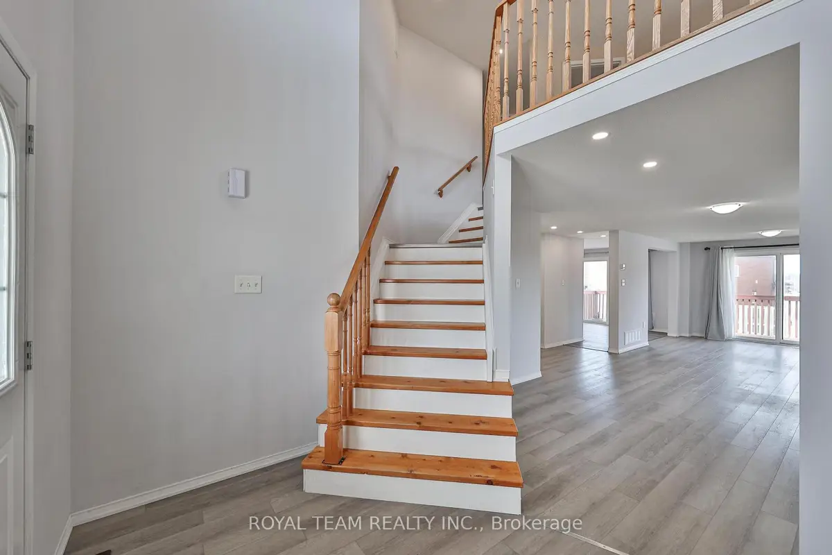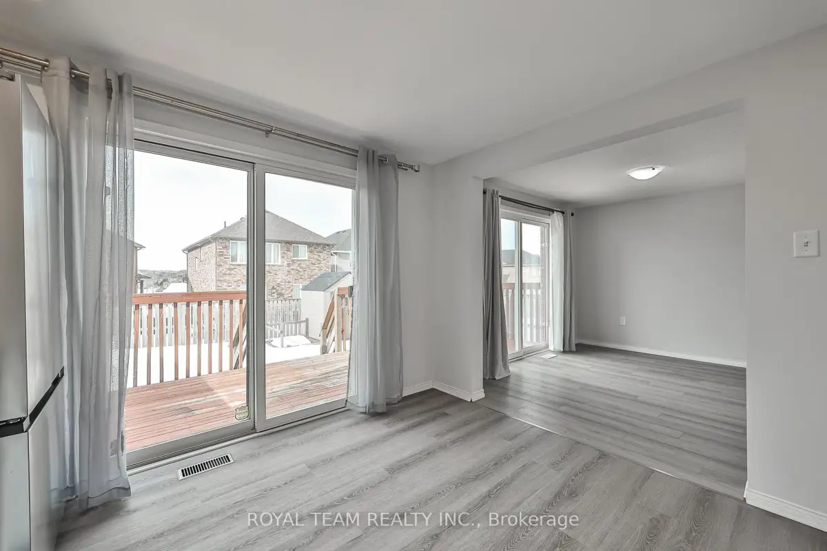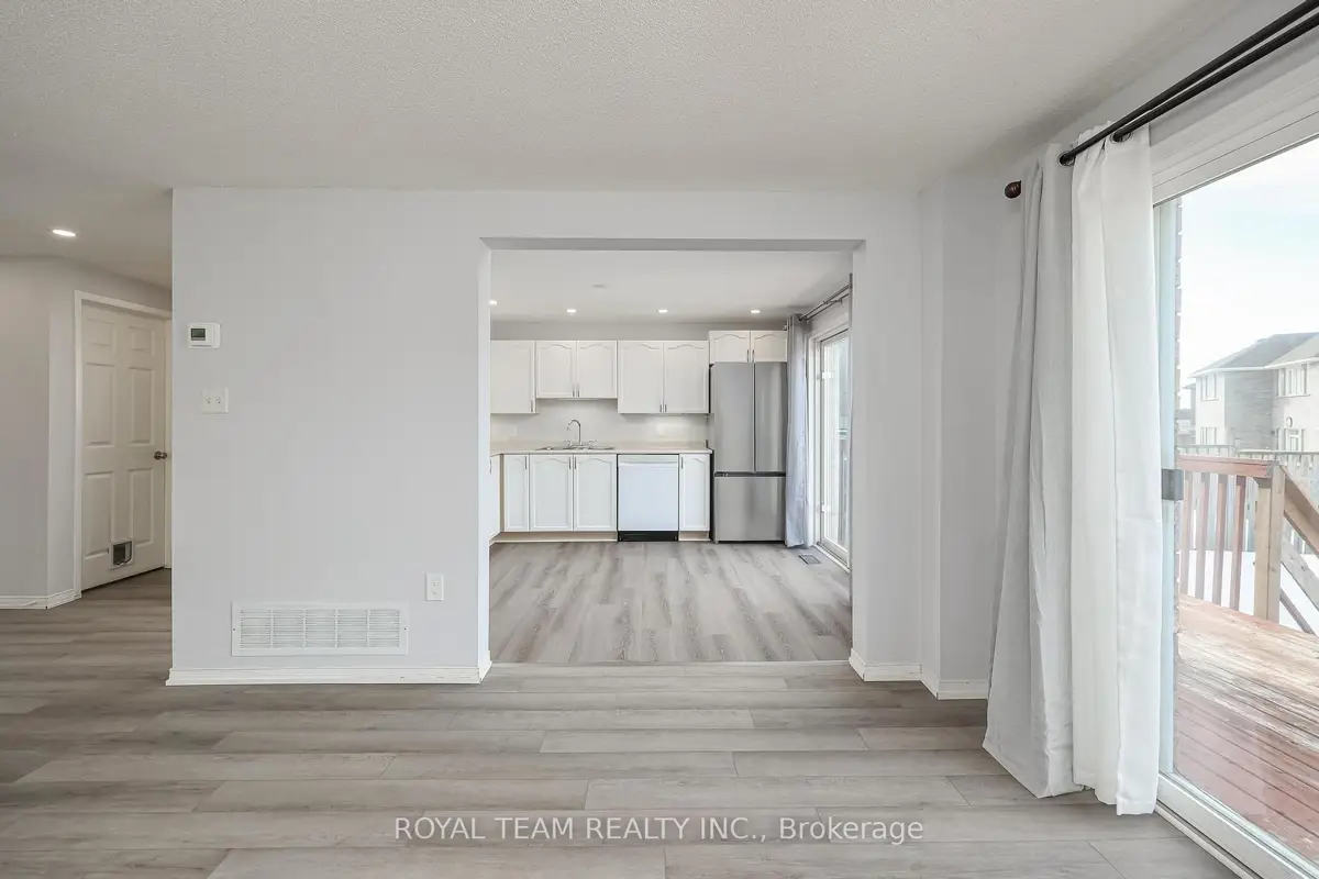 Welcome to this bright and sun-filled home, originally designed by the builder as a four-bedroom layout. The home features three spacious bedrooms plus an open-concept loft that caneasily be converted into a fourth bedroom. The large primary bedroom includes a private 4-piece ensuite.The open-concept main floor offers a functional layout with combined living and dining areas,perfect for everyday living and entertaining. Enjoy two walkouts to a large deck from both thekitchen and living room, creating seamless indoor-outdoor living. Modern grey vinyl flooring runs throughout the main and second floors. The bright basementwith pot lights features vinyl flooring, a separate room that can be used as an additionalbedroom, and a 3-piece bathroom, providing excellent flexible space for extended family orguests.Additional features include main floor laundry, a spacious garage, and a driveway accommodating two cars. The positioning of neighbouring homes allows for a clear and open viewof the backyard.Fantastic location close to public transit, GO Train, schools, parks, the lake, shopping, andother everyday amenities.