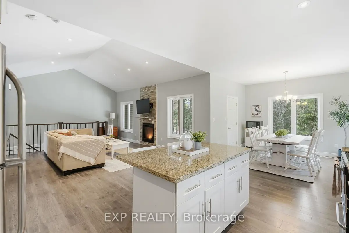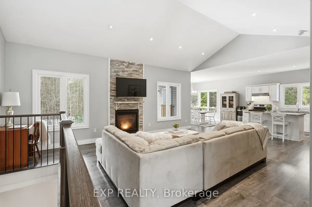 Welcome to 2516 Irish Line in Coldwater - a stunning country retreat set on over 2.6 private acres, offering the perfect blend of comfort, space, and natural beauty. This charming home welcomes you with a classic wrap-around porch, ideal for enjoying peaceful mornings and quiet evenings surrounded by nature. Inside, soaring cathedral ceilings create an airy and inviting atmosphere, while large windows fill the home with natural light. The thoughtfully designed kitchen features elegant granite countertops, perfect for everyday living and entertaining. Downstairs, the finished basement offers additional living space complete with a stylish dry bar and brand-new California shutters, making it an ideal setting for hosting family and friends. Two Napoleon fireplaces provide warmth and character throughout the home. Upstairs, the spacious primary bedroom includes a private balcony - the perfect place to unwind and take in the serene views of the surrounding property. Additional highlights include a UV and iron water filtration system, a concrete pad in the yard wired for a future hot tub, and plenty of outdoor space to enjoy the peaceful rural setting. Located just minutes from the Maclean Lake municipal boat launch at the end of the road, this property offers easy access to boating, fishing, and outdoor recreation while still providing the privacy and tranquility of country living. A rare opportunity to own a beautiful home in a truly special setting.