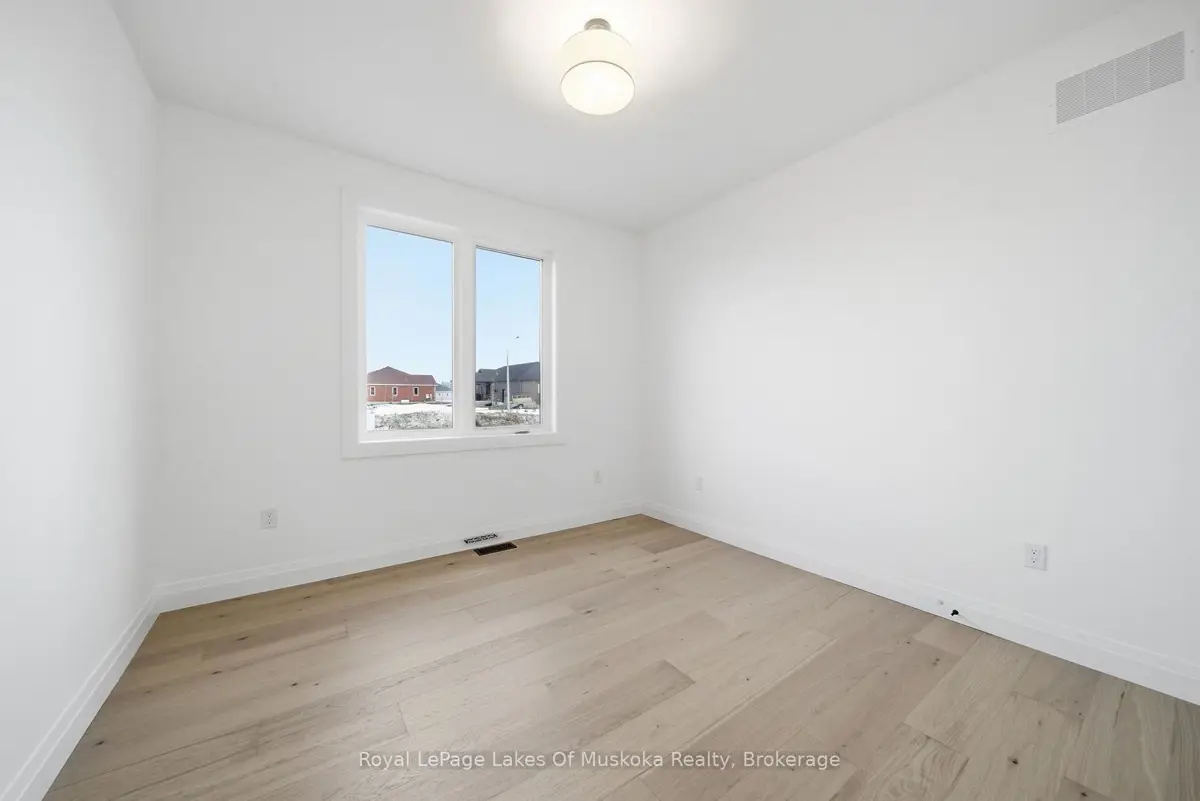 Welcome to The Meadow Acres and 19 Henry Ball Court by Jackson Developments. An estate community with executive 1/2 to 1-acre lots and custom packages to choose from. Backed by Tarion Home Warranty this full stone and brick with timber and shake accent home has many custom features for your dream home in the beautiful sought after community of Warminster. Minutes from amenities in Orillia, Costco, Cavana Spa, The Ktchn or Braestone Golf Club. With magnificent views backing onto trees and farmland this 1,819sqft hosts 3 bedrooms. Primary ensuite consists of large walk in shower with glass enclosure, freestanding tub and large vanity with quartz countertops. Main floor bedrooms, great for families or professionals looking for an estate type home. The mudroom features laundry with built-in cabinetry. 9-foot main ceilings throughout with 14-foot vaulted ceiling in the main living area. Natural gas Napoleon linear fireplace with custom surround. Custom designed kitchen with 9 island, and bathroom cabinetry with solid quartz counters throughout. Engineered hardwood throughout all main living areas and bedrooms, and quality modern tile selections for bathrooms, showers and mudroom areas. Pot lights and modern lighting fixtures throughout. Stained oak staircase. This builder spares no expense also including a large covered back concrete porch, soffit pot lights in the front and rear yard, fully sodded yard, basement a full 8 height poured foundation. Town water, septic, gas and high speed. The garage features 12 ceiling heights and suitable for 3 vehicles, great for car hoist or extra storage. Pollard windows and doors and premium insulated garage doors with openers. This gorgeous Build is complete and ready for immediate possession. Property will be fully sodded front and back.