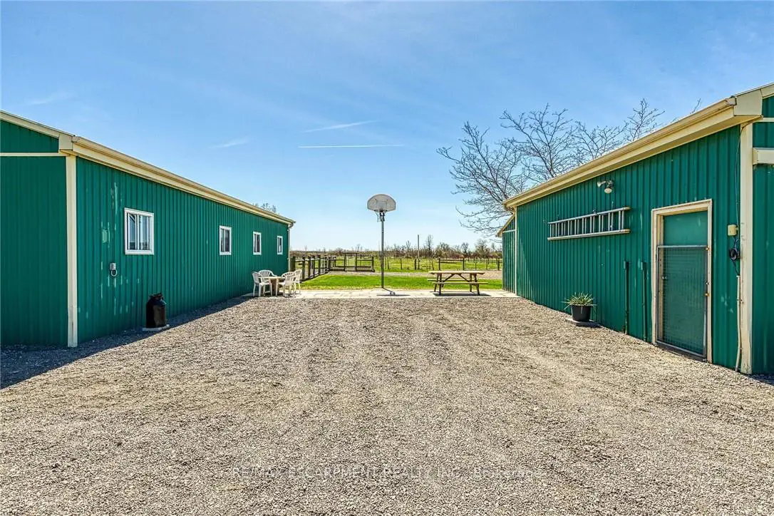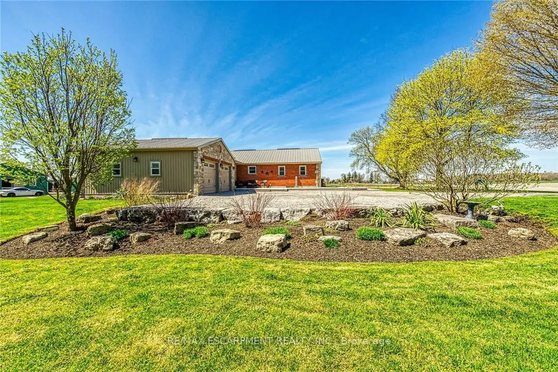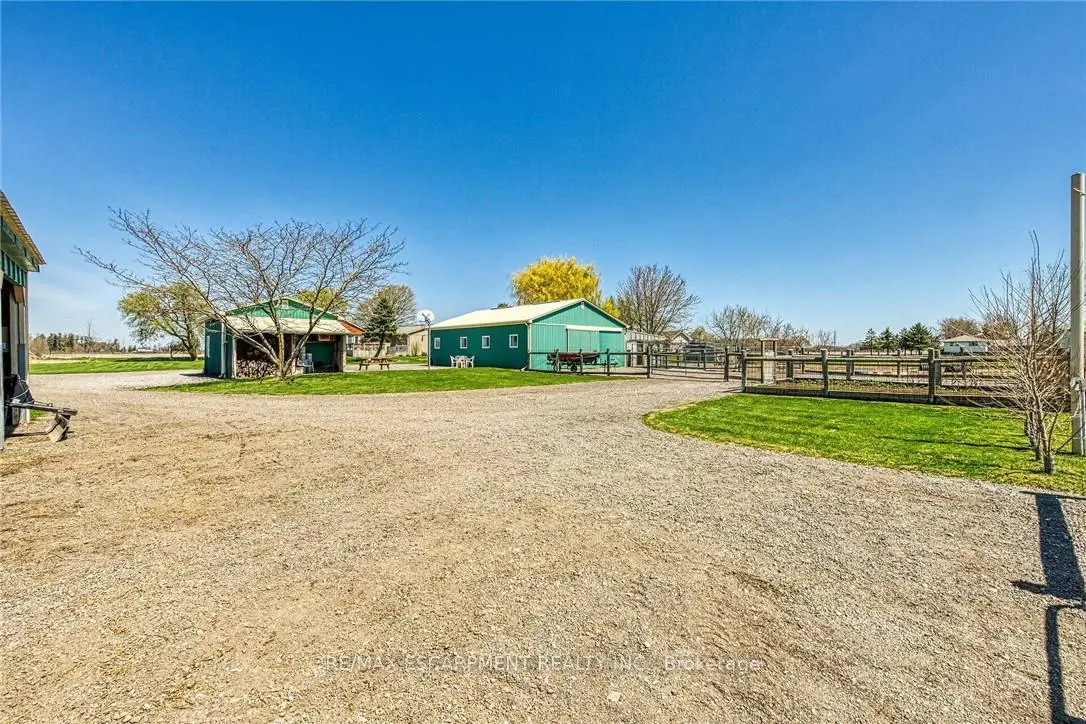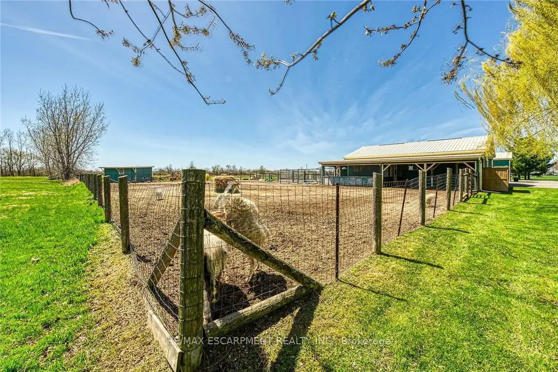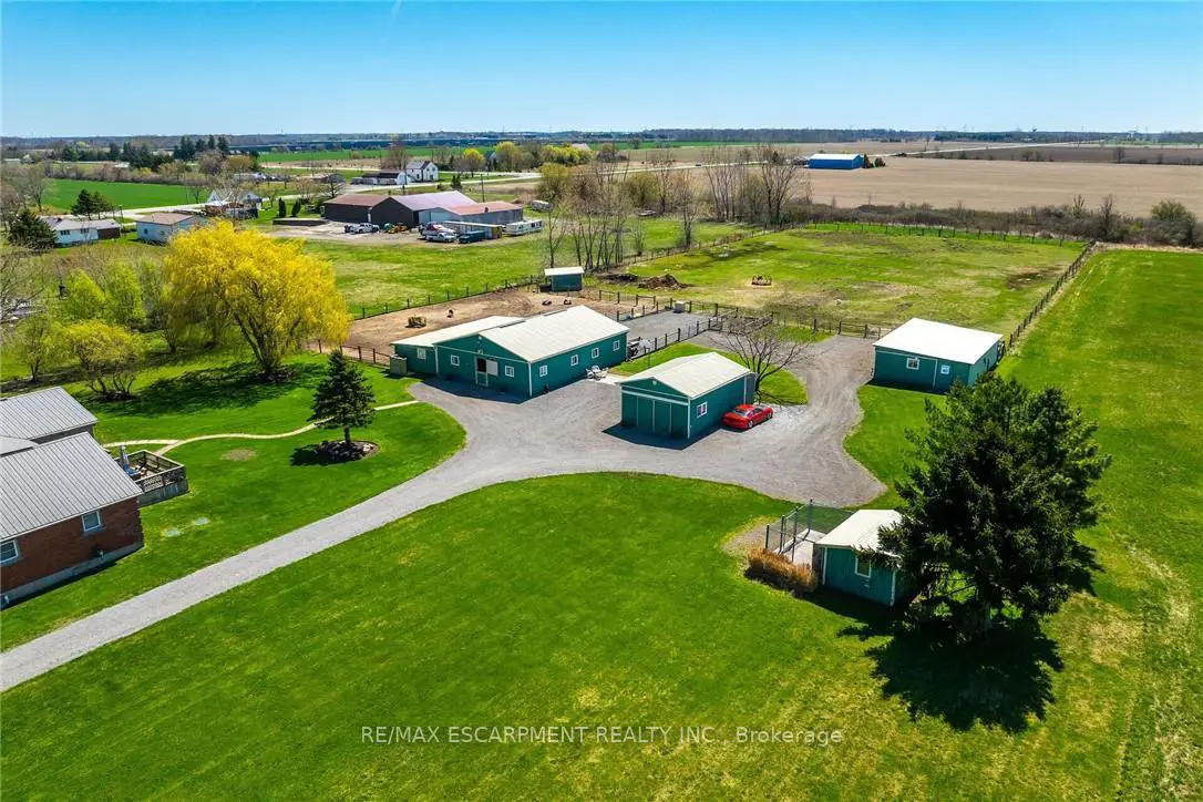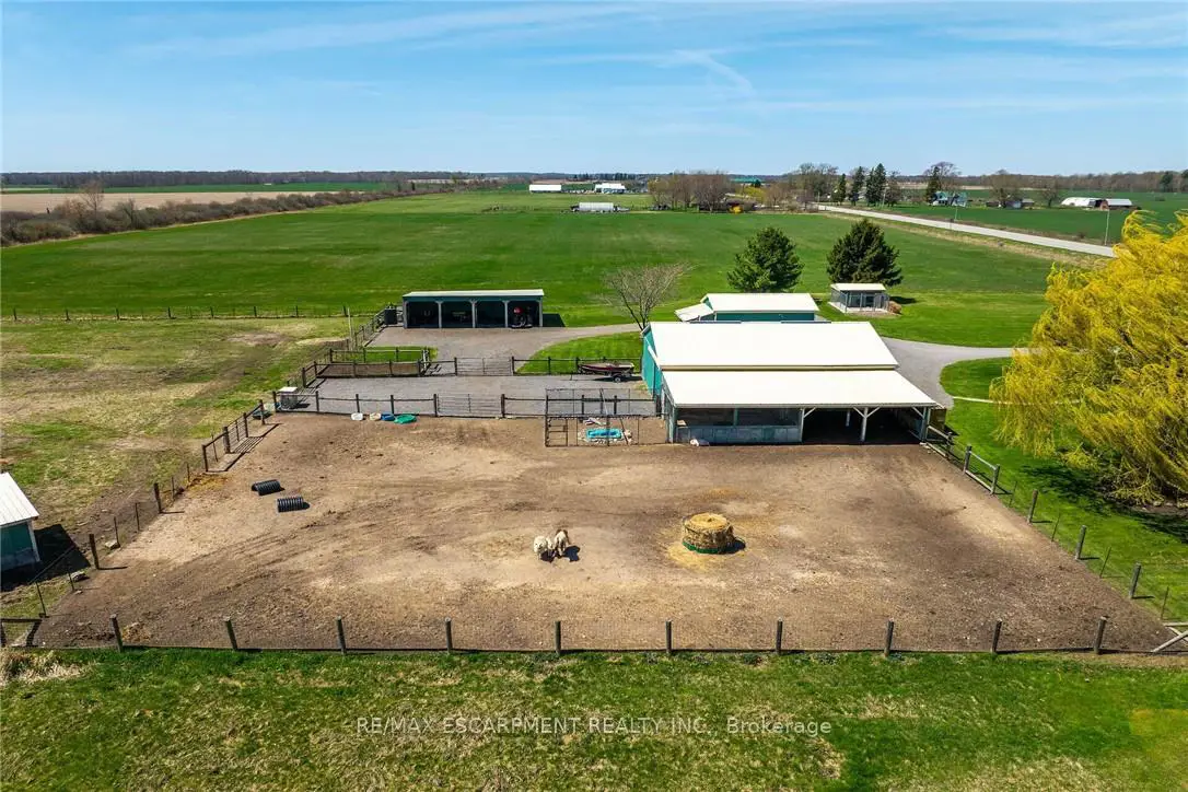 Immaculate 14.34ac hobby farm located on eastern outskirts of Norfolk Cnty near Haldimand County border central to Hagersville & Waterford. Incredible package begins at extensively renovated brick/stone/sided bungalow introducing over 2000sf of flawless living area (both levels), 680sf htd/ins. attached garage w/10ft ceilings, new stamped conc floor, 2 new ins. doors & p/g heater - complimented w/over 800sf of recently poured conc. front/side patio + 360sf tiered rear deck. Livestock lovers will appreciate metal clad 30x42 barn (bit in 2000) incs 5 hardwood box stalls, hydro, water & 16x42 lean-to w/separate road entrance. Additional buildings inc metal clad 24x16 garage (bit in 2000), versatile 3 bay open-end building att. to 22x40 sea-container, 20x14 dog kennel on conc. slab & multiple paddocks - majority of land is workable capable of supplying self sufficient feed livestock needs. Pristine home ftrs grand foyer incs 2 closets, rear & garage entry - leads to stylish kitchen'22 sporting dark cabinetry, tile back-splash, SS p/g stove, comm. style side/side SS fridge/freezer topped off w/granite counters - segues to dinette boasting garden door deck WO. Gorgeous travertine tile flooring compliment these rooms w/upscale flair. Continues to luxurious living room augmented w/hardwood flooring & picture window - on to primary bedroom ftrs WI closet & en-suite privilege to chicly appointed remodeled bath in 2022 - completed w/guest bedroom. Custom wood staircase descends to lower level family room - perfect for large family gatherings or simply to relax - additional rooms inc 2 bedrooms, modern 4pc bath, office/den or poss. 5th bedroom (no window), laundry room & utility room. Extras -metal roof, new ceilings, 200 hydro, vinyl windows, recent facia/soffit/eaves/siding, 4 ext. doors'23, int. doors/hardware/trim/baseboards'13, ex. well w/purification system, p/gas aqua-therm furnace-2025, AC, C/VAC & more. Experience rural living - rooted in sustainability & satisfaction.