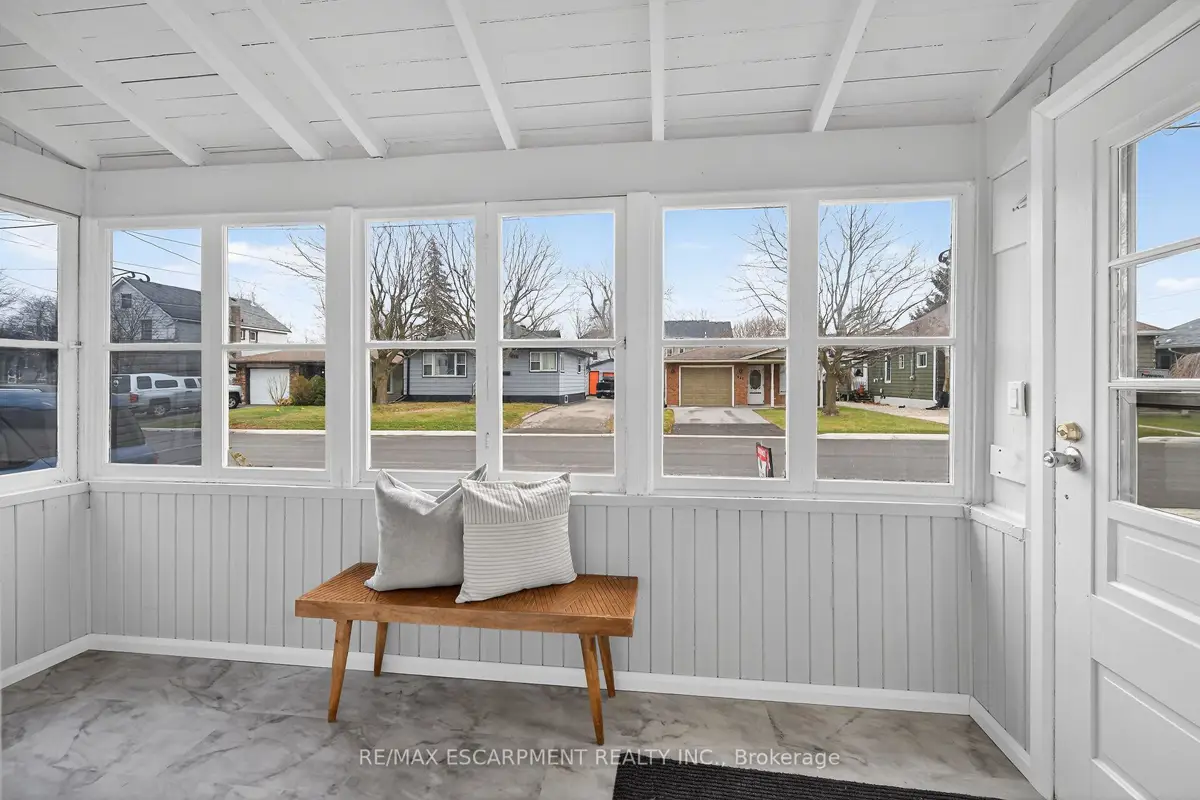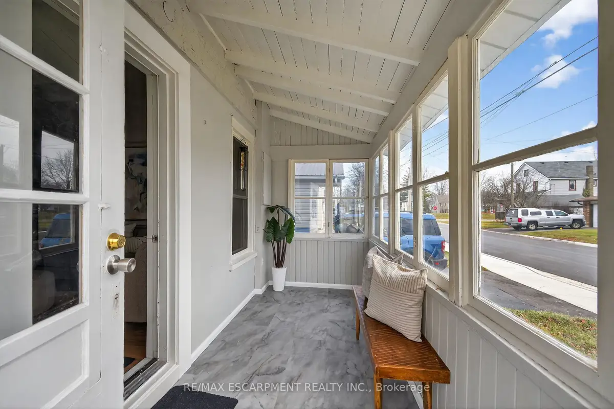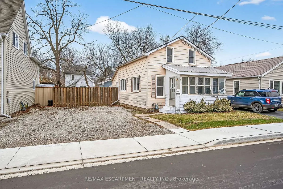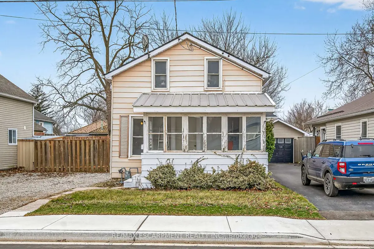 Sweet 1.5 storey starter home in quiet area of Dunnville on nice sized fully fenced mature lot. Offering just over 1000 square feet, this home includes two upper level bedrooms, good size living room and dining room plus eat in kitchen and four piece bath on the main. Mudroom at the back, and a pretty sunporch in the front. Updates include fresh paint through out, new carpeting upstairs, laminate floor and new vinyl floor downstairs. All vinyl windows, metal siding, unique high lifespan rubber roof which was put on in 2014. Natural gas hi efficiency forced air furnace replaced in 2015. Double car parking. Get your foot into the real estate market - make this solid home your new home!