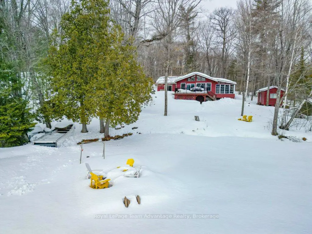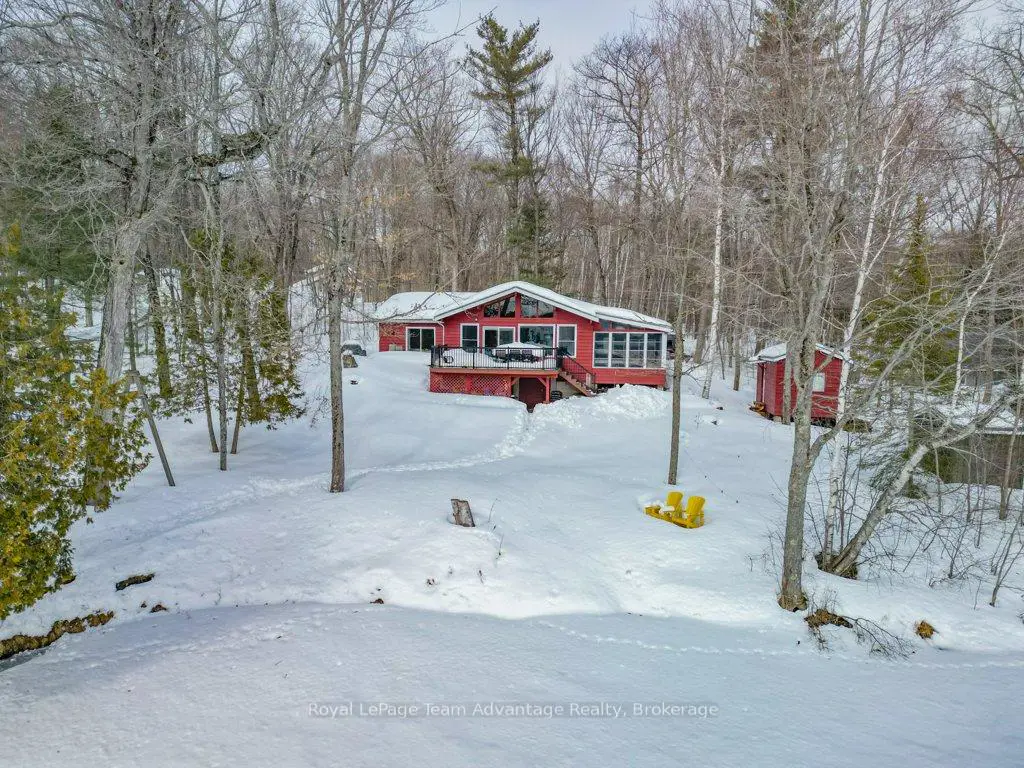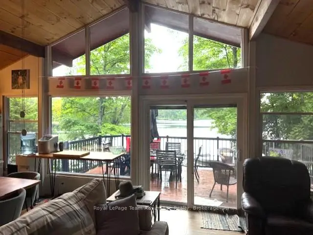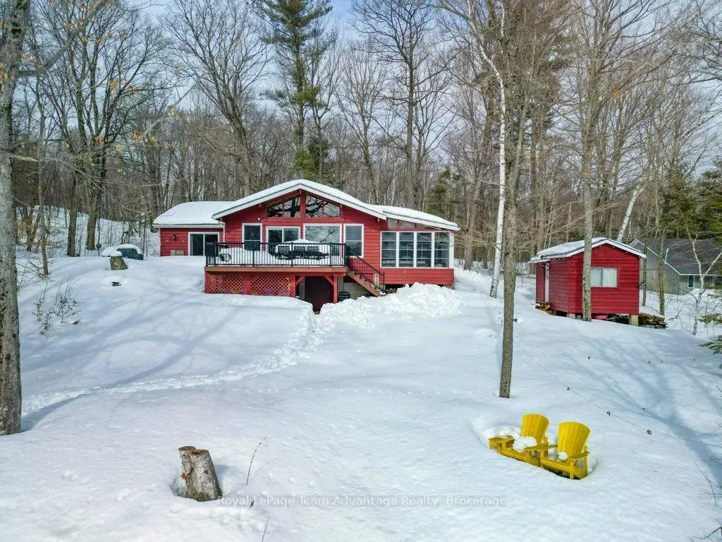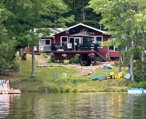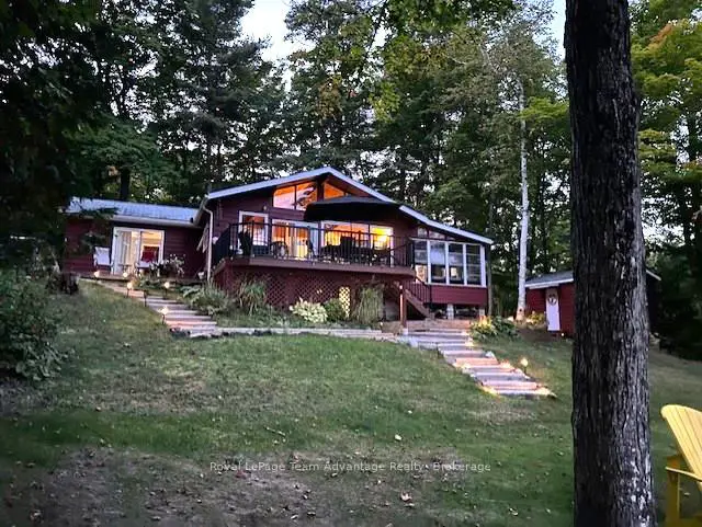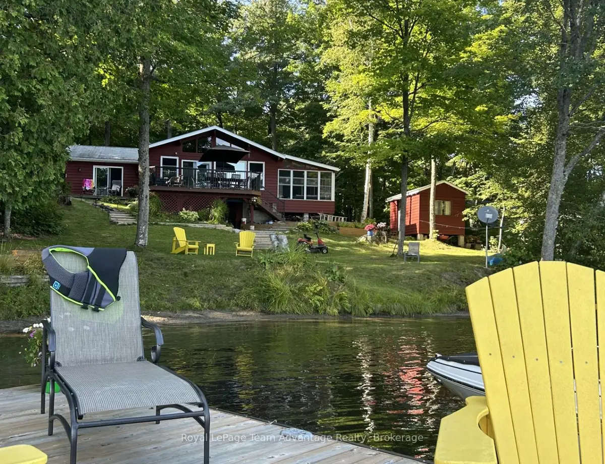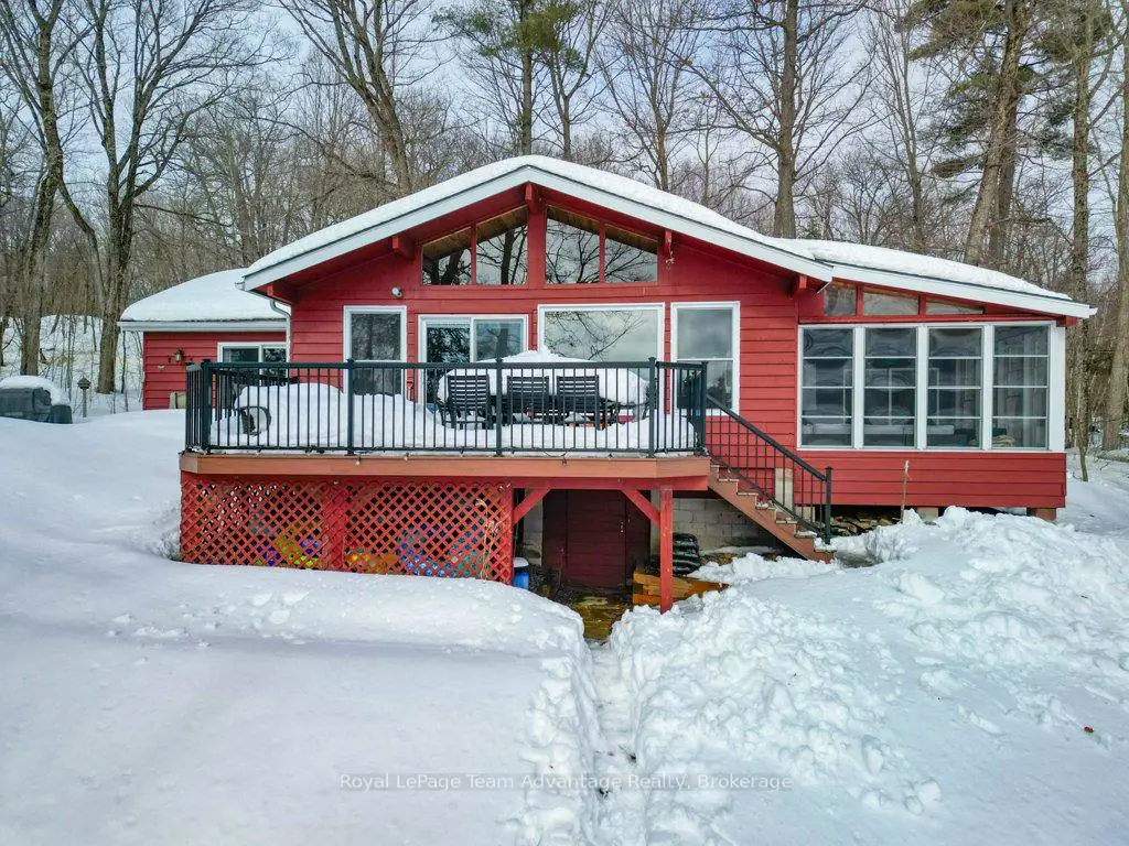 Welcome to this bright and welcoming 3-bedroom, 2-bath cottage on beautiful Sugar Lake - a place that makes it easy to slow down and enjoy time at the water.The open-concept living, dining, and kitchen area offers a comfortable gathering space, highlighted by a wall of windows and a patio door leading to the deck overlooking the lake. The southeast-facing shoreline provides peaceful views and sunny mornings, while a newer propane fireplace keeps things cozy on cooler evenings.The primary bedroom features a 4-piece ensuite, walk-in closet, and walkout to the deck. Two additional bedrooms offer plenty of closet space, with an updated 3-piece bathroom conveniently located between them. A loft-style attic provides additional storage.A welcoming mudroom with laundry makes cottage living easy, and the charming 3-season sunroom offers another great place to relax.Outside, the gently sloping lot leads to a clean shoreline with a sandy beach and gradual entry - ideal for families, swimming, and boating. The bunkie provides a fun and practical space for kids or extra guests.With many updates completed, this move-in-ready cottage could easily be converted into a comfortable year-round waterfront home.