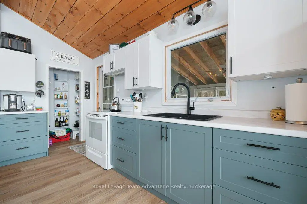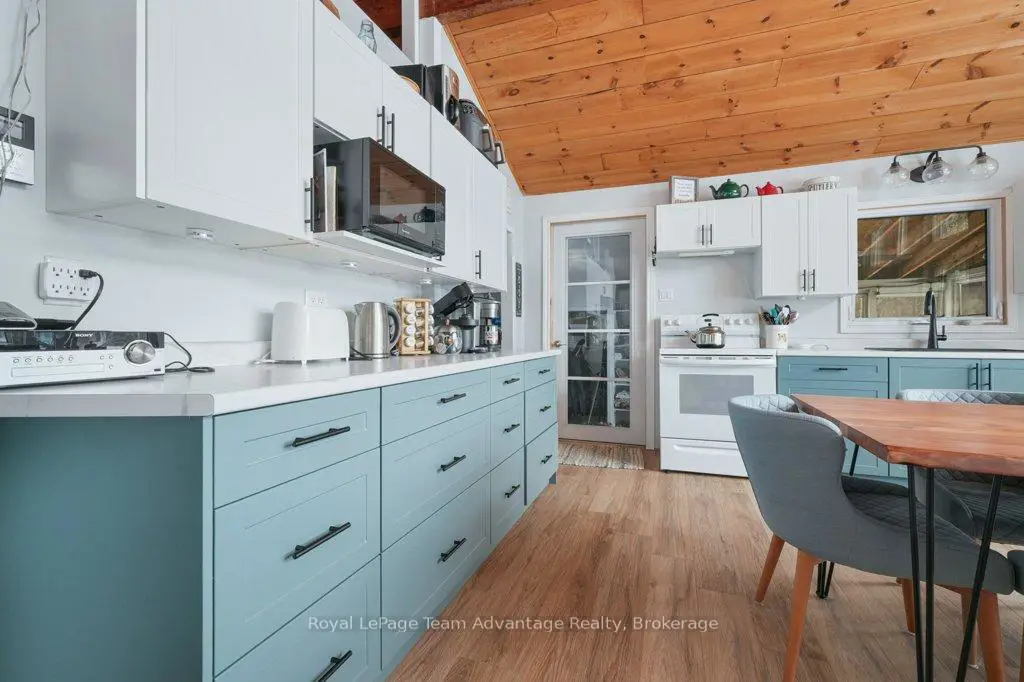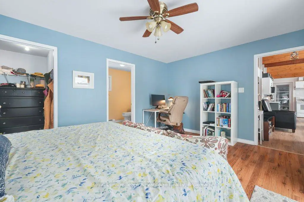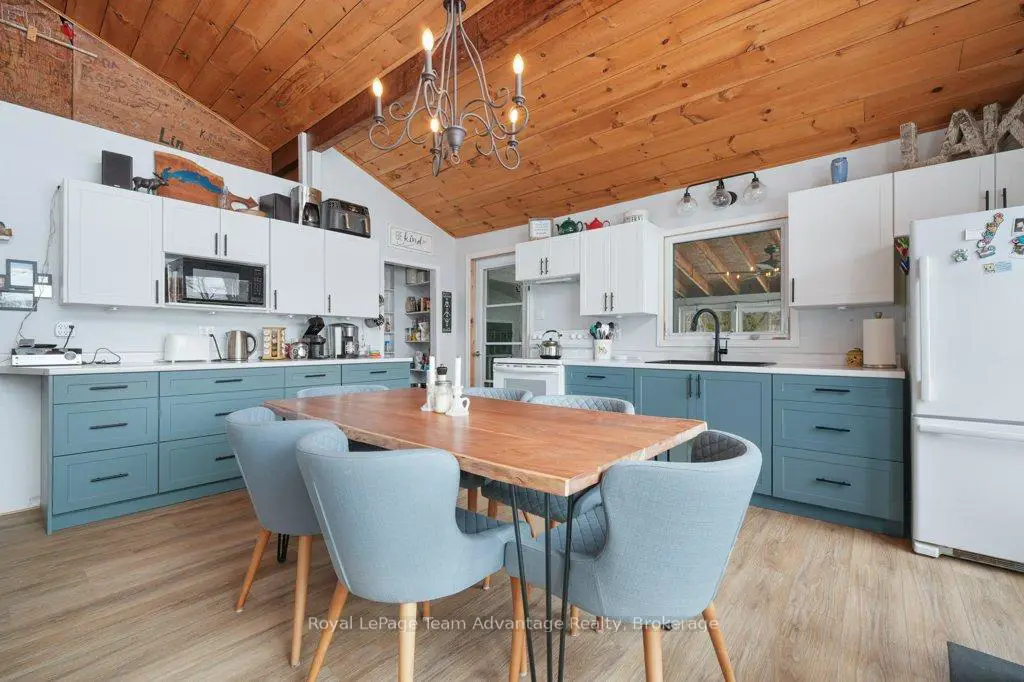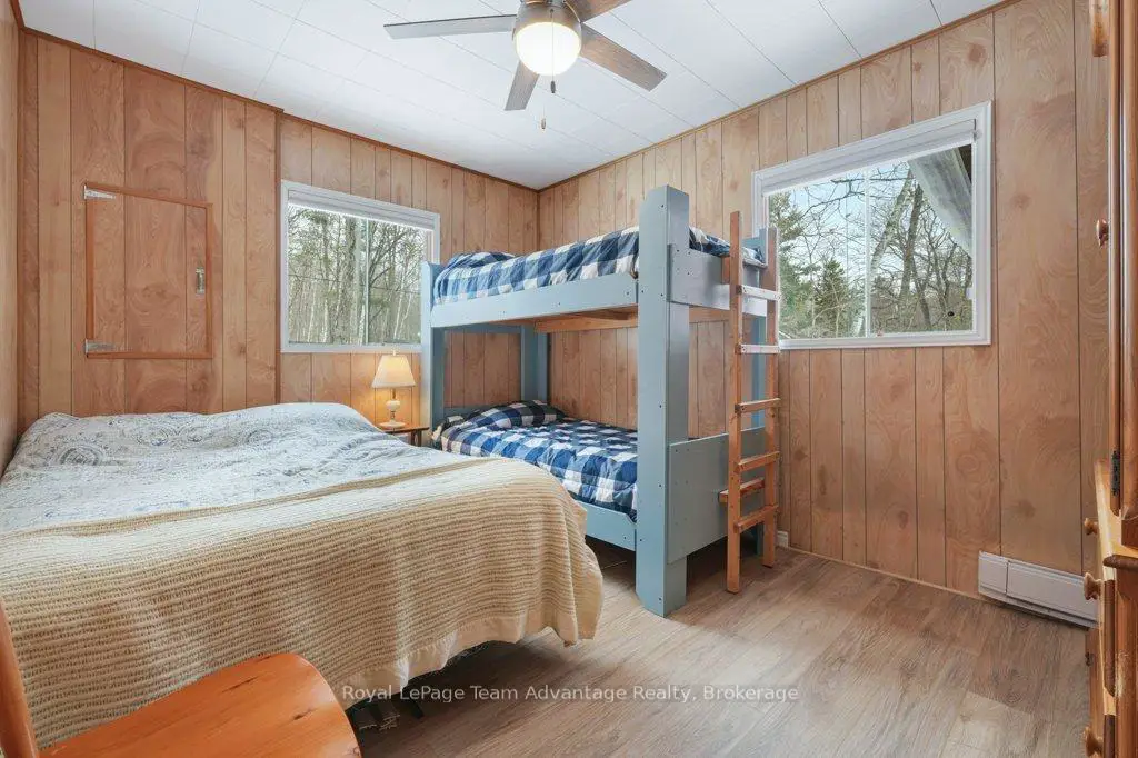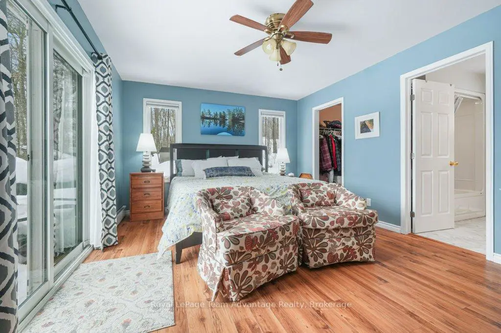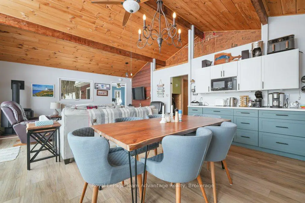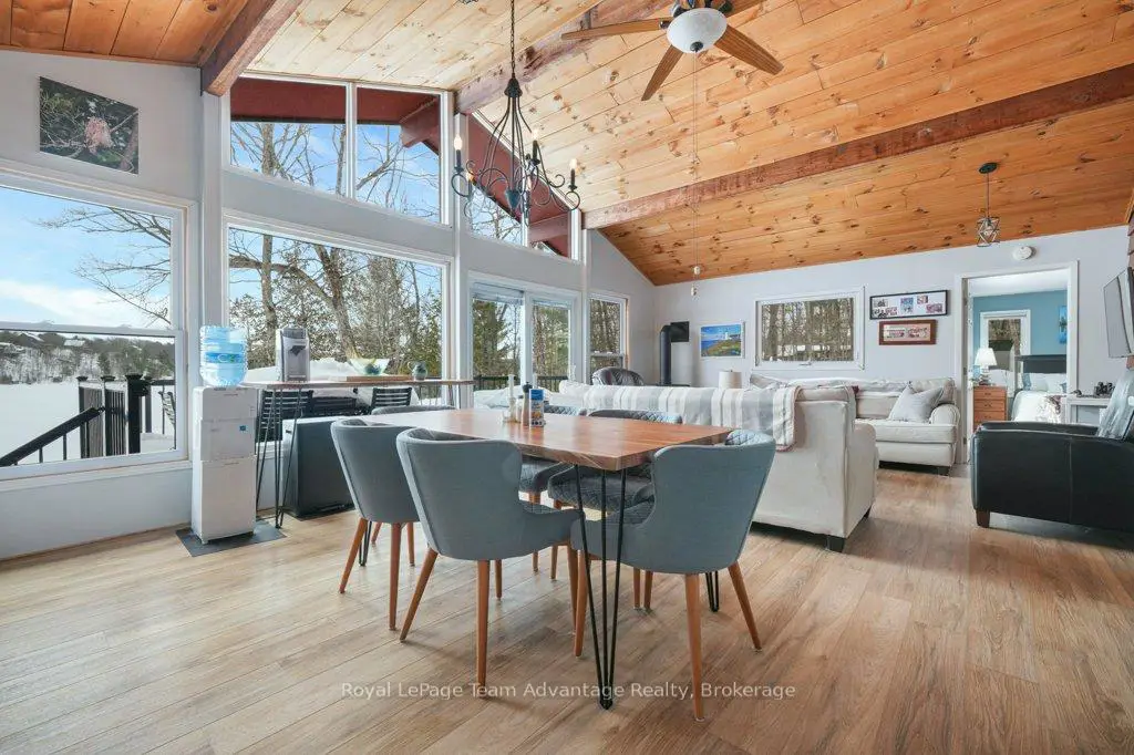 Welcome to this bright and welcoming 3-bedroom, 2-bath cottage on beautiful Sugar Lake - a place that makes it easy to slow down and enjoy time at the water.The open-concept living, dining, and kitchen area offers a comfortable gathering space, highlighted by a wall of windows and a patio door leading to the deck overlooking the lake. The southeast-facing shoreline provides peaceful views and sunny mornings, while a newer propane fireplace keeps things cozy on cooler evenings.The primary bedroom features a 4-piece ensuite, walk-in closet, and walkout to the deck. Two additional bedrooms offer plenty of closet space, with an updated 3-piece bathroom conveniently located between them. A loft-style attic provides additional storage.A welcoming mudroom with laundry makes cottage living easy, and the charming 3-season sunroom offers another great place to relax.Outside, the gently sloping lot leads to a clean shoreline with a sandy beach and gradual entry - ideal for families, swimming, and boating. The bunkie provides a fun and practical space for kids or extra guests.With many updates completed, this move-in-ready cottage could easily be converted into a comfortable year-round waterfront home.
