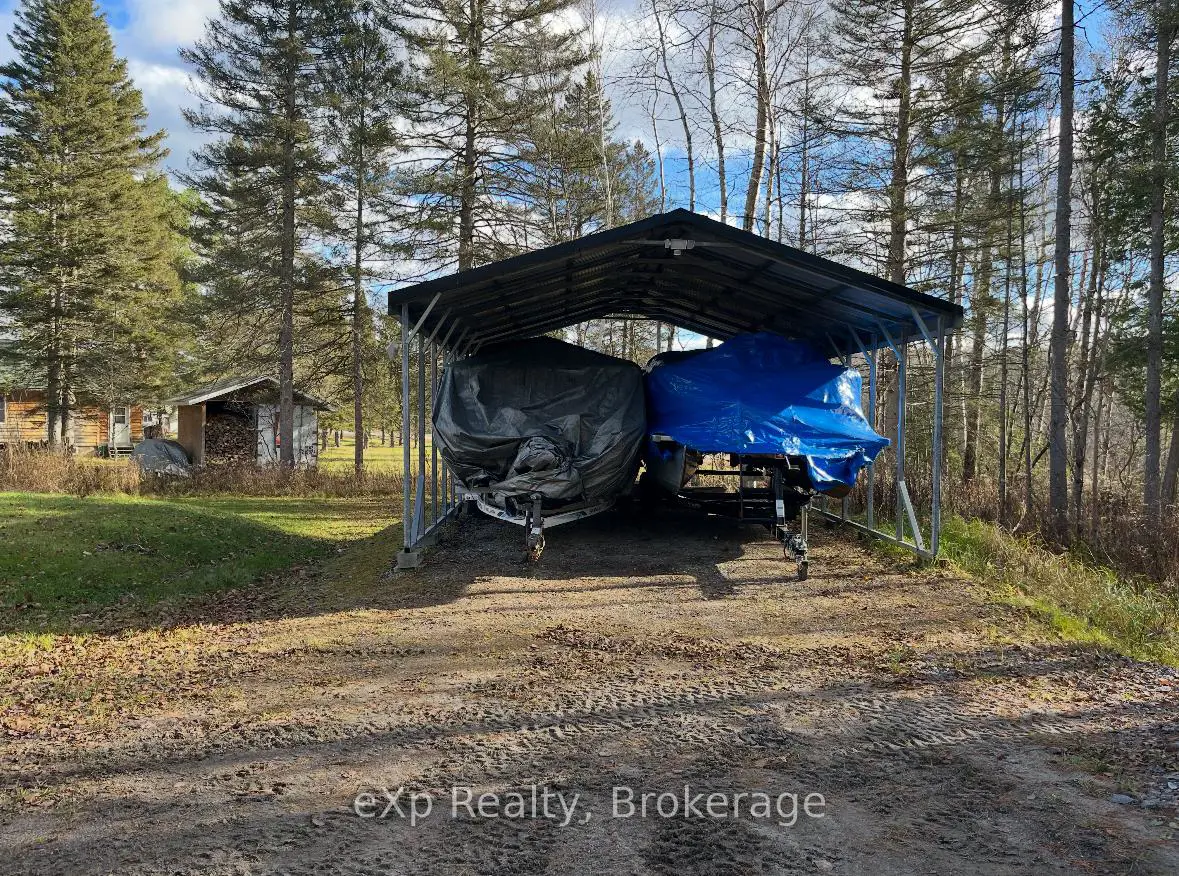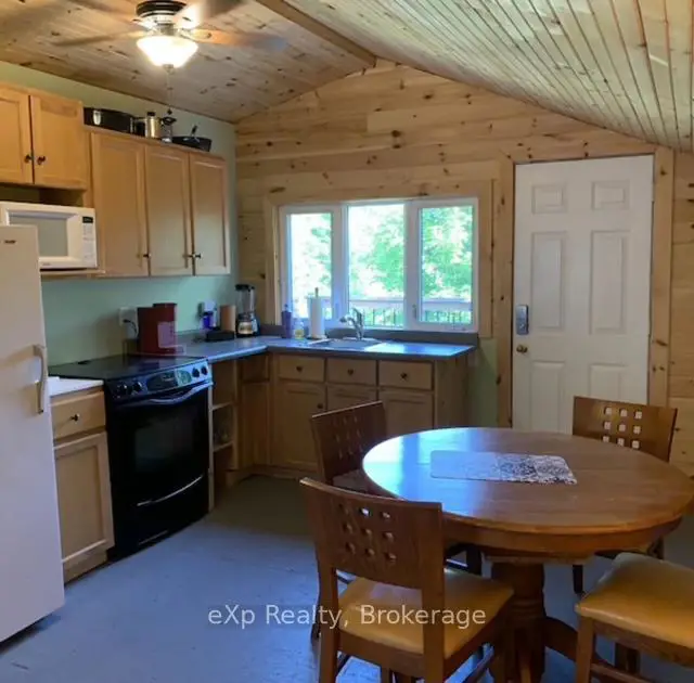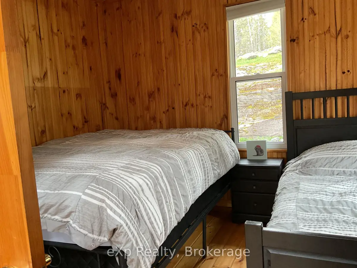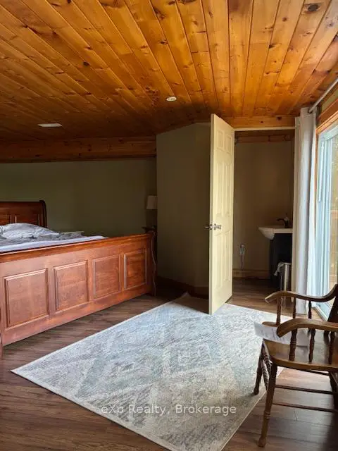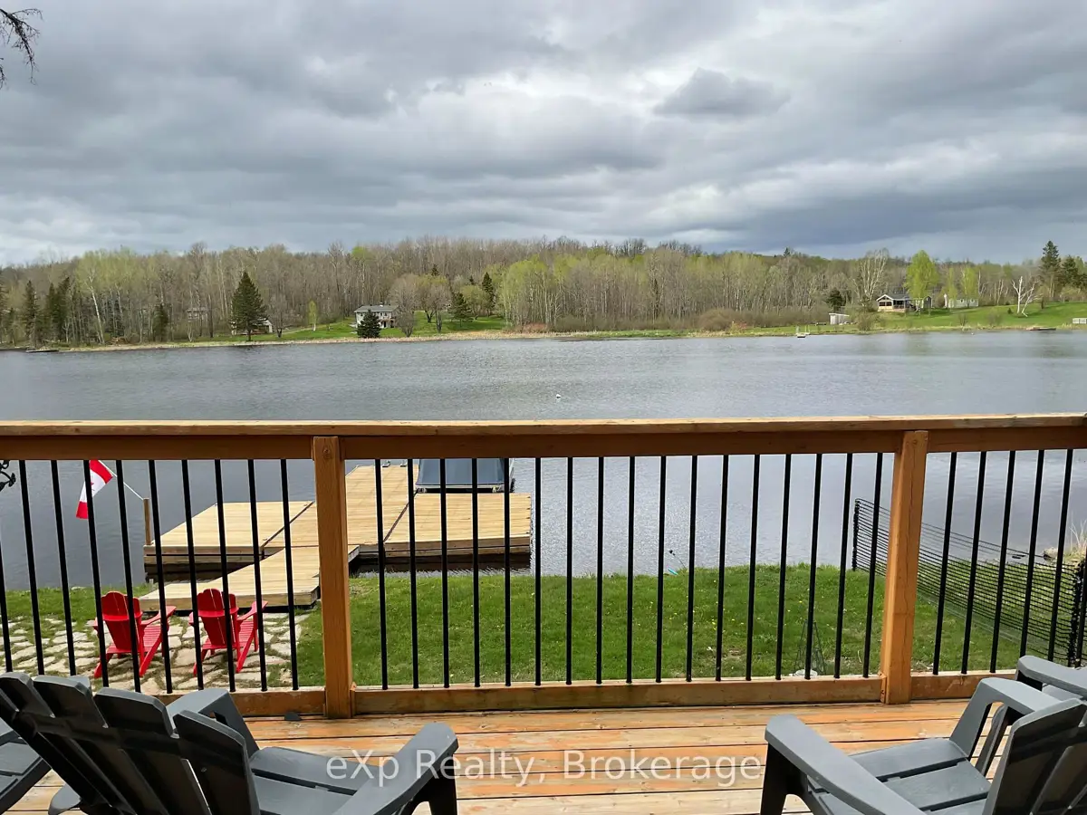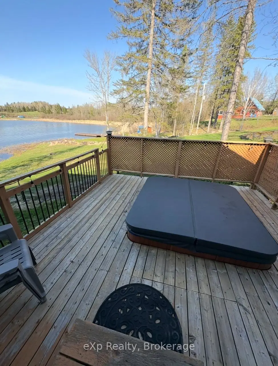 Welcome to your dream getaway on the shores of beautiful Jacks Lake! Nestled on over 3 acres in an unorganized township, this waterfront home is ready for your enjoyment. Step inside to a bright, open-concept layout featuring a spacious kitchen with a large island, ideal for cooking and entertaining. The living room boasts cathedral ceilings and stunning lake views, with French doors that open onto a large deck with a gazebo perfect for grilling or hosting guests. Just off the kitchen, another deck leads to a sunk-in hot tub- an inviting space for relaxing under the open sky. The lower-level walk-out is currently used as the primary bedroom. This suite includes a convenient 2-piece bath and patio doors leading to a private deck. It's an excellent retreat for parents or guests, offering immediate access to the outdoors, whether for a night swim or sipping your morning coffee. An oversized garage offers plenty of space for storage or hobbies, and above it you'll find additional living space with a bedroom, a 3-piece bathroom, kitchen, and sitting area ideal for guests, rental income, or extended family. Other features include a covered boat storage structure, a wood shed with hydro, a large dock, a lakeside fire pit and storage shed for quick access to your favorite water toys. Some furniture and furnishings are included. Whether you're looking for a peaceful family cottage, a rental opportunity, or a full-time residence, this move-in ready gem offers it all.