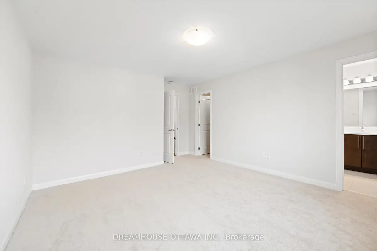 Welcome to this beautifully upgraded townhouse in the sought-after Quinn's Pointe community in Barrhaven. Nestled in a vibrant, family-friendly neighbourhood, this home is just steps from parks and scenic greenspace and within close proximity to the Minto Recreation Complex, shopping, schools, and everyday amenities. This elegant Minto-built home showcases quality upgrades and modern finishes throughout. The bright open-concept main level features rich hardwood flooring, upgraded railings, and a designer kitchen complete with quartz countertops, stainless steel appliances, a large island, additional cabinetry, and soft-close cabinets, perfect for both everyday living and entertaining. The spacious dining and living areas offer a welcoming atmosphere for gatherings with family and friends. Upstairs, you'll find three well appointed bedrooms, including a comfortable primary retreat, along with 2.5 bathrooms and smooth ceilings on the second level that add a refined touch. The fully finished basement extends the living space and features a cozy gas fireplace, creating the perfect setting for a family room, media space, or home retreat. Step outside to enjoy the fully fenced backyard, offering privacy and a great space for outdoor relaxation, entertaining, or family activities. Additional highlights include Window Blinds, Central Vacuum with accessories, garage door opener, upgraded railings and ample storage throughout. Flooring includes hardwood, ceramic, and wall-to-wall carpeting. Pictures taken prior to Tenant's occupancy.