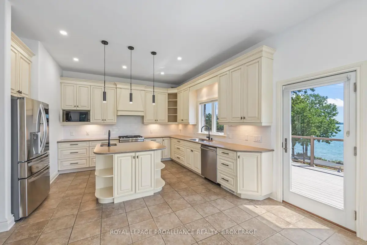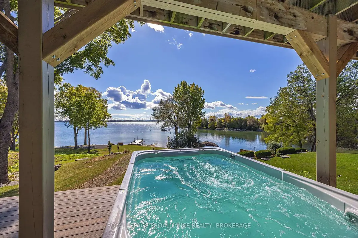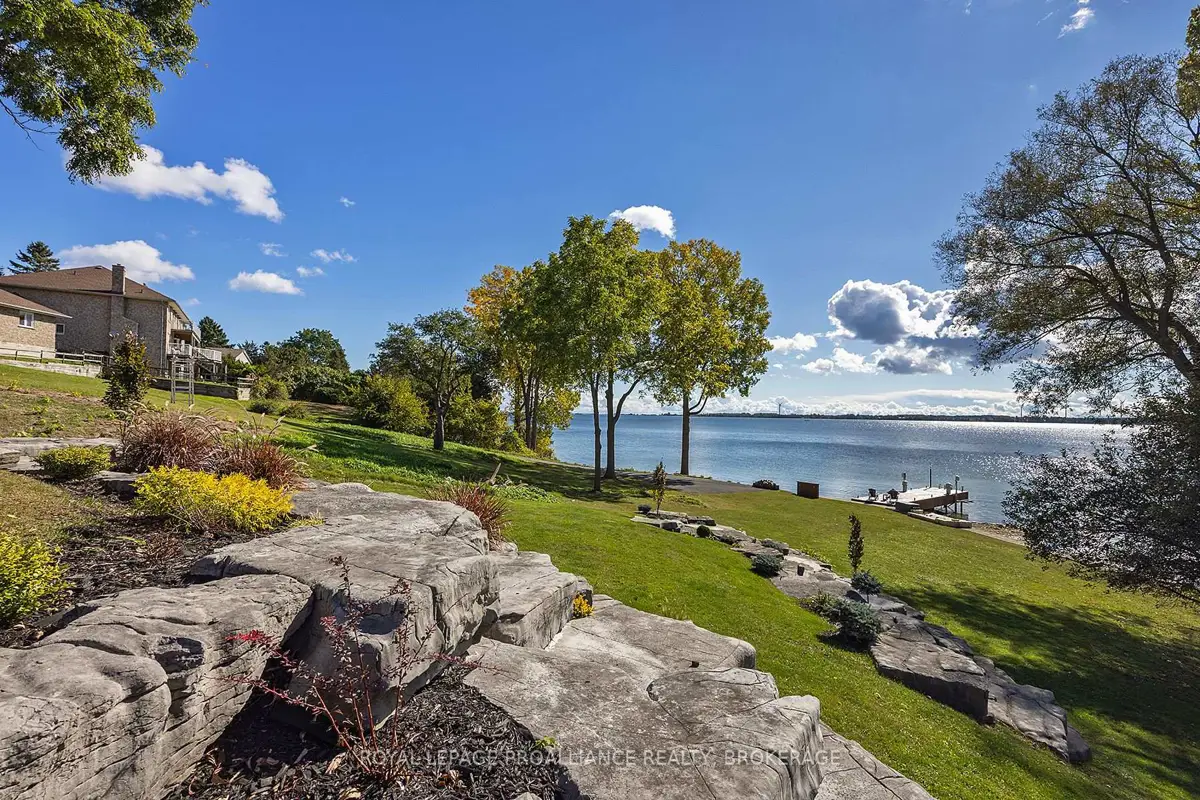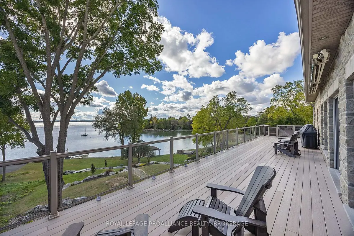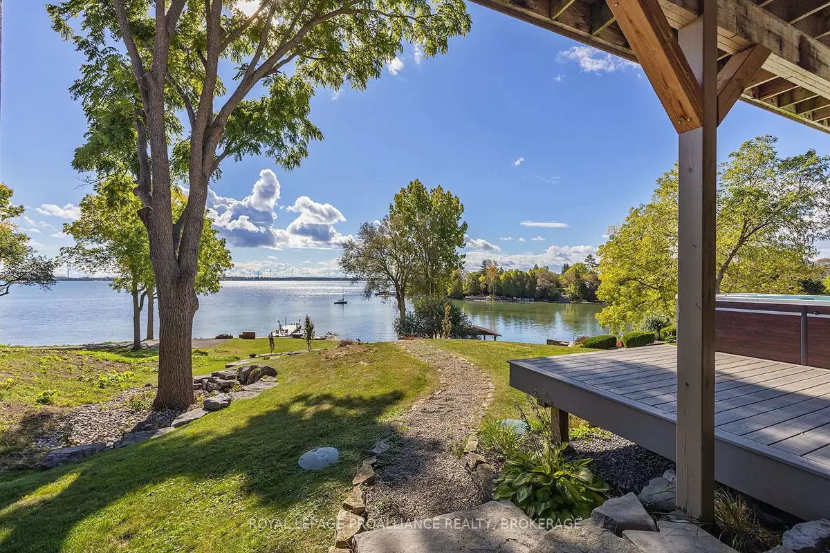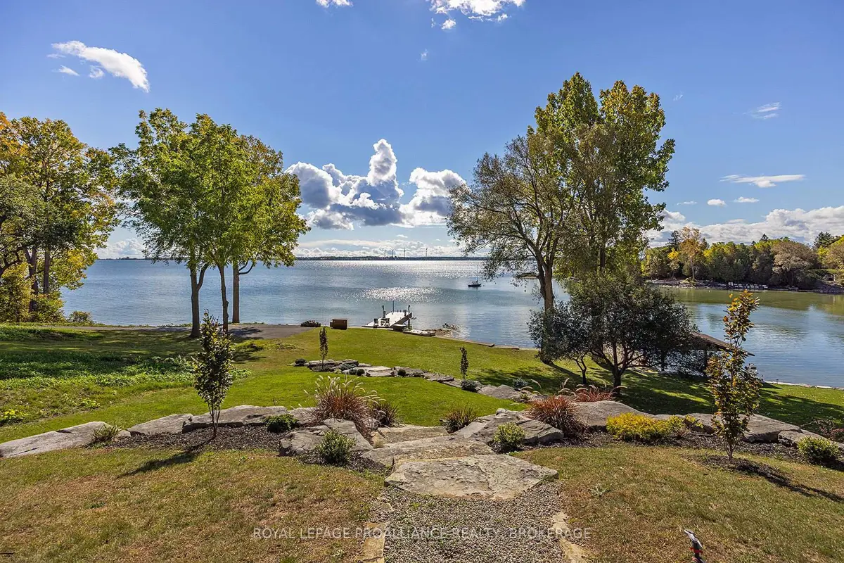Experience Unrivaled Luxury on the Shores of Lake Ontario. Welcome to your private lakeside retreat - a breathtaking 5,778 sq. ft. masterpiece built by Garofalo Homes, designed to capture panoramic water views and timeless elegance at every turn. Step through the grand foyer with its 18-foot ceilings and immediately feel the sophistication and warmth of this meticulously cared-for home. The main level offers a spacious great room with sweeping lake views, a primary bedroom suite with an ensuite bath, a chef's kitchen, and beautiful hardwood flooring throughout. Ascend the elegant open staircase to find three additional bedrooms, each with generous closet space, and a serene guest bath. The fully finished lower level is ideal for entertaining or relaxation, featuring two more bedrooms, a full bathroom, a private gym, and a patio with a 14-foot swim spa-perfect for unwinding while taking in the stunning sunsets. The backyard oasis is a true showstopper, boasting professionally designed landscaping that leads to the private 50' x 12' concrete dock with lighting, 2 power pedestals, , 2 Sea-Doo lifts, and power to accommodate a 7,000-lb boat lift- all expertly crafted by Kehoe Marine for the ultimate waterfront lifestyle. Recent upgrades elevate the home even further: a patterned concrete driveway, smart Lutron lighting system, infrared camera system, 2 new Carrier furnaces, cold-climate heat pumps, and Nest thermostats. The heated 3-car garage includes a gas heater and an external gas generator for peace of mind year-round. Perfectly situated near Amherstview, Parrotts Bay Conservation Area, and just minutes from downtown Kingston's shops and restaurants, this home blends serenity with convenience. With its generous layout and unmatched location, it's an exceptional opportunity for a luxury residence, bed & breakfast, or even a professional home office. Take the first step toward your dream waterfront lifestyle. Experience Lake Ontario living at its finest.