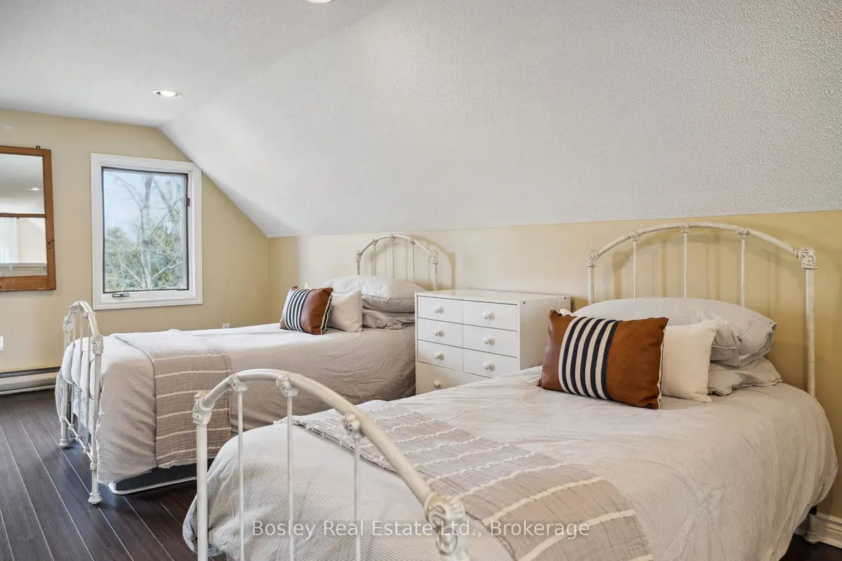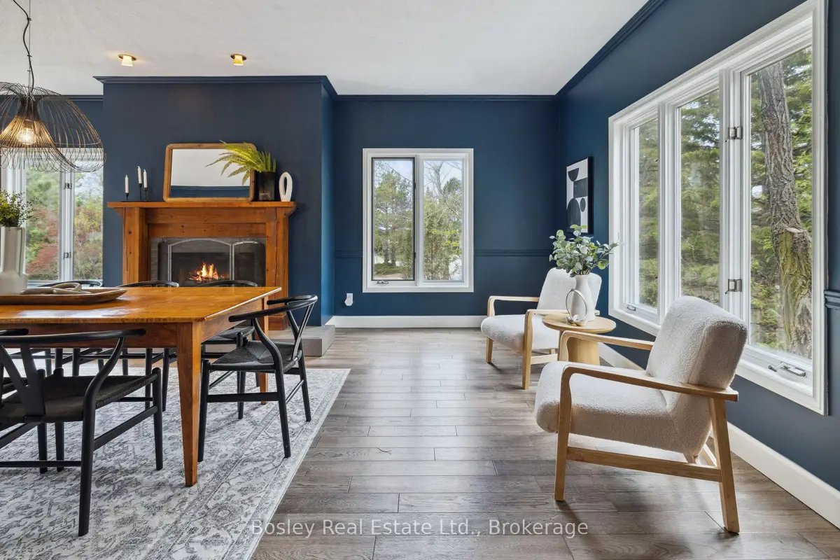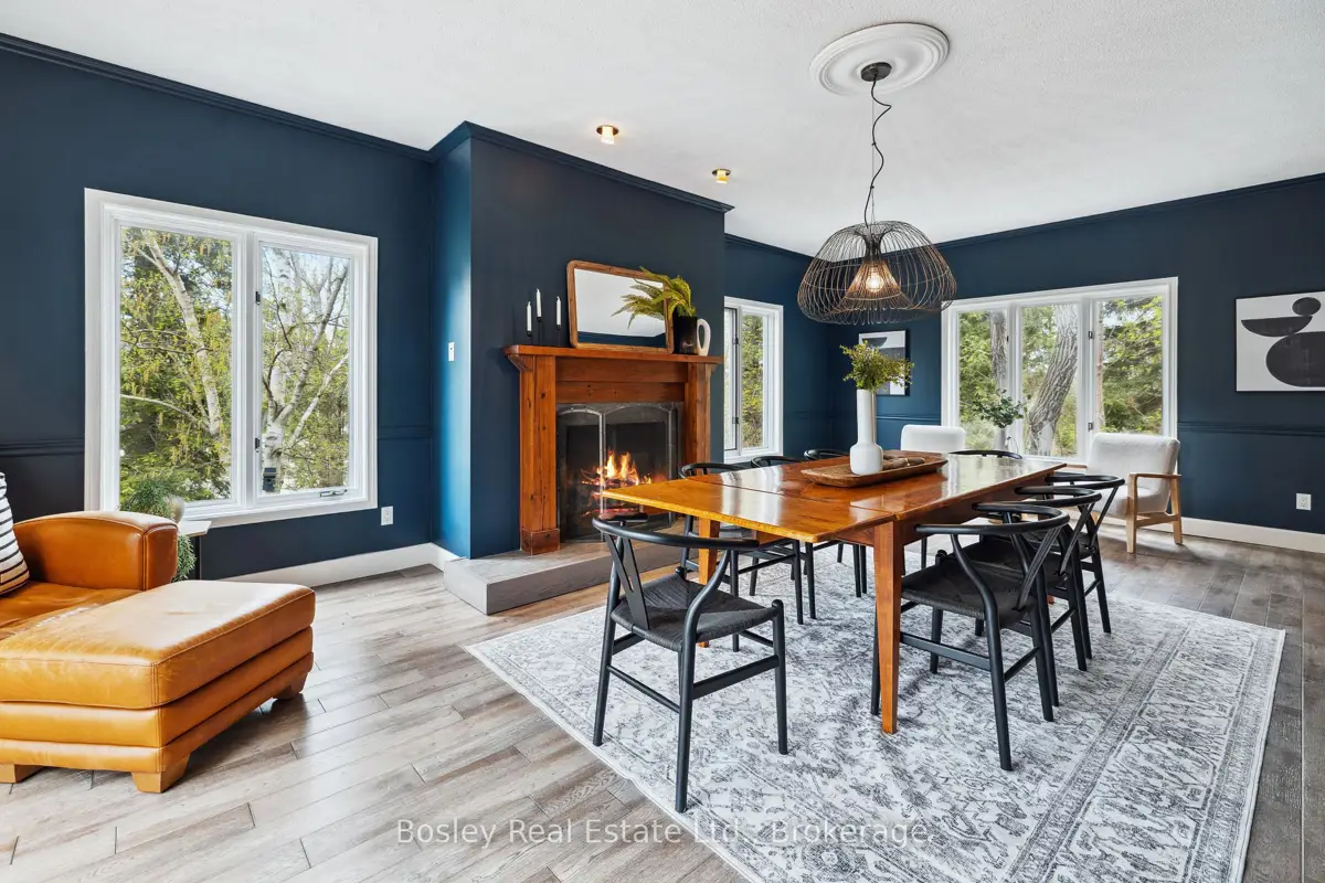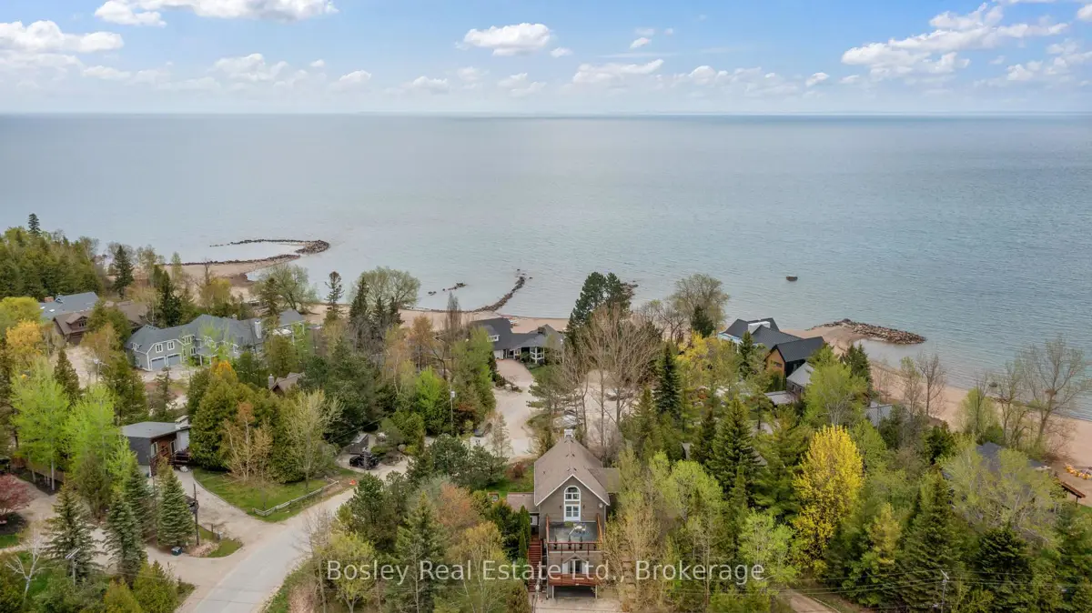Luxury meets Lake Life. Nestled in the sought-after Shore Acres community on a half acre lot with private beach access to Georgian Bay, this exceptional four-level home offers the ultimate blend of comfort, style, and year-round recreation. Step into the foyer that opens into expansive, light-filled living spaces designed for both relaxation and entertaining. The heart of the home is a chefs kitchen that flows seamlessly onto a spacious deck perfect for alfresco dining under summer skies. Host unforgettable gatherings in the elegant dining room with a cozy gas fireplace that sets the perfect ambiance. The lower level is a destination in itself: enjoy a custom bar, games room, and a fully equipped theatre room with immersive sound ideal for movie nights or game day. Upstairs, you'll find three generously sized bedrooms and a versatile loft area, perfect for kids, teens, or extra guests. A light-filled main-floor office ensures you can work from home without compromise. Outside, soak in the private hot tub or gather around the fire pit, surrounded by mature trees and the natural beauty of the lot. The double garage provides ample storage, and the property is just steps to the bay and walking distance to Thornbury's shops, restaurants, and marina. Whether you're hitting the slopes at The Georgian Peaks Ski Club, playing a round at nearby golf courses, or exploring the trails and waters of Blue Mountain, this is the home that makes it all possible.