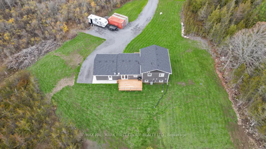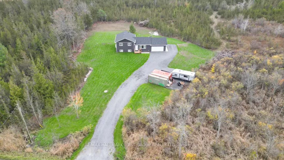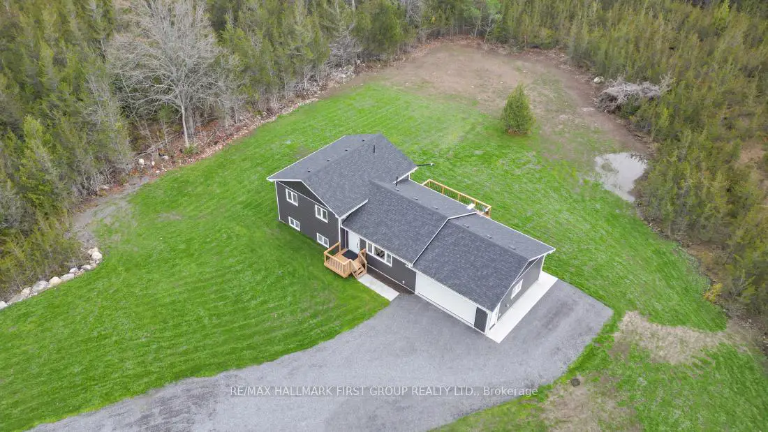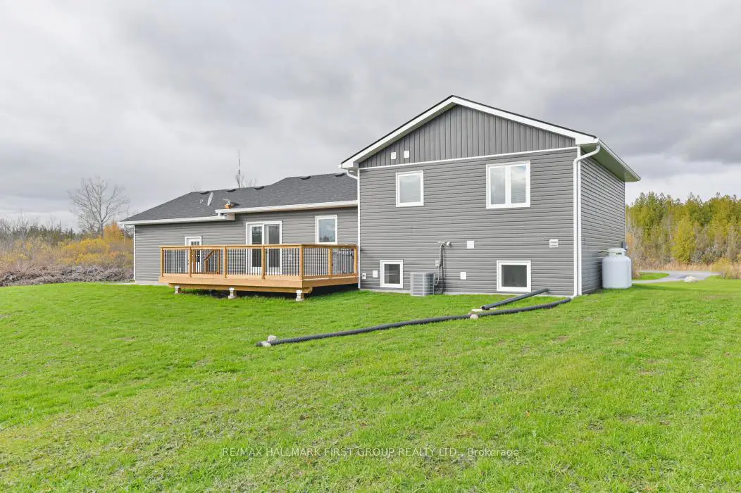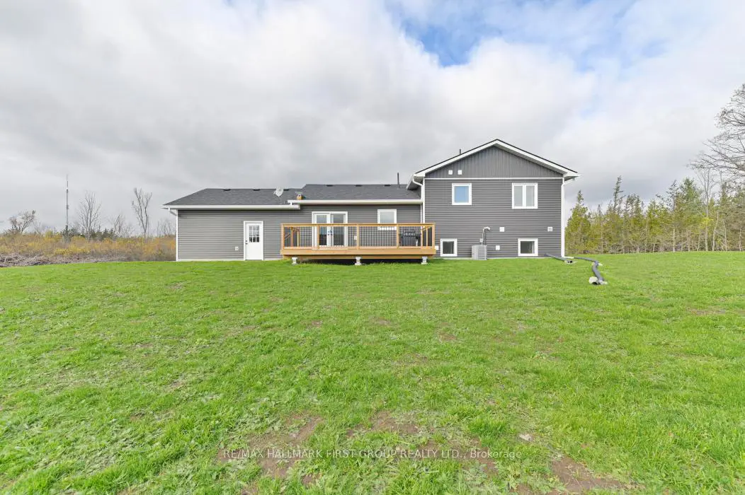 Enjoy the peace and privacy of country living in this stunning 3-bedroom, 3-bath home set on a beautiful 2.5-ACRE treed lot with no close neighbors. This move-in-ready, 2-year-old home boasts modern finishes and an open-concept living space, featuring a spacious kitchen with a center island, eye-catching tile backsplash, and under-cabinet lighting. The open dining area leads to a large south-facing deck, perfect for soaking up the afternoon sun and entertaining guests. The attached insulated and drywalled 21x24 ft two-car garage offers inside entry. The split-level design includes an upper level with three generously sized bedrooms and a 4-piece bath, while the primary bedroom features a 3-piece ensuite with a walk-in tile shower. The finished lower level offers a cozy rec room with bright windows, a 2-piece bath, and a laundry/utility room. Built with an ICF basement foundation, propane heating, and central air, this efficient home comes with appliances and plenty of parking space. Located on a paved road with a school less than 1 km away, it's just 10 minutes to the 401 and 20 minutes to Belleville or Napanee-country living with all the conveniences nearby!