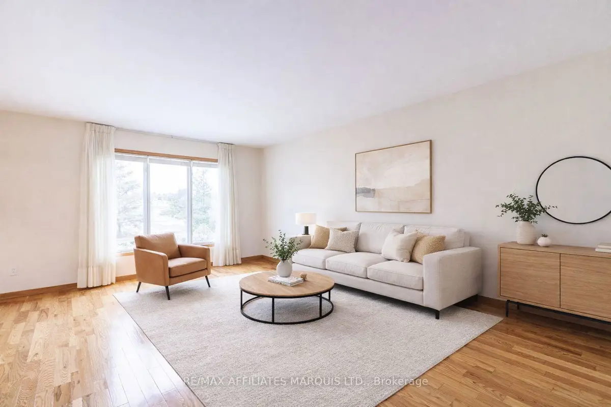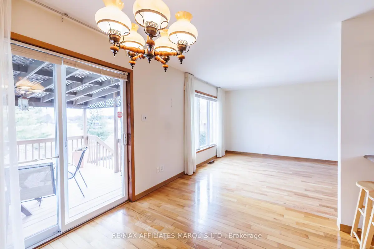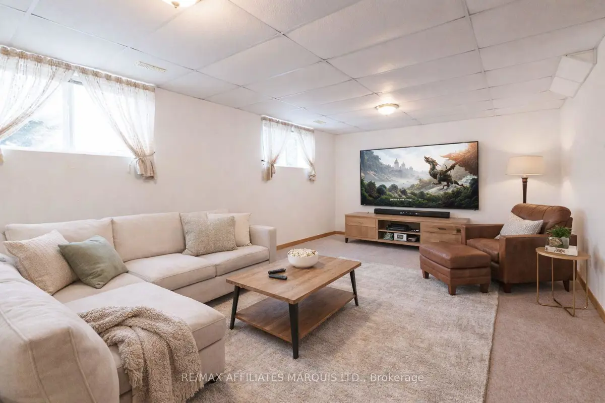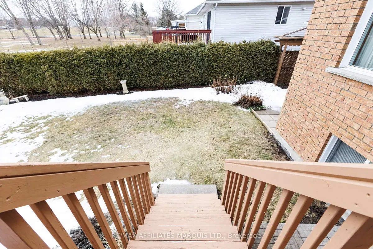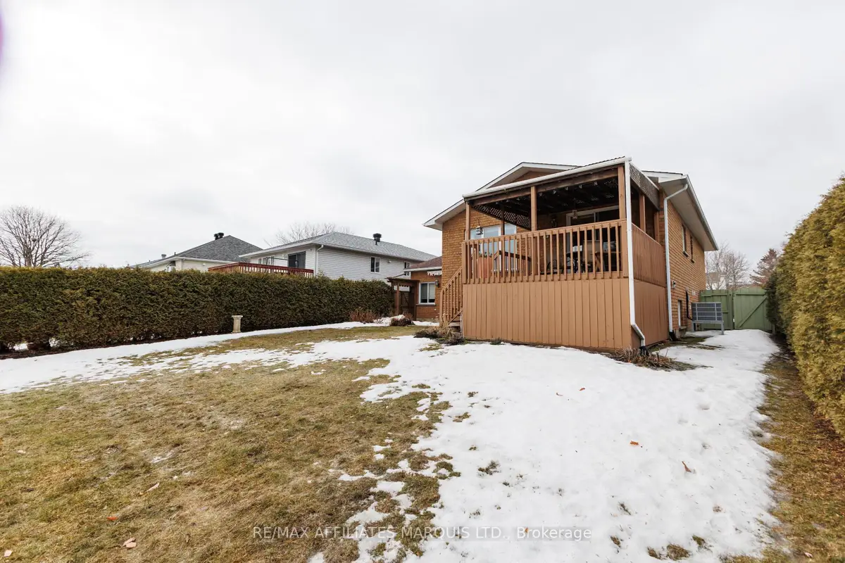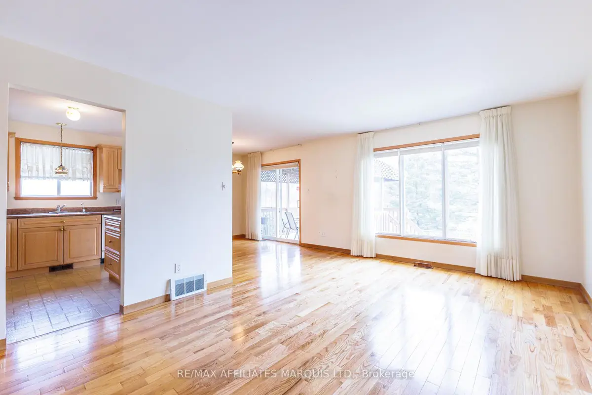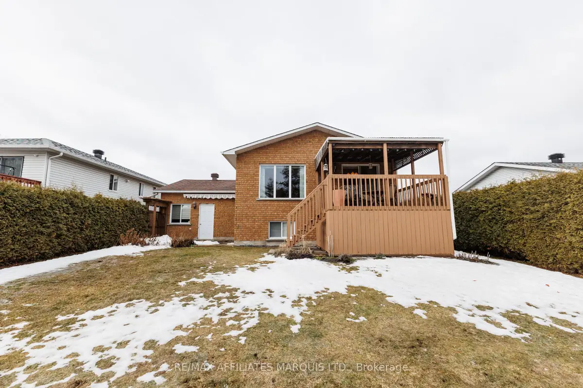 Tucked away on a quiet crescent in Cornwall's desirable east end, this well maintained all brick home offers a wonderful combination of comfort, location, and lifestyle. Backing directly onto Menard Park and just minutes from the scenic St. Lawrence River, this property provides a rare opportunity to enjoy peaceful neighbourhood living with green space right in your backyard. Inside, the bright main level welcomes you with warm hardwood floors and large windows that fill the home with natural light. The spacious living room offers plenty of room to relax or gather with family and friends and flows seamlessly into the dining area. Sliding patio doors lead to a covered deck overlooking the backyard and park, a perfect setting for summer dining, morning coffee, or simply enjoying the view. The adjoining kitchen offers ample cabinetry, functional workspace, and a practical layout that remains connected to the main living areas. Two well-sized bedrooms with hardwood flooring and generous closet space are also located on the main level, along with a four-piece bathroom. The lower level provides additional living space with a large family room, a convenient three-piece bathroom, and a spacious room that could function as a third bedroom or home office. A utility room with a generous workbench area and additional storage beneath the stairs adds practical functionality. With its bright interior, comfortable layout, and sought after location backing onto parkland, this east-end property offers a fantastic opportunity to enjoy a quiet neighbourhood close to Cornwall's schools, services, and recreation.