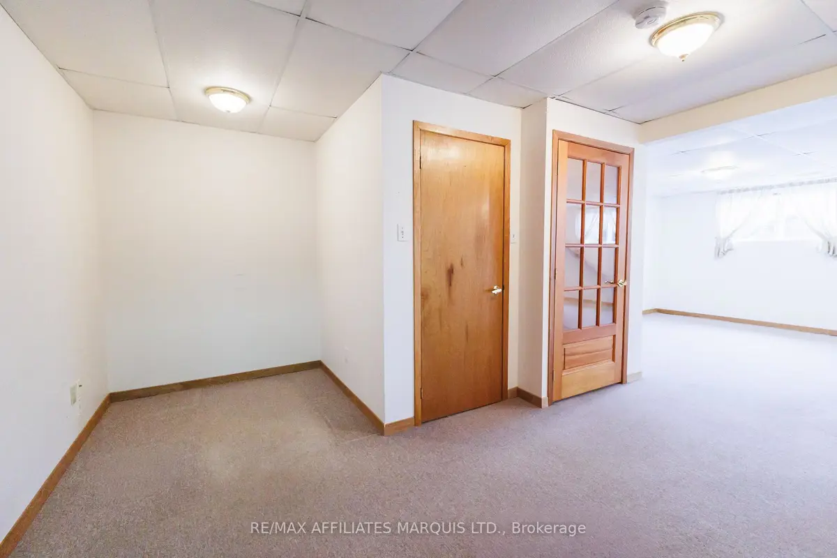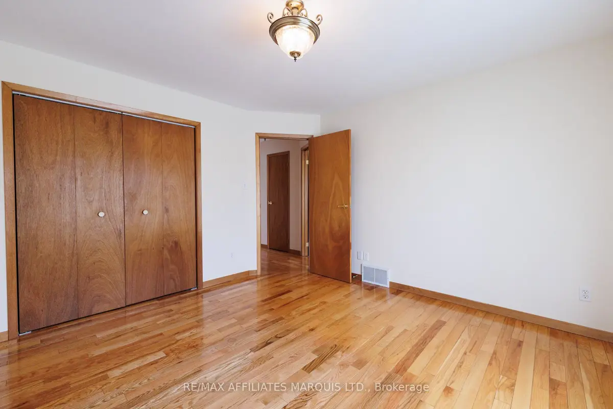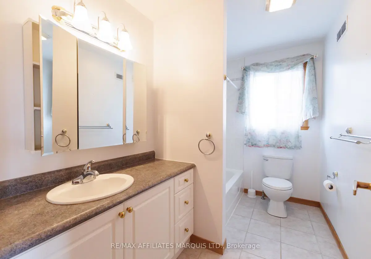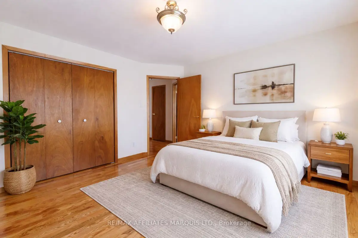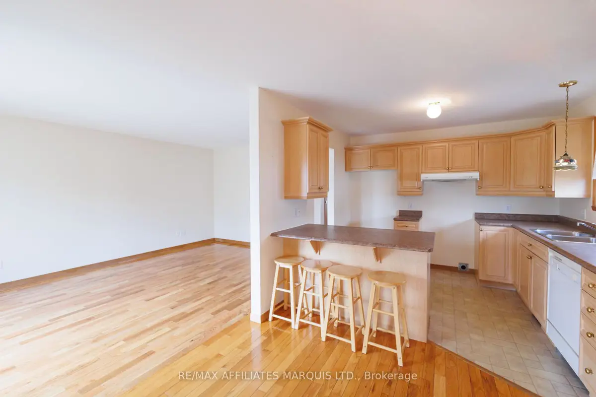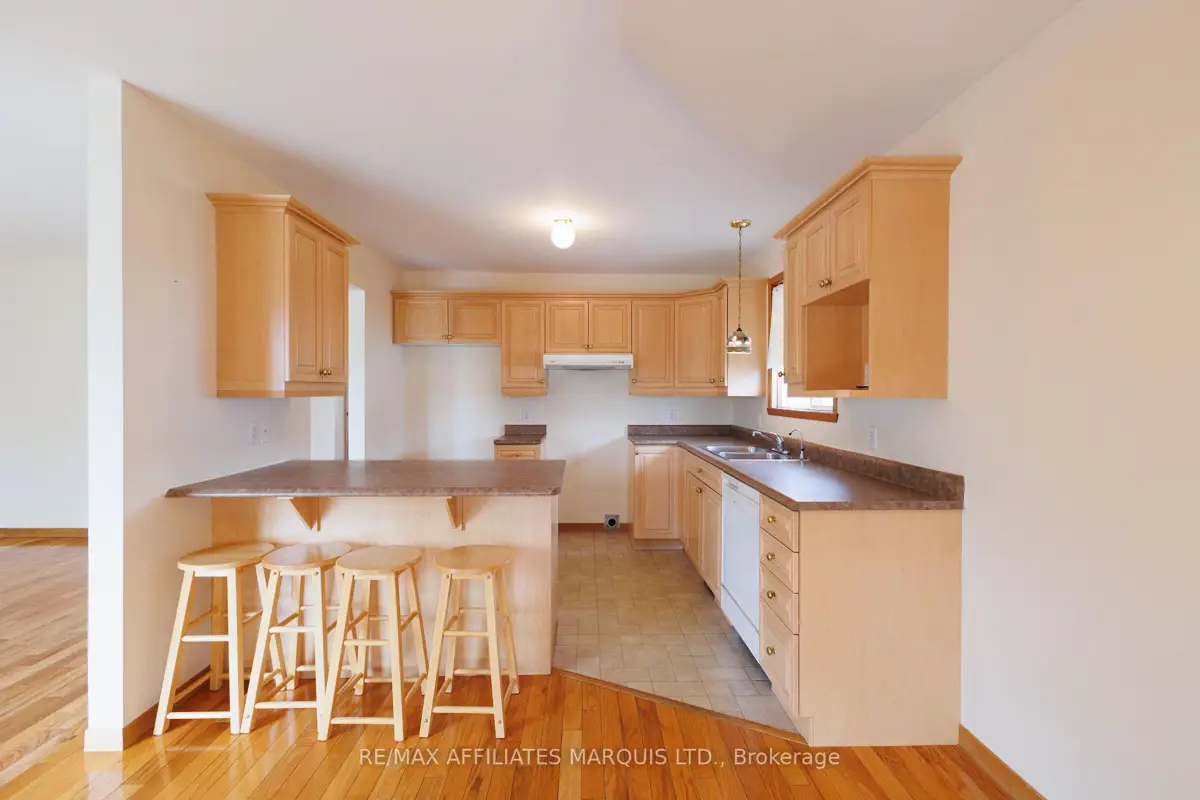 Tucked away on a quiet crescent in Cornwall's desirable east end, this well maintained all brick home offers a wonderful combination of comfort, location, and lifestyle. Backing directly onto Menard Park and just minutes from the scenic St. Lawrence River, this property provides a rare opportunity to enjoy peaceful neighbourhood living with green space right in your backyard. Inside, the bright main level welcomes you with warm hardwood floors and large windows that fill the home with natural light. The spacious living room offers plenty of room to relax or gather with family and friends and flows seamlessly into the dining area. Sliding patio doors lead to a covered deck overlooking the backyard and park, a perfect setting for summer dining, morning coffee, or simply enjoying the view. The adjoining kitchen offers ample cabinetry, functional workspace, and a practical layout that remains connected to the main living areas. Two well-sized bedrooms with hardwood flooring and generous closet space are also located on the main level, along with a four-piece bathroom. The lower level provides additional living space with a large family room, a convenient three-piece bathroom, and a spacious room that could function as a third bedroom or home office. A utility room with a generous workbench area and additional storage beneath the stairs adds practical functionality. With its bright interior, comfortable layout, and sought after location backing onto parkland, this east-end property offers a fantastic opportunity to enjoy a quiet neighbourhood close to Cornwall's schools, services, and recreation.