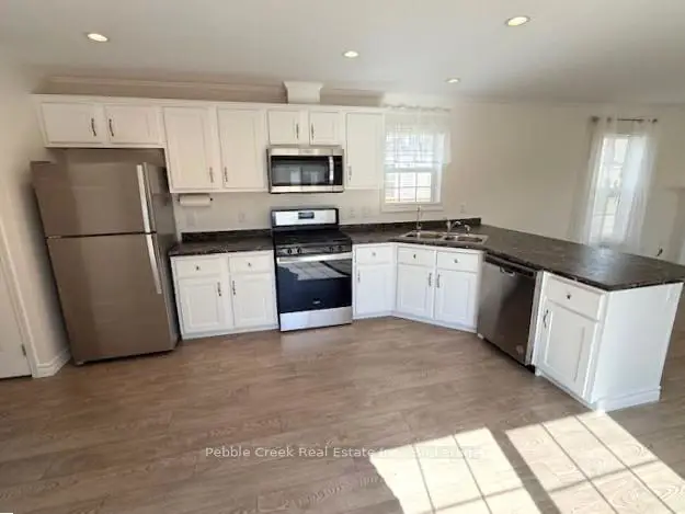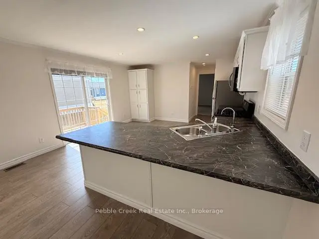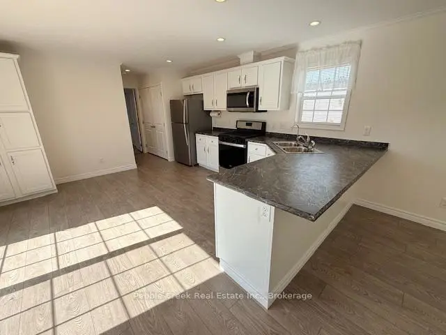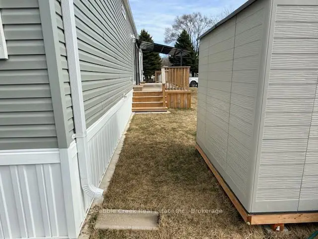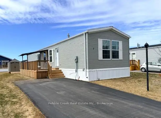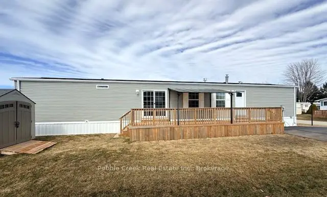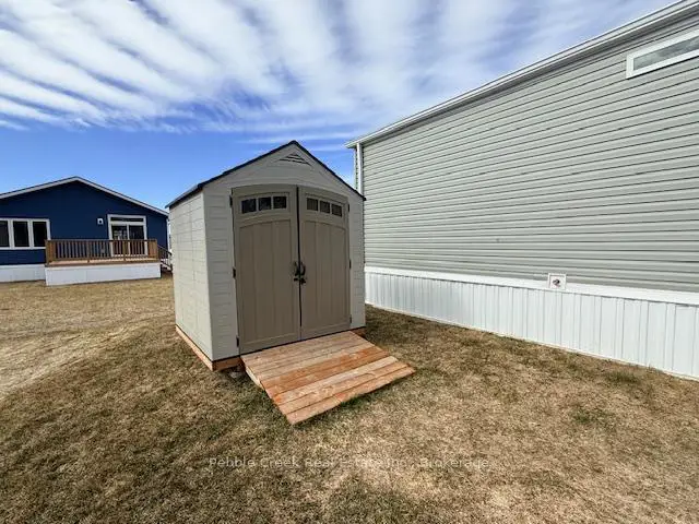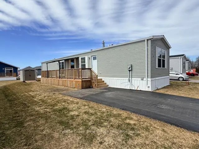 Welcome to Huron Haven Village, a charming year-round community located just north of Goderich! This impressive manufactured home is just a few years old and boasts brand new laminate flooring in the kitchen/living room area. You will be very impressed with the bright open concept, spacious kitchen featuring an abundance of cabinets and peninsula along with a large living room sporting a gas fireplace. The primary bedroom offers lots of closet space and 3pc en-suite bath. The generous sized second bedroom is at the other side of the home with 4 pc bath right beside. Utilities include natural gas heating and central A/C. Outside, there is a huge deck for entertaining or relaxing, storage shed and paved driveway! This is a wonderful opportunity to own your own home in the newest section of a quaint land lease community which boasts an outdoor swimming pool and rec center. All this and a great location, close to shopping, golf courses and the shores of Lake Huron! Bonus - fridge, stove, dishwasher, OTR microwave and washer/dryer included!