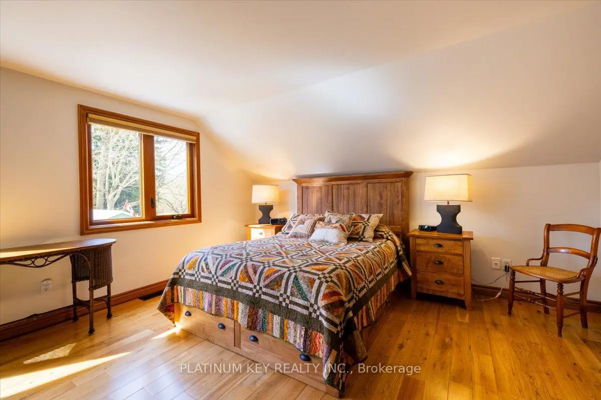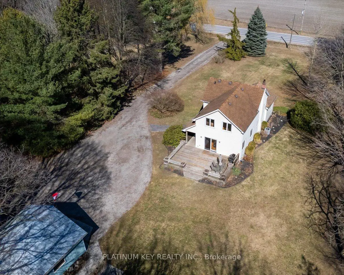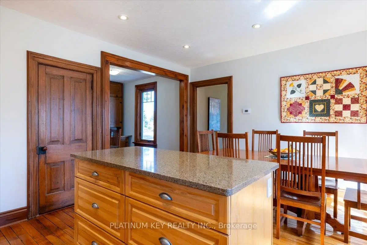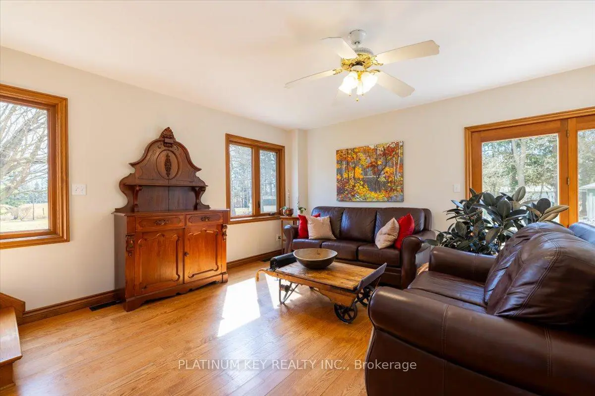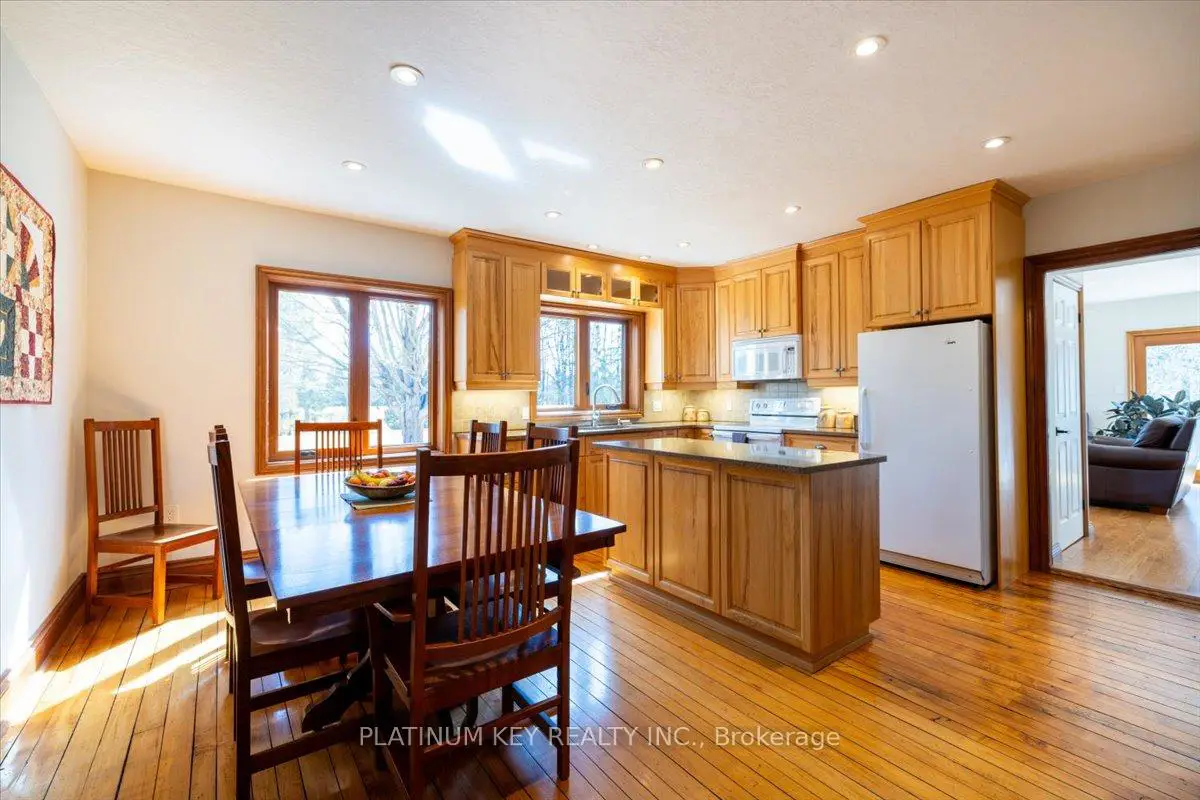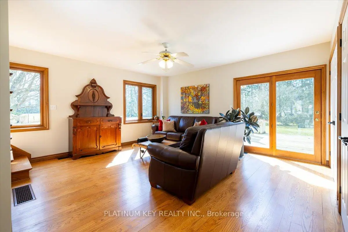 A two acre country retreat in rural Mount Brydges. This well-maintained, charming property offers 3 bedrooms, 2 bathrooms and a detached garage with a workshop in a peaceful rural setting. The main floor features a spacious family room with double closets and French doors leading to a large, private sun deck. The kitchen offers quartz countertops, a centre island, walk-in pantry, and generous dining area, with hardwood flooring extending into the adjoining open-concept room currently used as an office. At the front of the home, the living room features a large picture window and exterior door providing additional access to the outdoors. A four-piece bathroom and laundry complete the main level. Upstairs are three bedrooms, including a spacious primary bedroom with a walk-in closet. The second bedroom offers double closets, while the third bedroom provides a comfortable space for a bedroom, nursery, or office. A three-piece bathroom and linen closet are also on the upper level. The lower level includes a finished rec room, providing additional living space and storage. The detached workshop with a two-car garage and power is ideal for hobbyists, tradespeople, or additional storage. The property is surrounded by mature trees and open green space, offering a quiet country setting. Local Mount Brydges amenities include schools, parks, pharmacy, medical, dental, shopping, and restaurants, with convenient access to surrounding communities, the 402 highway and the City of London.