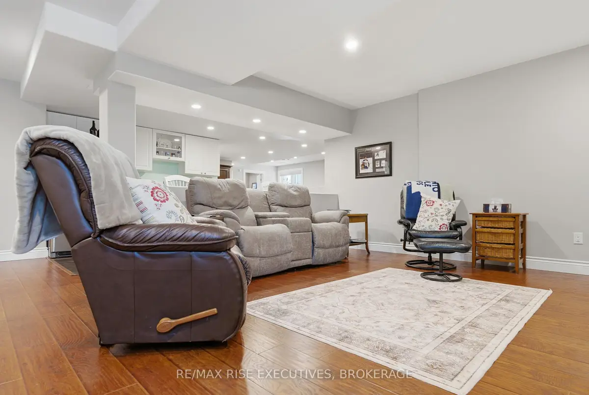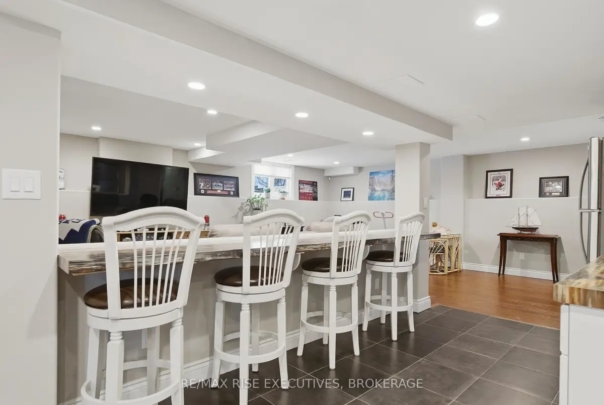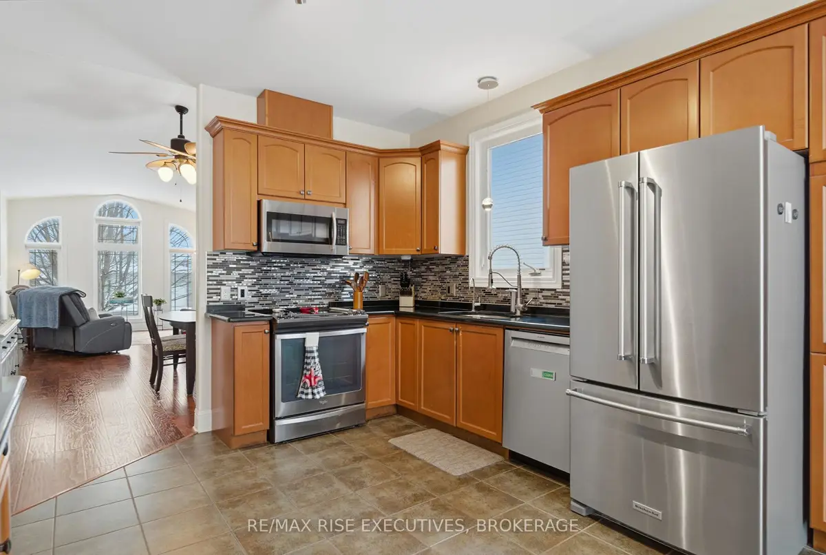 1480 Hanover Drive is the executive bungalow you've been waiting for-tucked away on a quiet street and backing directly onto the green space of Midland Park. From the moment you arrive, the home impresses with exceptional curb appeal, a double-wide driveway, and a true double-car garage. Step inside to a bright and airy main floor featuring engineered hardwood flooring, vaulted ceilings, and an open-concept living and dining area that feels both spacious and inviting. At the rear of the home, the beautifully appointed eat-in kitchen showcases sleek quartz countertops, stainless steel appliances, and seamless access to a large deck overlooking peaceful park views, perfect for morning coffee or evening entertaining. The main level offers three generous bedrooms, including a primary bedroom complete with its own private ensuite. A full main bathroom provides added convenience for family and guests. The professionally finished lower level expands your living space with a large, light-filled recreation room featuring an impressive wet bar, ideal for entertaining, movie nights, or game days. This level also includes two additional bedrooms and another full bathroom, offering flexibility for guests, a home office, or extended family living. Outside, the fully fenced and landscaped backyard is designed for relaxation and enjoyment. From the upper deck, step down to a covered lower deck with pergola and added privacy, an incredible outdoor retreat backing onto parkland. Move-in ready and beautifully finished throughout, this home offers an A+ location close to all the amenities Kingston's west end has to offer. Don't miss your opportunity-schedule your private viewing today!