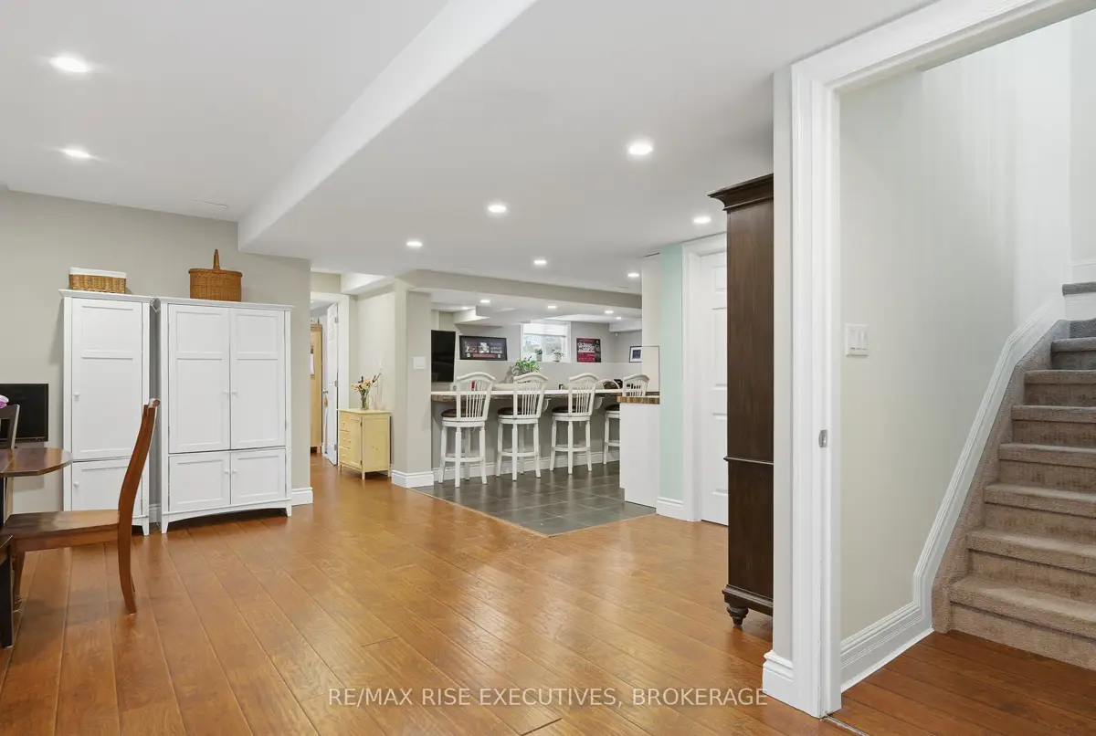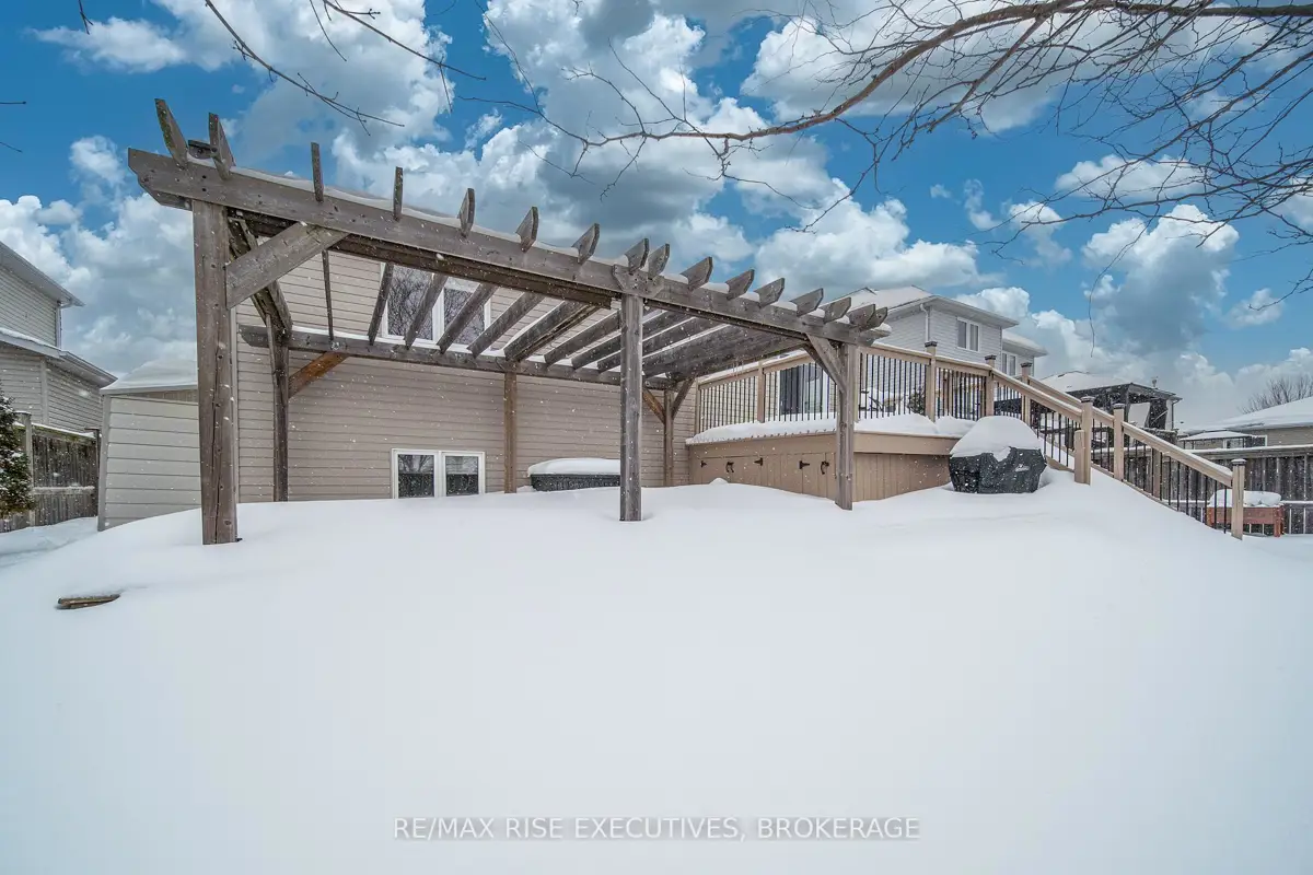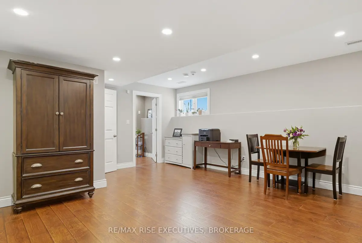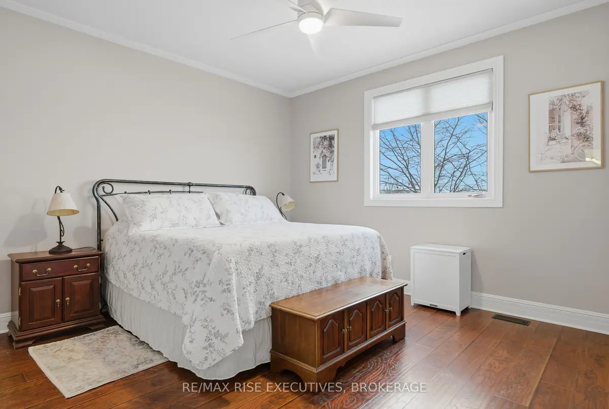 1480 Hanover Drive is the executive bungalow you've been waiting for-tucked away on a quiet street and backing directly onto the green space of Midland Park. From the moment you arrive, the home impresses with exceptional curb appeal, a double-wide driveway, and a true double-car garage. Step inside to a bright and airy main floor featuring engineered hardwood flooring, vaulted ceilings, and an open-concept living and dining area that feels both spacious and inviting. At the rear of the home, the beautifully appointed eat-in kitchen showcases sleek quartz countertops, stainless steel appliances, and seamless access to a large deck overlooking peaceful park views, perfect for morning coffee or evening entertaining. The main level offers three generous bedrooms, including a primary bedroom complete with its own private ensuite. A full main bathroom provides added convenience for family and guests. The professionally finished lower level expands your living space with a large, light-filled recreation room featuring an impressive wet bar, ideal for entertaining, movie nights, or game days. This level also includes two additional bedrooms and another full bathroom, offering flexibility for guests, a home office, or extended family living. Outside, the fully fenced and landscaped backyard is designed for relaxation and enjoyment. From the upper deck, step down to a covered lower deck with pergola and added privacy, an incredible outdoor retreat backing onto parkland. Move-in ready and beautifully finished throughout, this home offers an A+ location close to all the amenities Kingston's west end has to offer. Don't miss your opportunity-schedule your private viewing today!