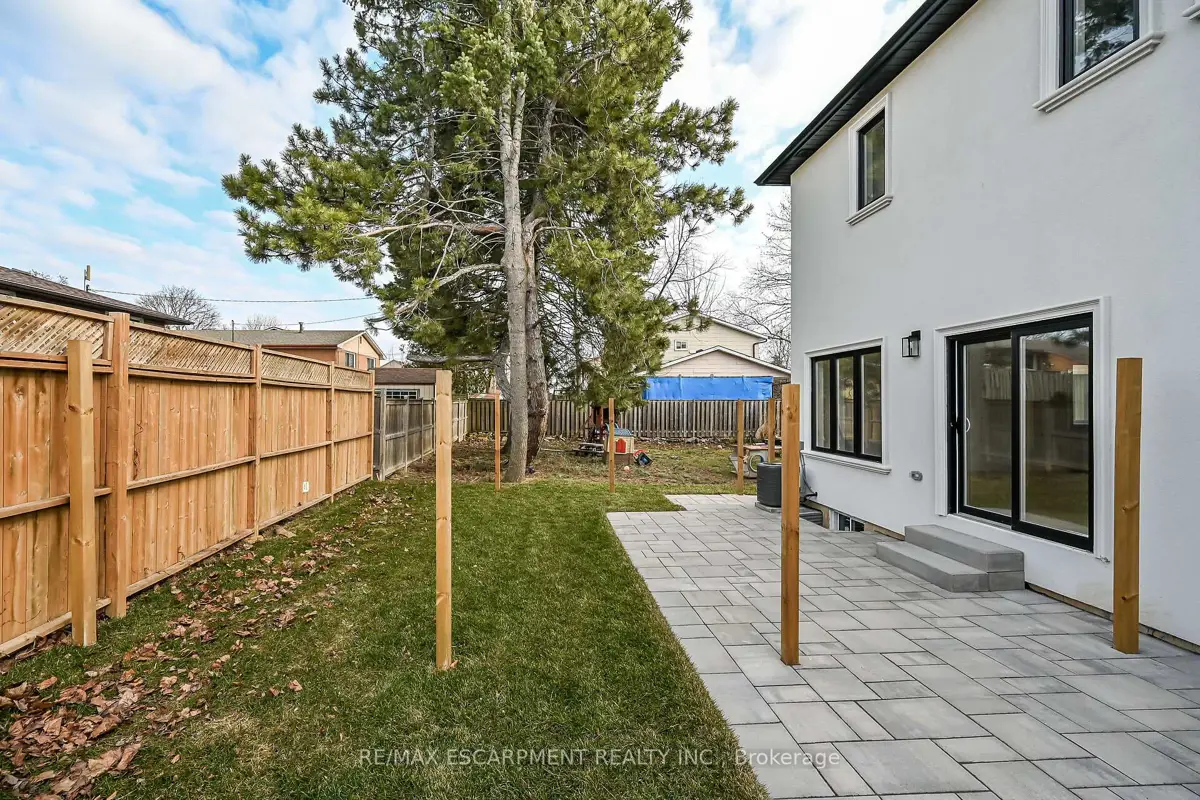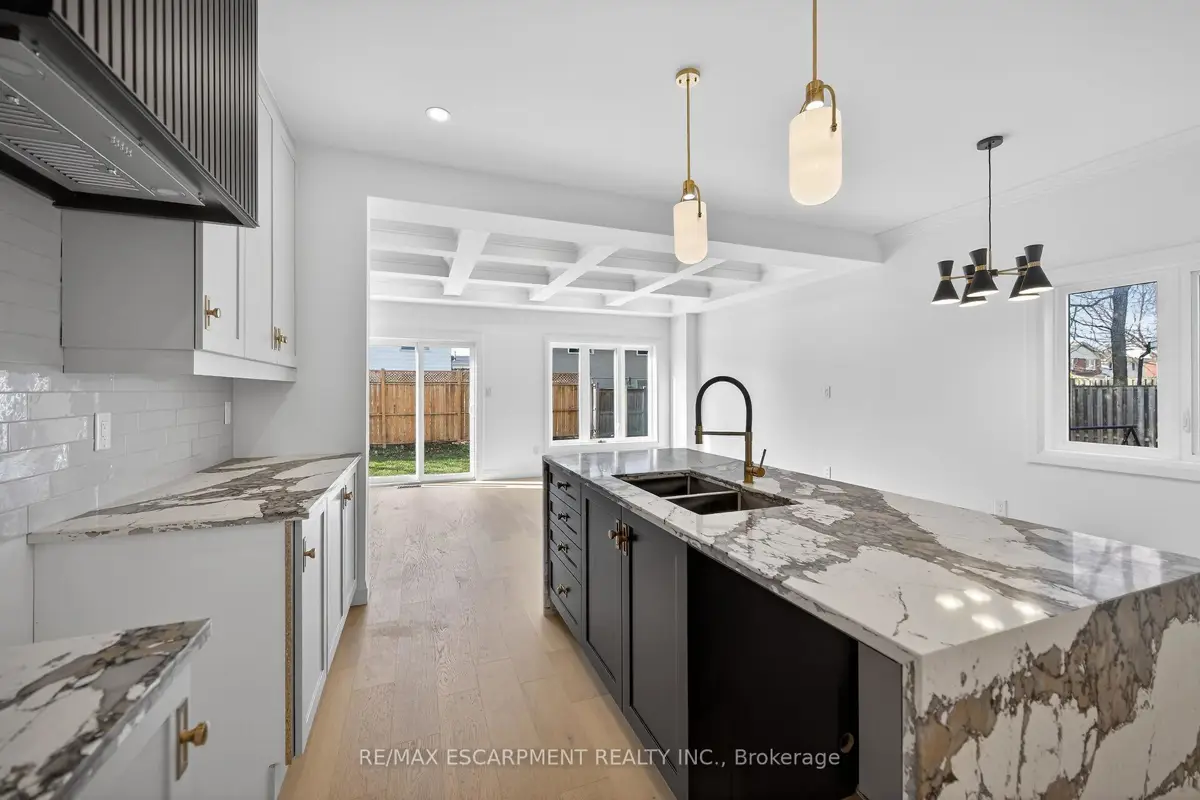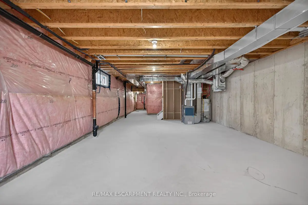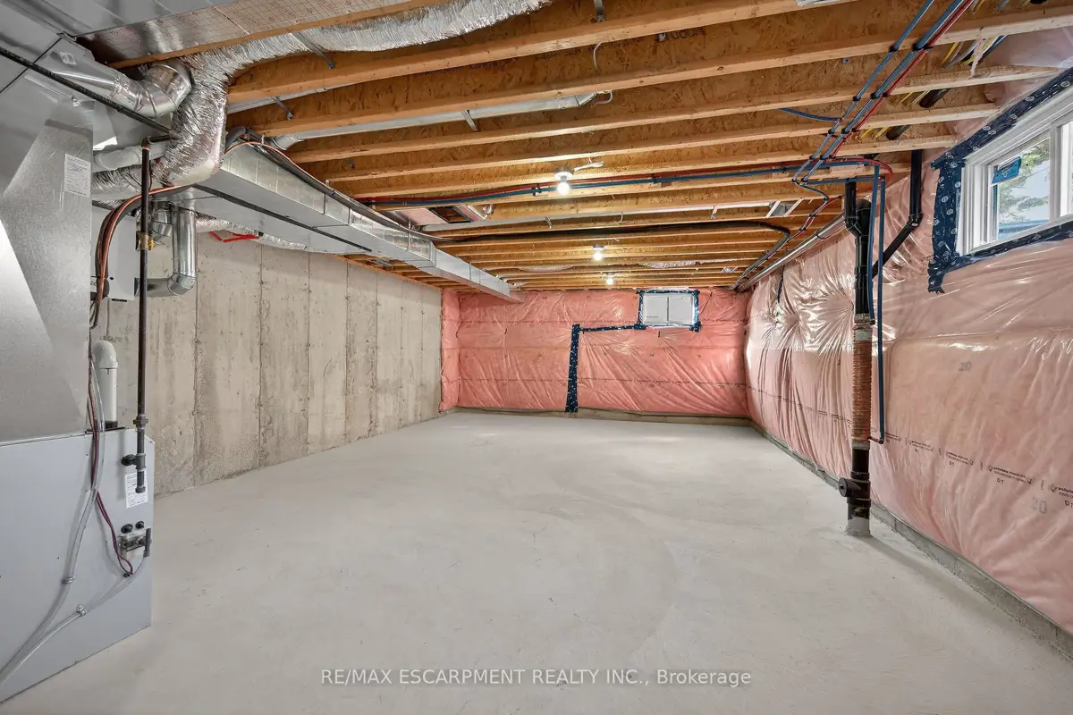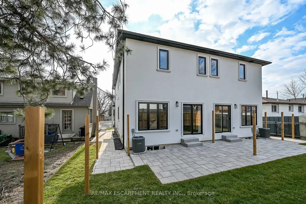 WELCOME TO THIS STUNNING NEW BUILD. This 1675 square foot semi-detached residence boasts an attached garage. A significant investment of $20,000 was made in enhancing the exterior, including a newly paved driveway, interlock stone walkway and patio, backyard fencing and meticulous landscaping. Upon entering, the main floor reveals a stately foyer, 9 ft ceilings, powder room, gourmet kitchen equipped with quartz countertops, island and porcelain tile backsplash, open concept dining area, great room featuring coffered ceilings and potlights, custom designed fireplace and walkout access to the rear yard. The upper level comprises three generously sized bedrooms, including the master suite complete with walk-in closet, opulent 4-piece ensuite featuring double vanity and glass shower. Two additional bedrooms, each with walk-in closets, share a 5-piece bathroom, each having ensuite privileges. A conveniently located laundry room is situated on this level. The unfinished, high basement offers endless possibilities for customization. Additional notable features and upgrades include engineered and porcelain flooring throughout, slat walls, potlights, designer lighting, to name a few. A comprehensive Tarion warranty is available. The property is advantageously situated in close proximity to schools, parks, church, Mohawk College, the Lincoln Alexander Parkway, Highway 403 and McMaster University.