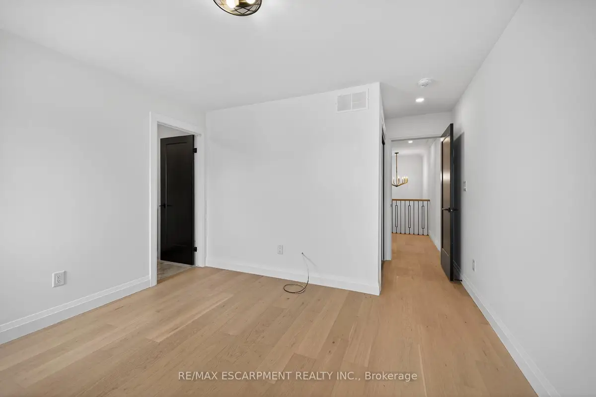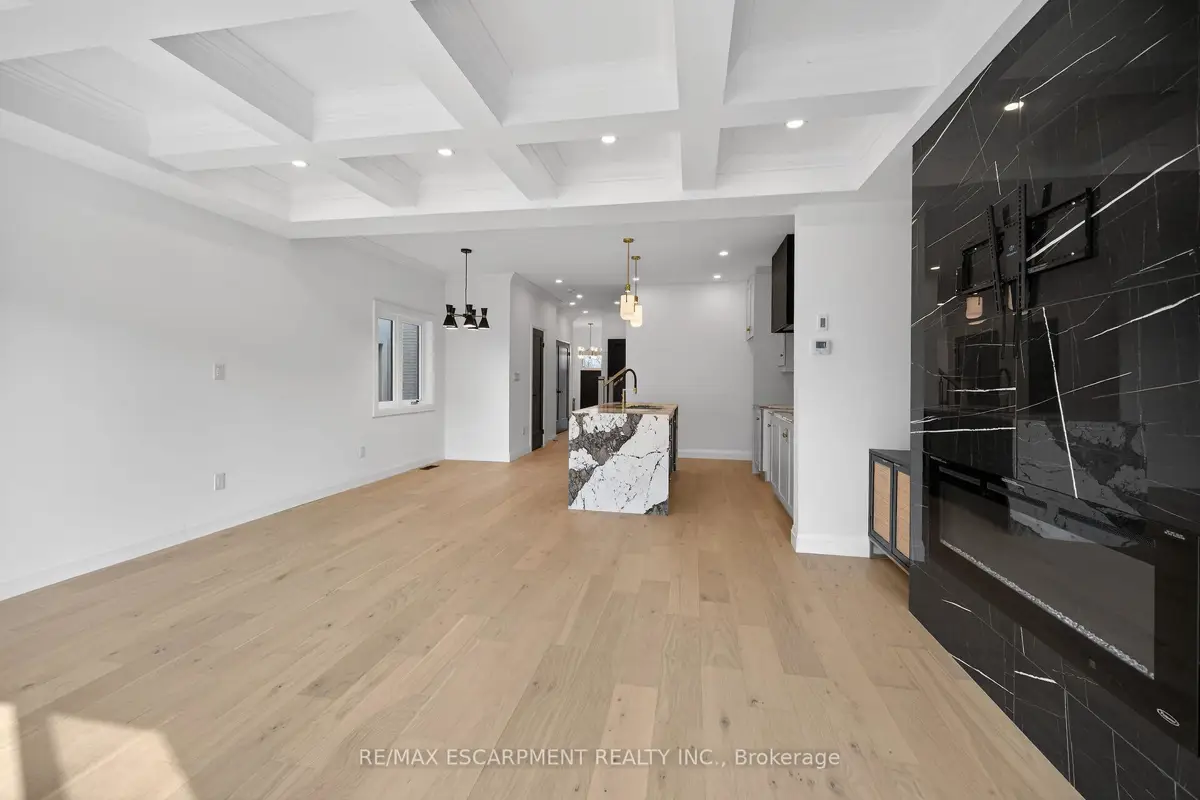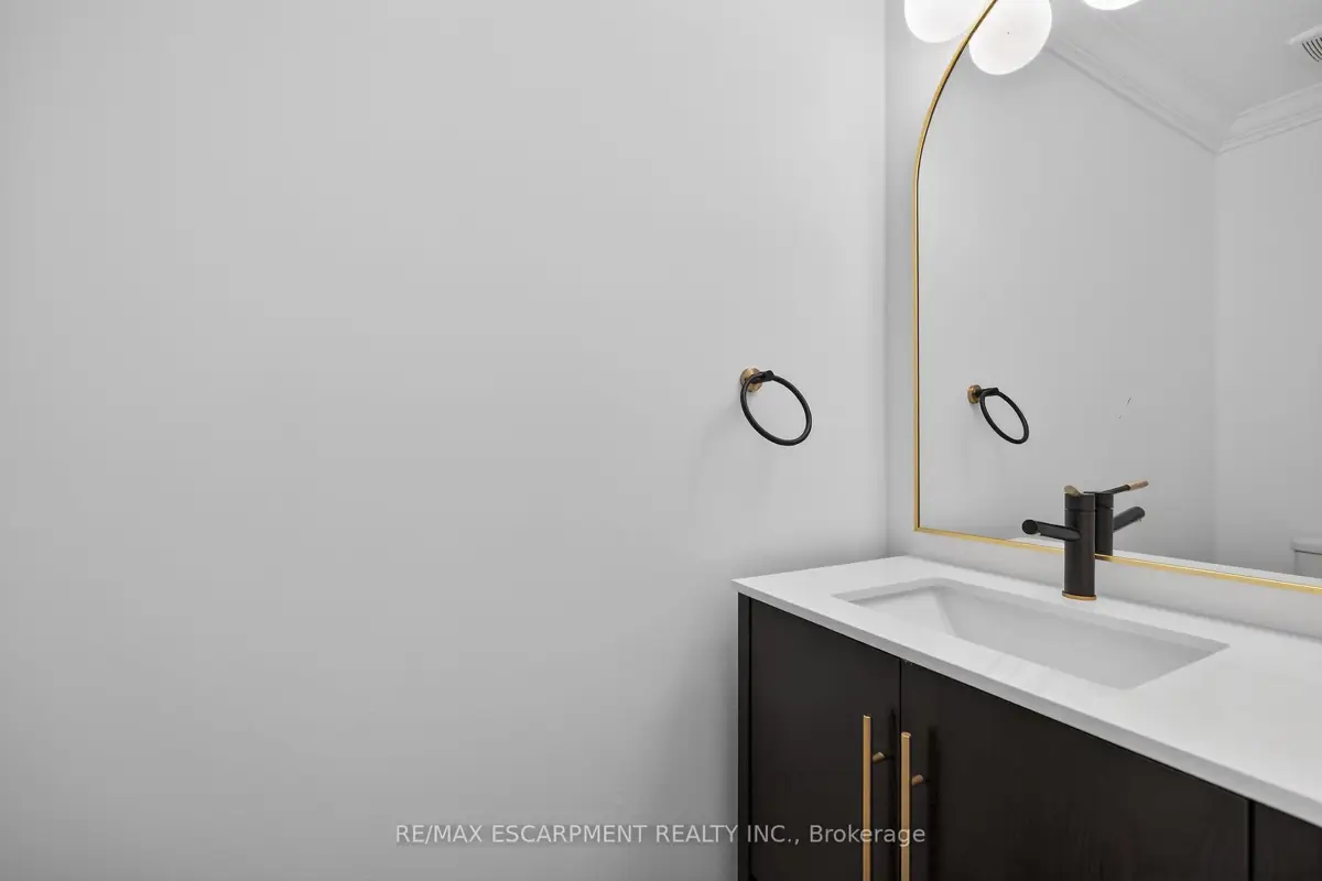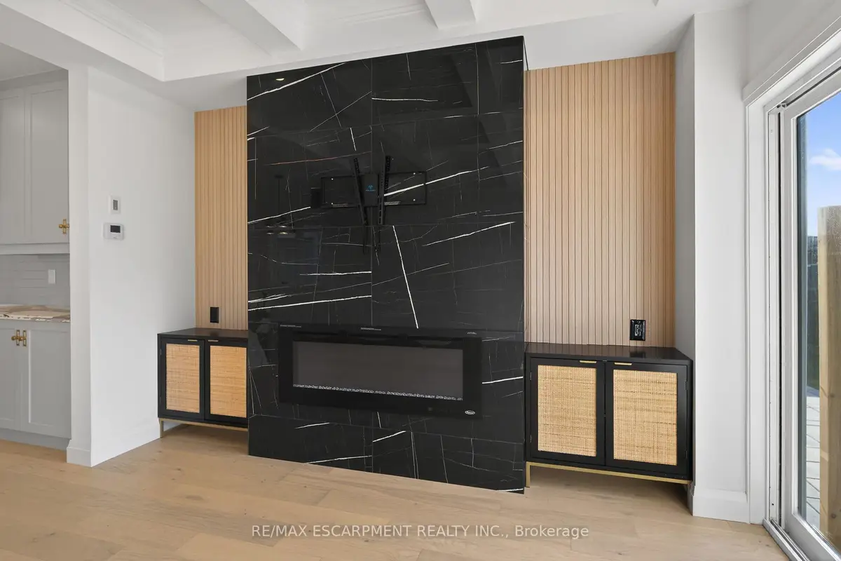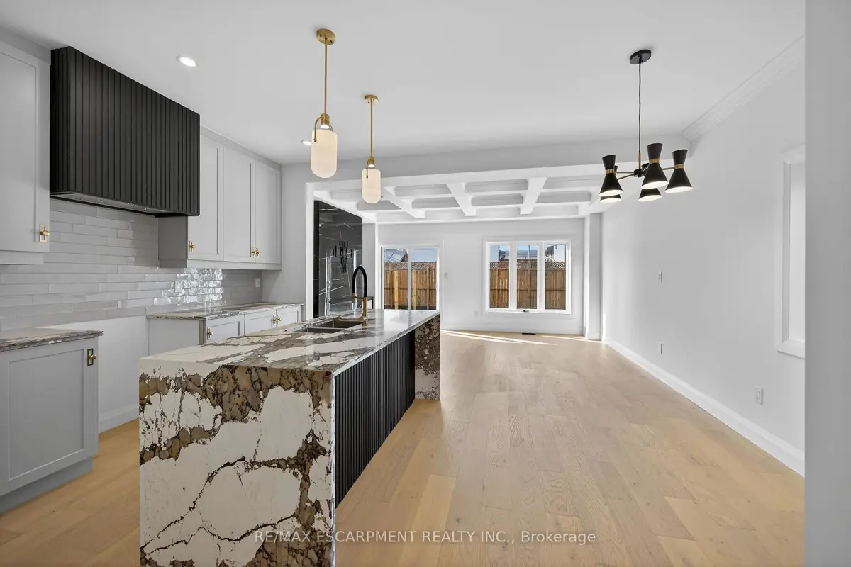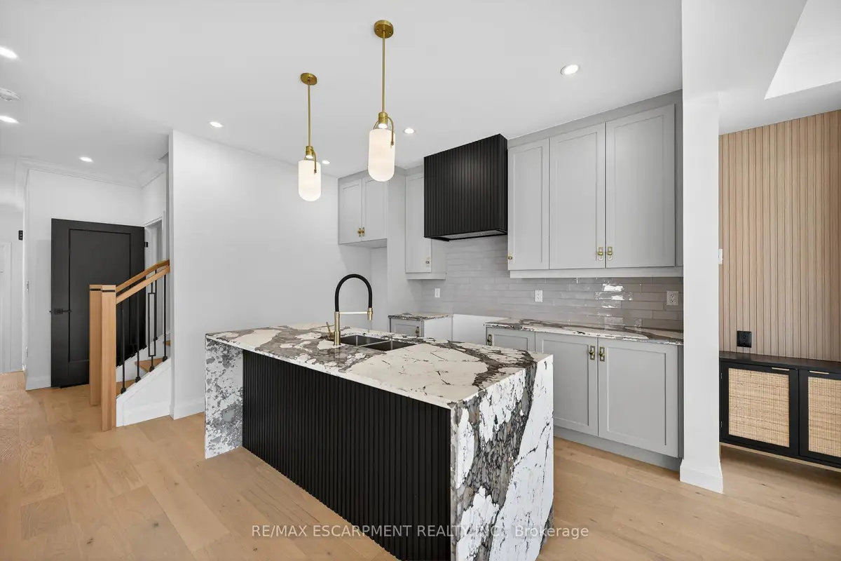 WELCOME TO THIS STUNNING NEW BUILD. This 1675 square foot semi-detached residence boasts an attached garage. A significant investment of $20,000 was made in enhancing the exterior, including a newly paved driveway, interlock stone walkway and patio, backyard fencing and meticulous landscaping. Upon entering, the main floor reveals a stately foyer, 9 ft ceilings, powder room, gourmet kitchen equipped with quartz countertops, island and porcelain tile backsplash, open concept dining area, great room featuring coffered ceilings and potlights, custom designed fireplace and walkout access to the rear yard. The upper level comprises three generously sized bedrooms, including the master suite complete with walk-in closet, opulent 4-piece ensuite featuring double vanity and glass shower. Two additional bedrooms, each with walk-in closets, share a 5-piece bathroom, each having ensuite privileges. A conveniently located laundry room is situated on this level. The unfinished, high basement offers endless possibilities for customization. Additional notable features and upgrades include engineered and porcelain flooring throughout, slat walls, potlights, designer lighting, to name a few. A comprehensive Tarion warranty is available. The property is advantageously situated in close proximity to schools, parks, church, Mohawk College, the Lincoln Alexander Parkway, Highway 403 and McMaster University.